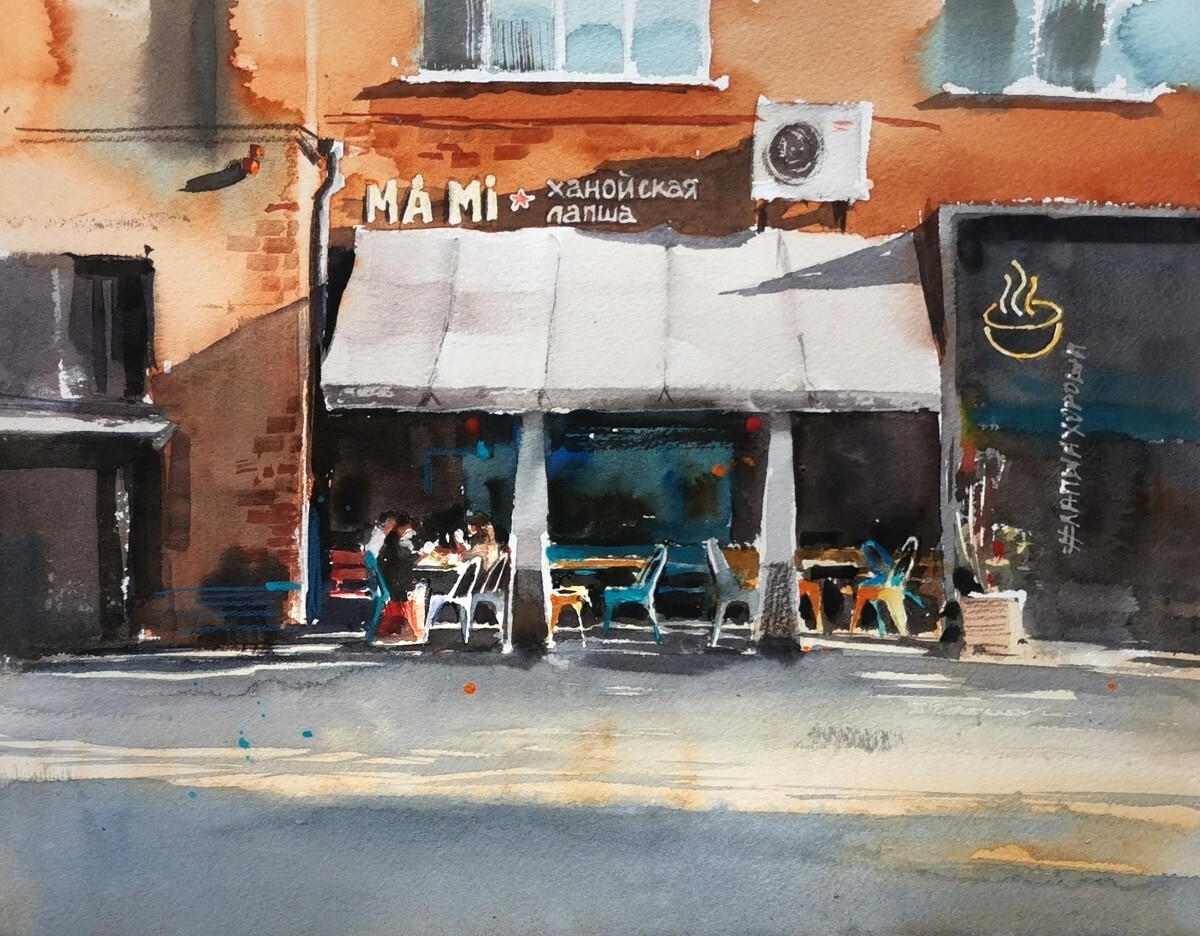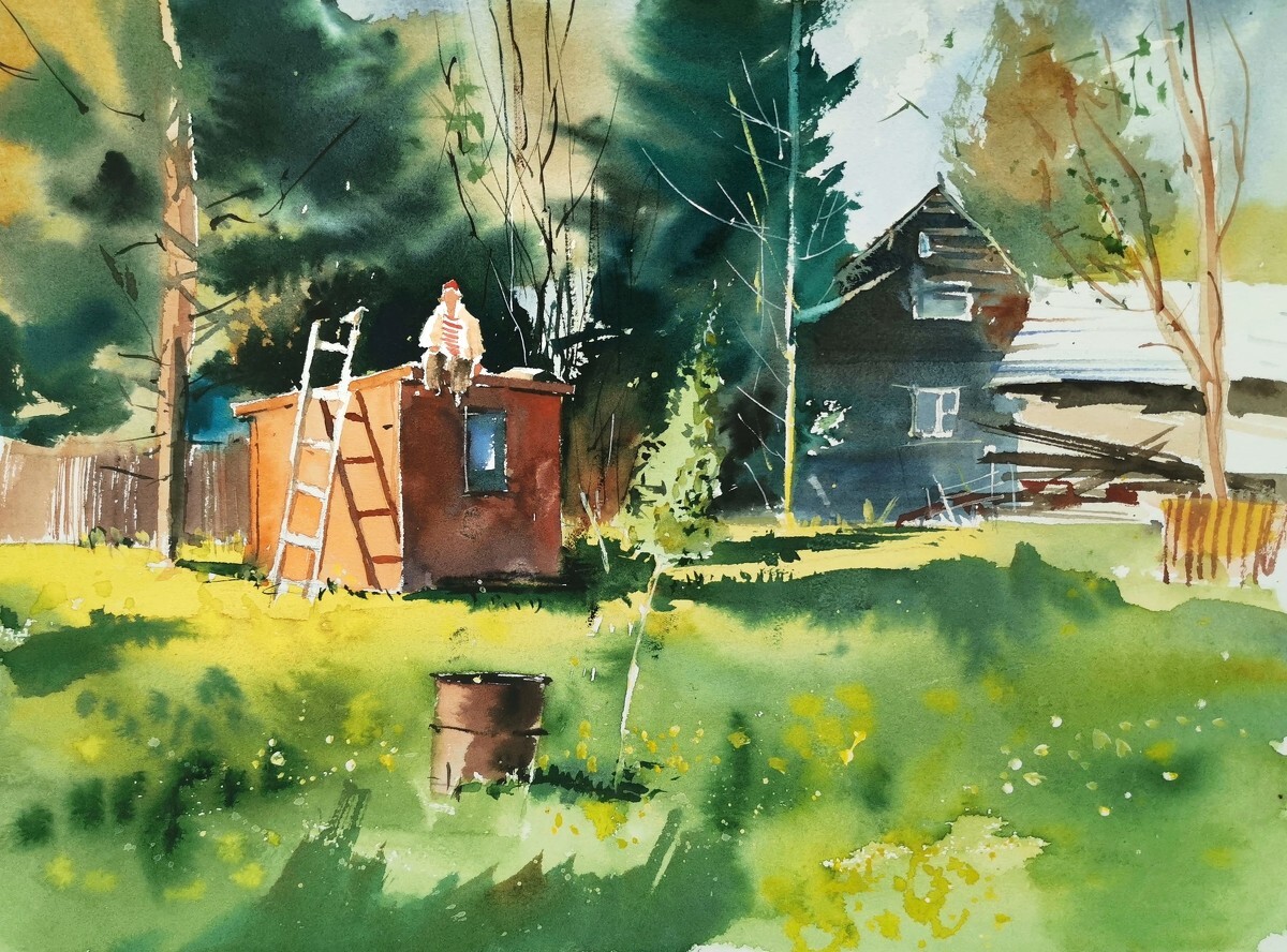 Я люблю акварель за разность характера. Она может быть нежнейшей и тонкой, а может быть очень экспрессивной и даже мрачной. Этот материал нельзя подчинить, но можно понять и работать в тандеме. Тогда и случается любовь на веки вечные».