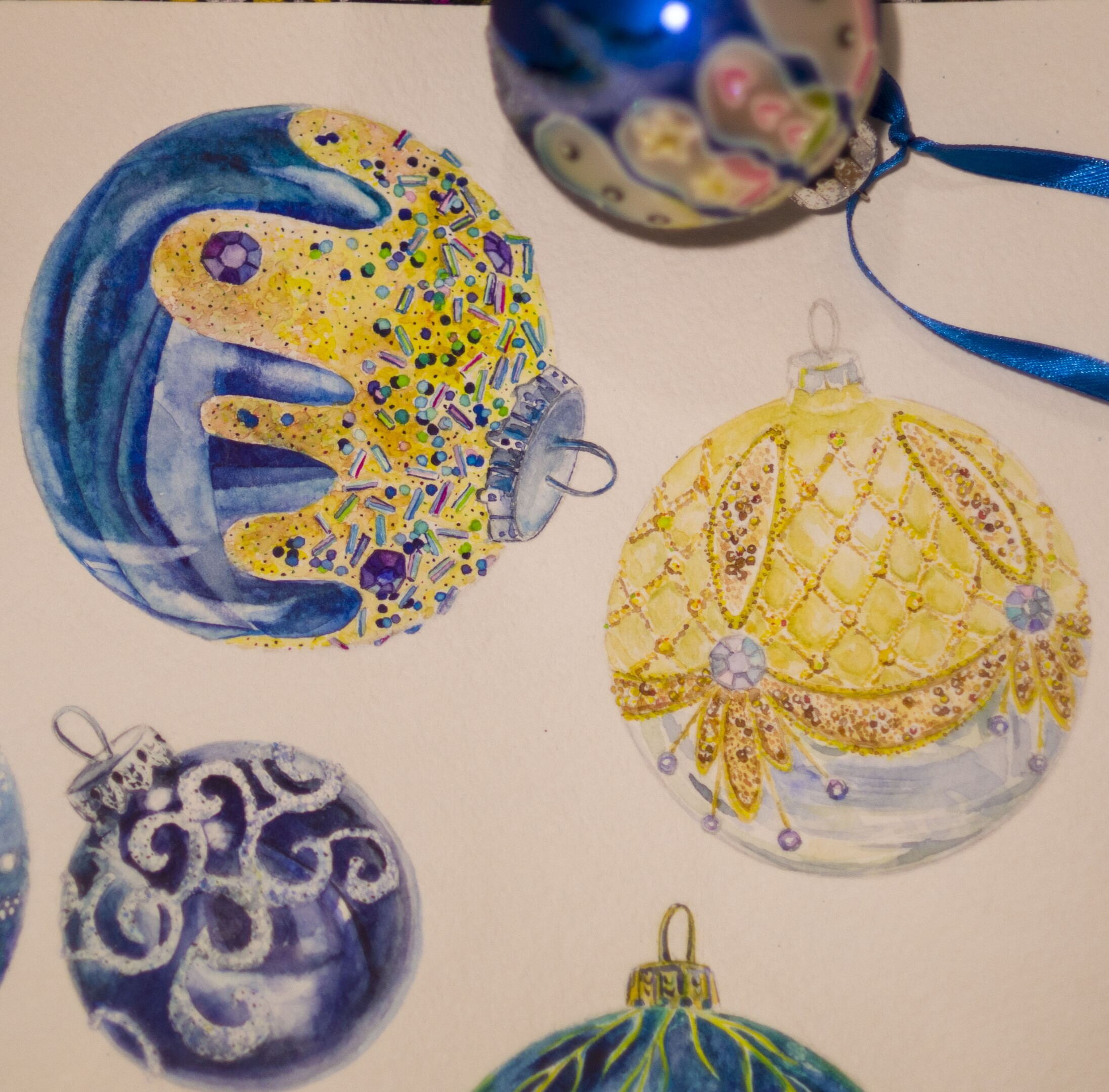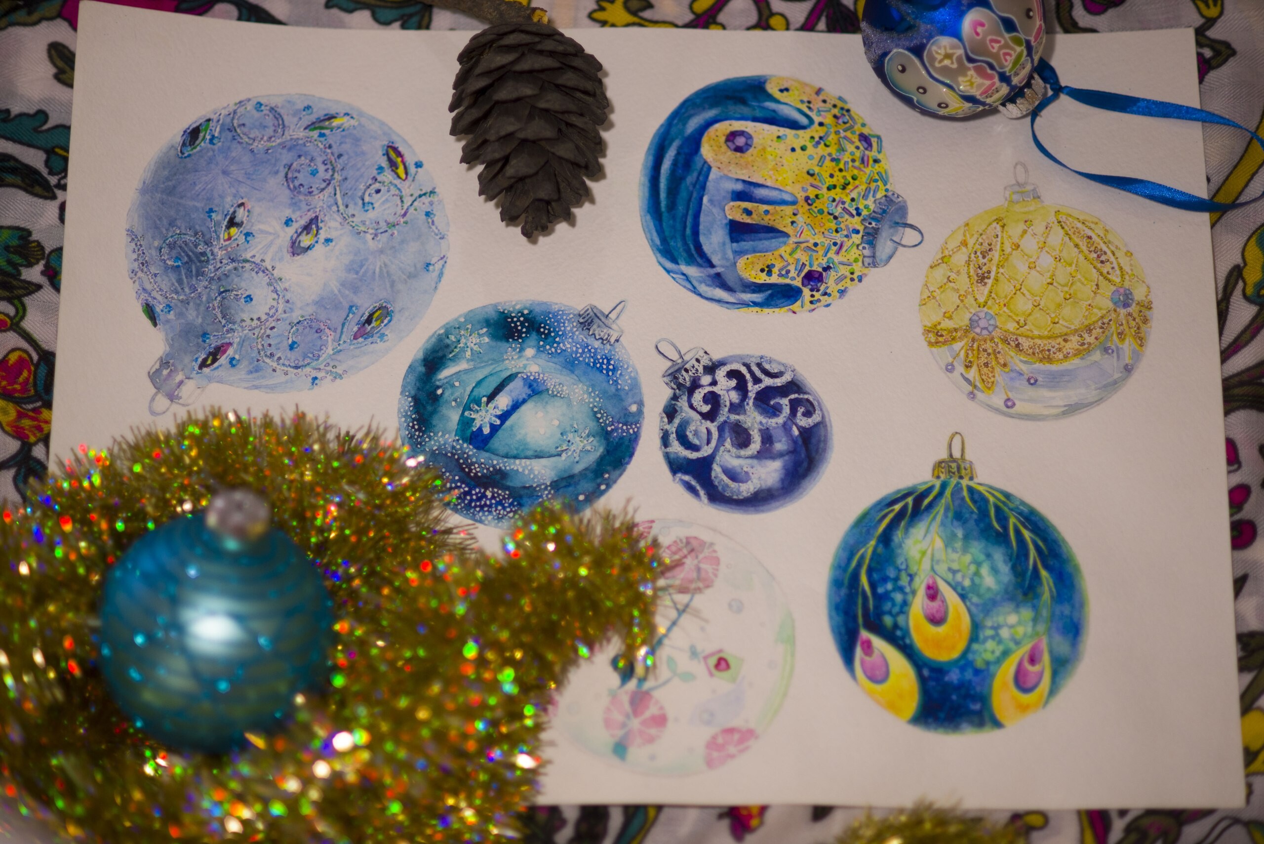 Читать дальшеДля меня Новый год - самый любимый праздник, ведь он вдохновляет на новые свершения и предвещает что то сказочное и волшебное. Особенно волнительна подготовка, традиции, подарки.. Вообщем нарисовала все свои любимые елочные шары, что с любовью покупала в прошлом году и перевозила с другого конца страны:relaxed: они хранят домашнее тепло) Вот такая для меня важная частичка любви! Буду дальше пополнять коллекцию каждый год по новому шарику!)