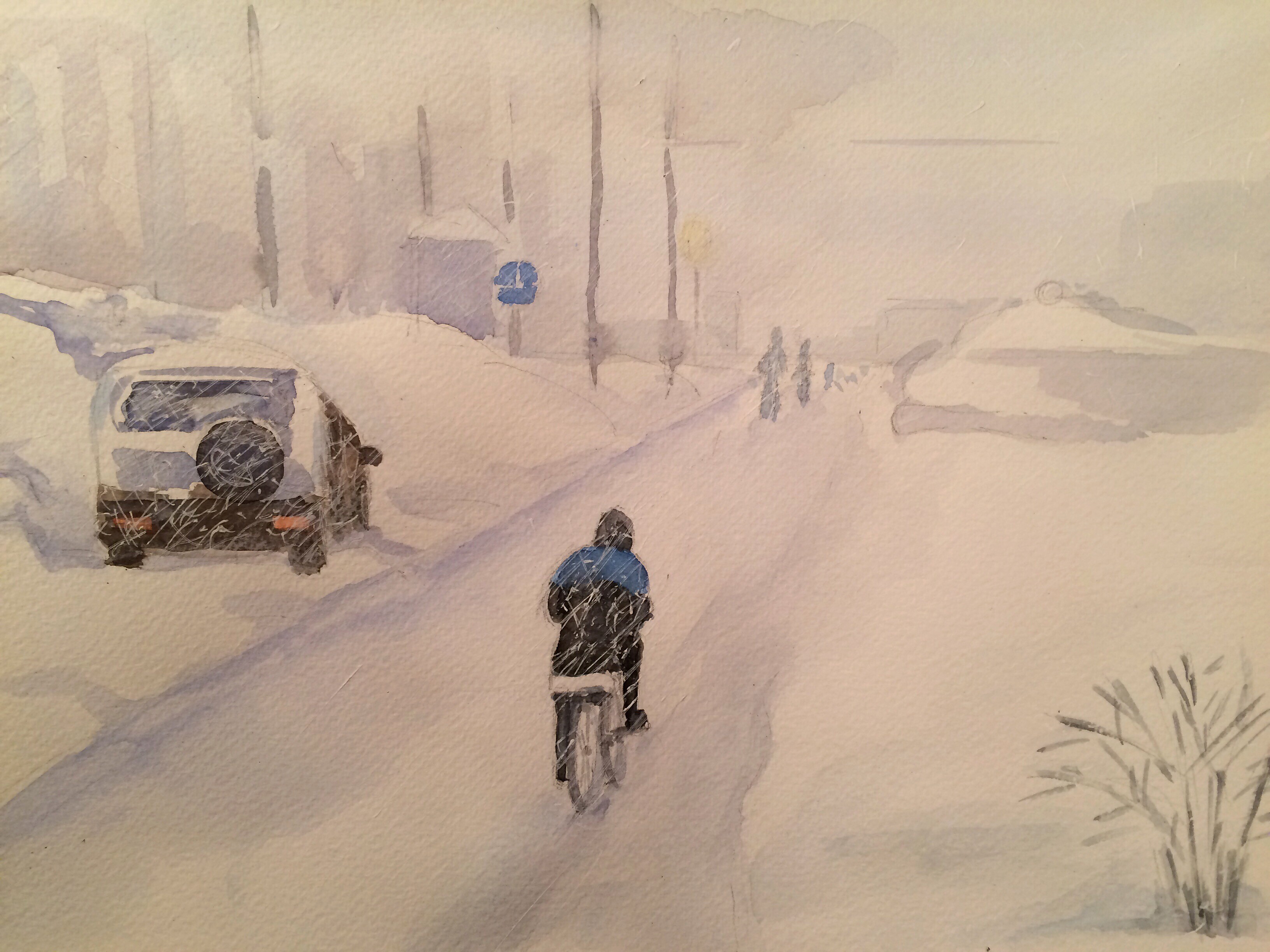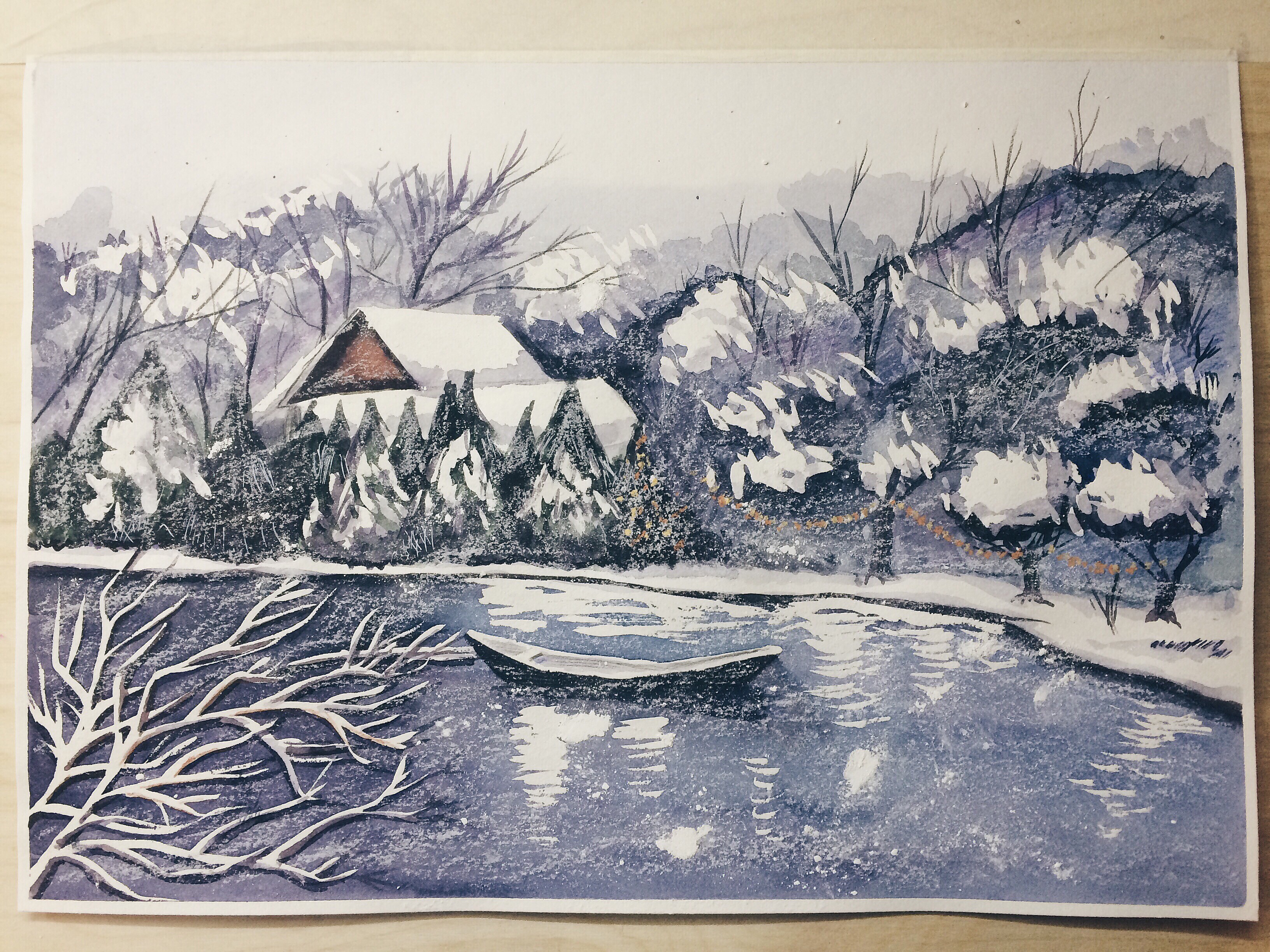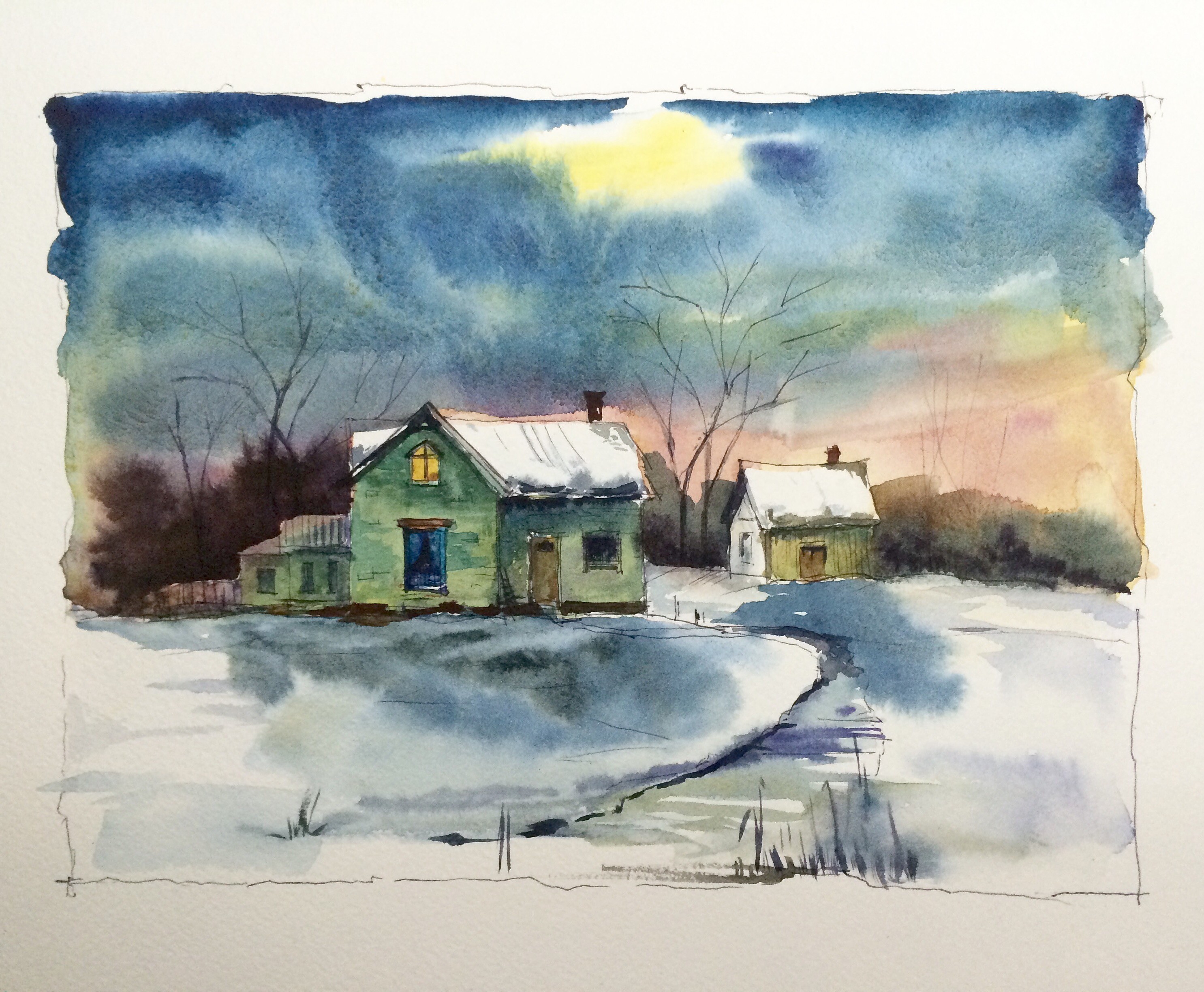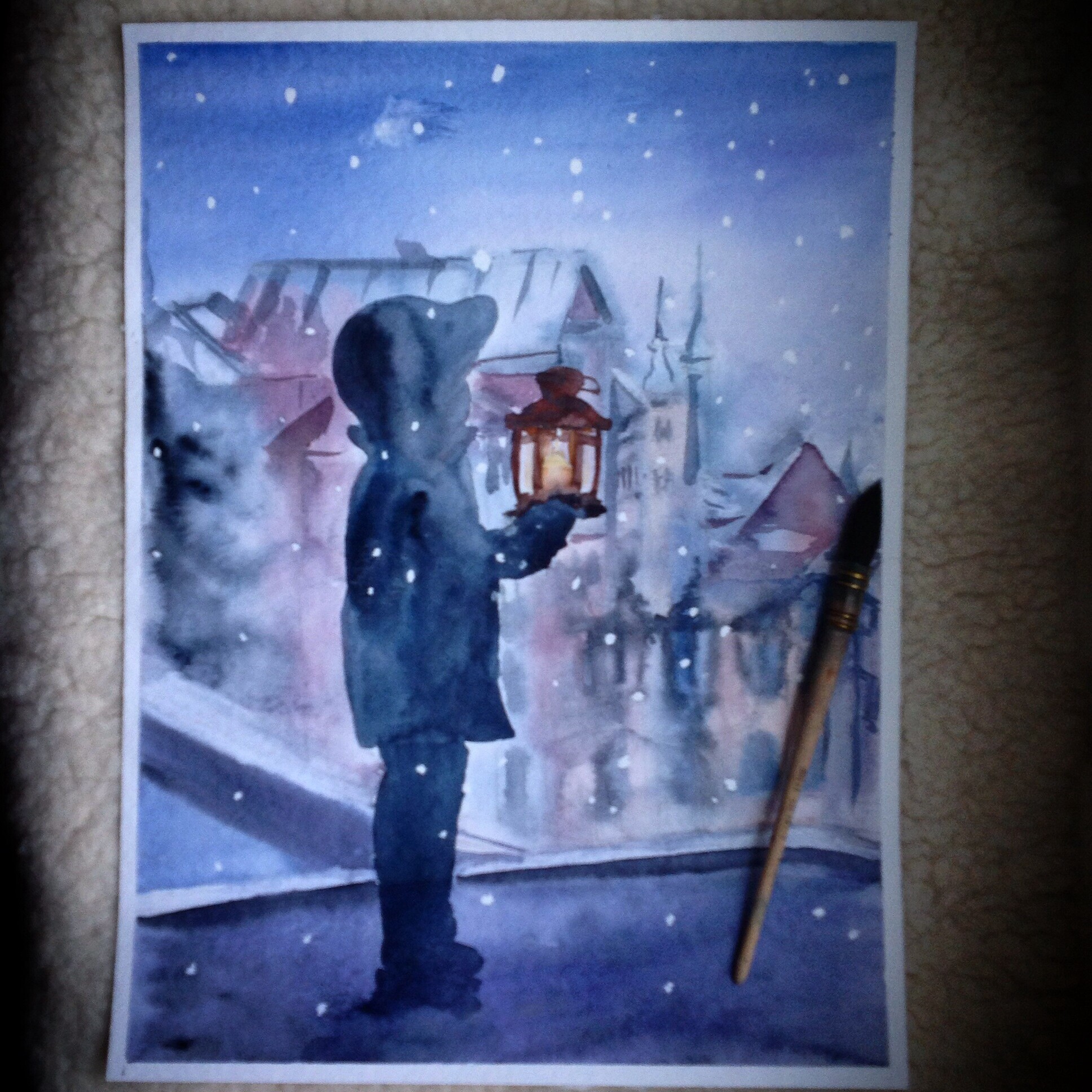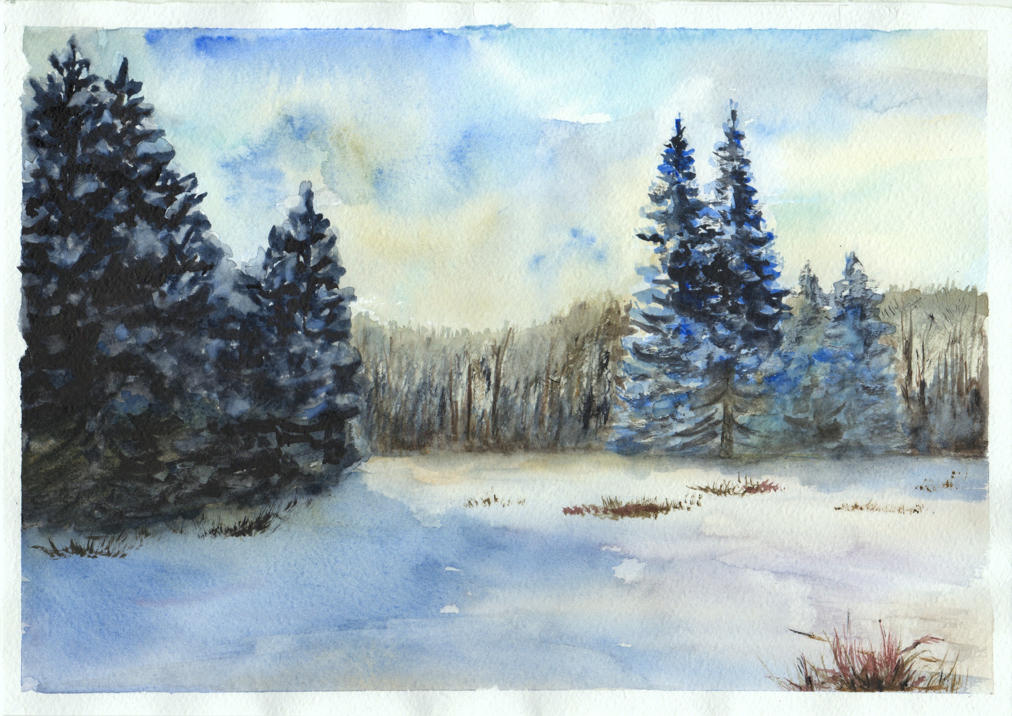 Акварель при нормальных условиях можно немного исправить, при морозе исправить уже ничего нельзя. Убрал кисть от бумаги-считай всё, ни размыть, ни добавить...