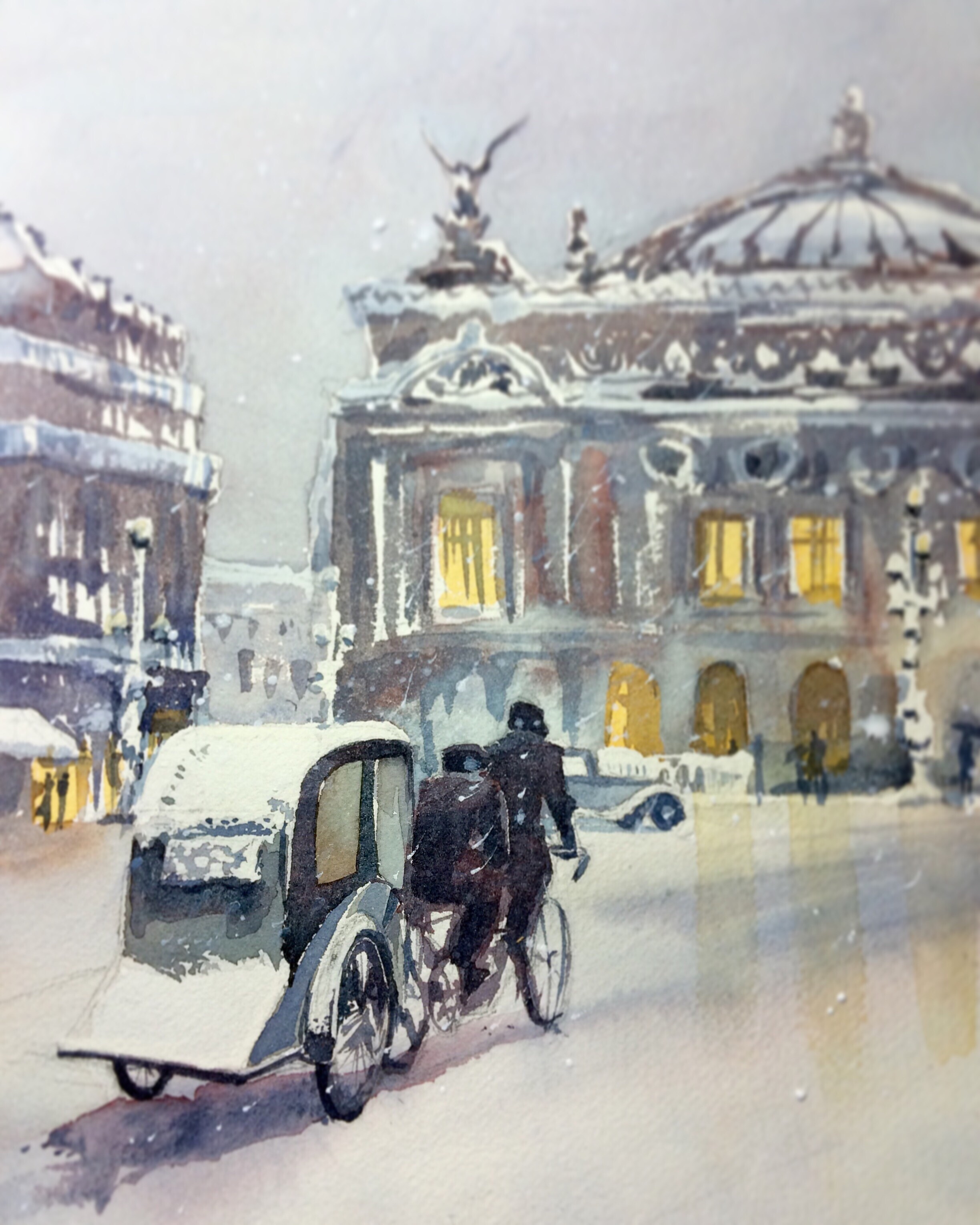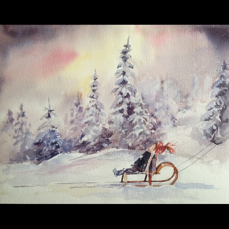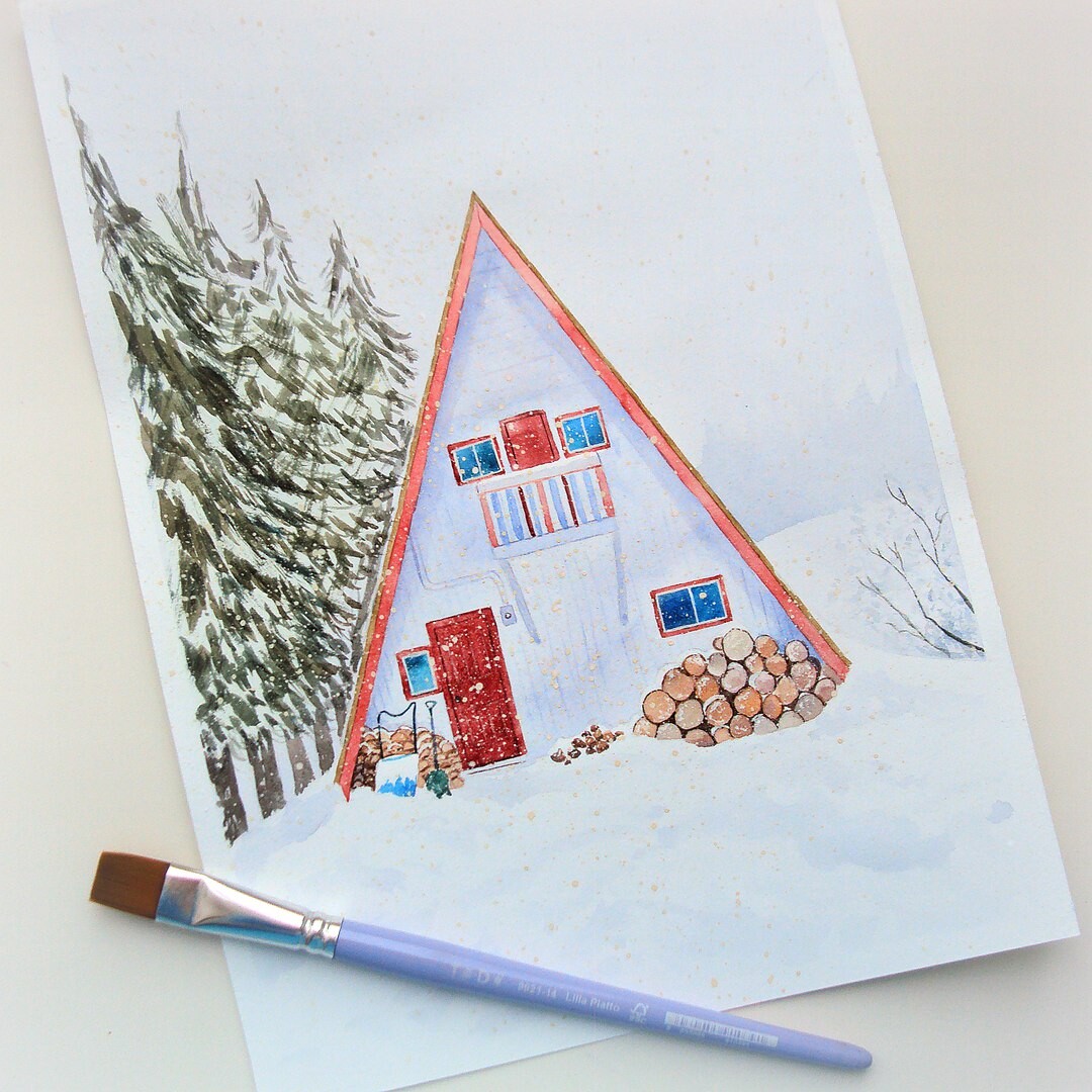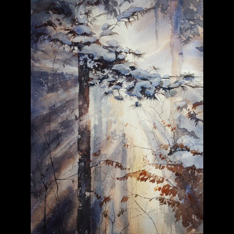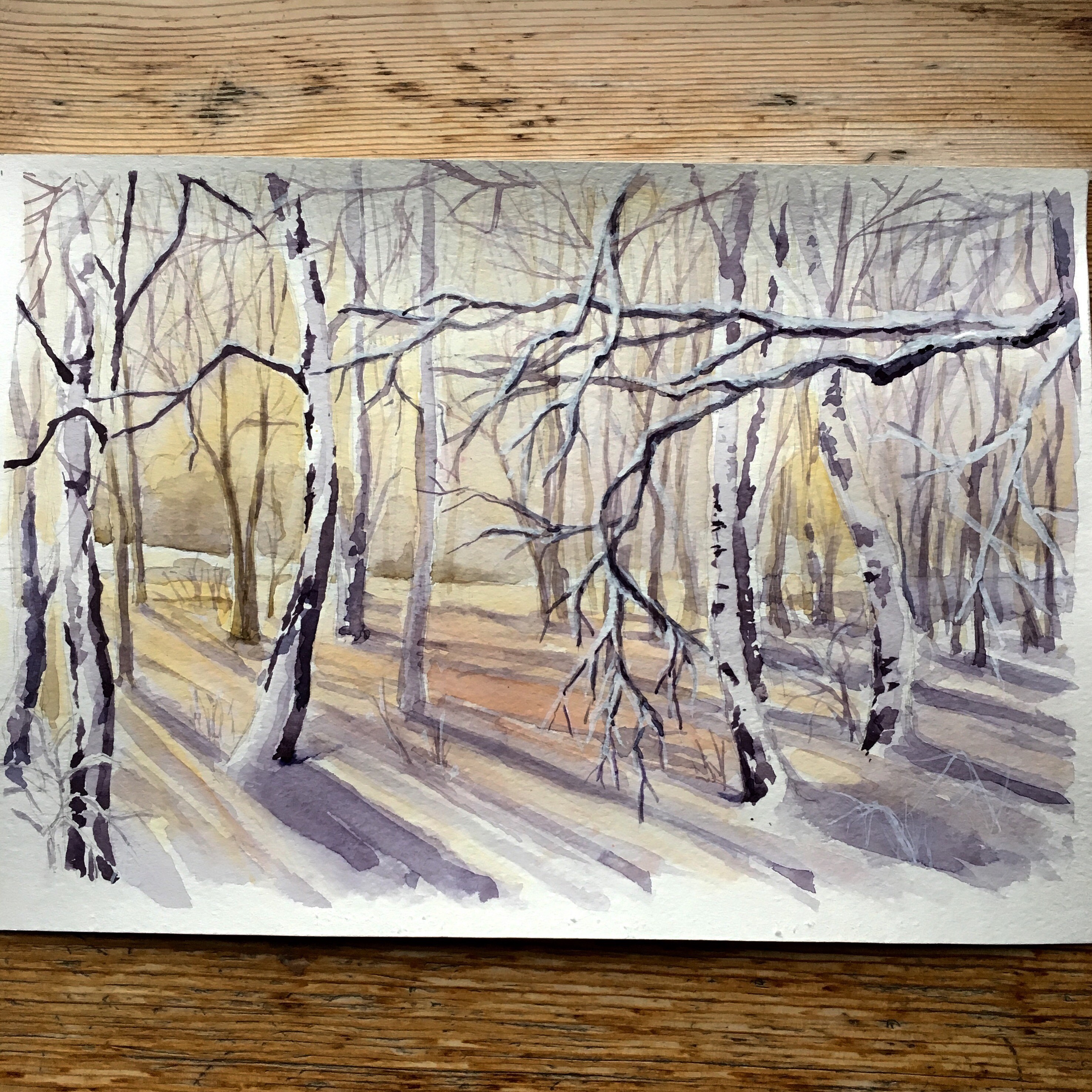 Акварель при нормальных условиях можно немного исправить, при морозе исправить уже ничего нельзя. Убрал кисть от бумаги-считай всё, ни размыть, ни добавить...