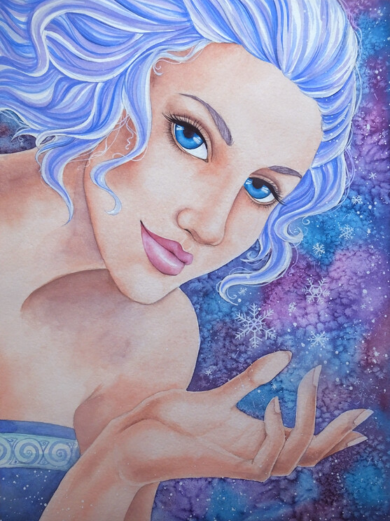Акварель при нормальных условиях можно немного исправить, при морозе исправить уже ничего нельзя. Убрал кисть от бумаги-считай всё, ни размыть, ни добавить цвета-никаких исправлений. Вообще.