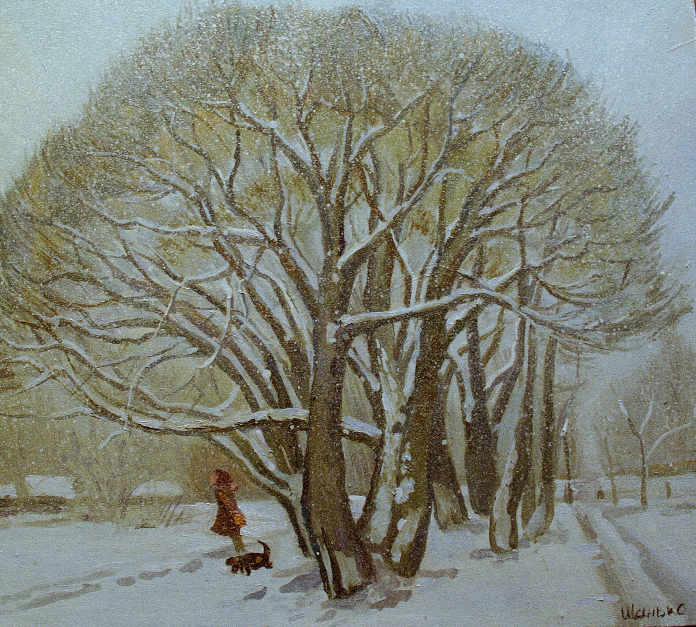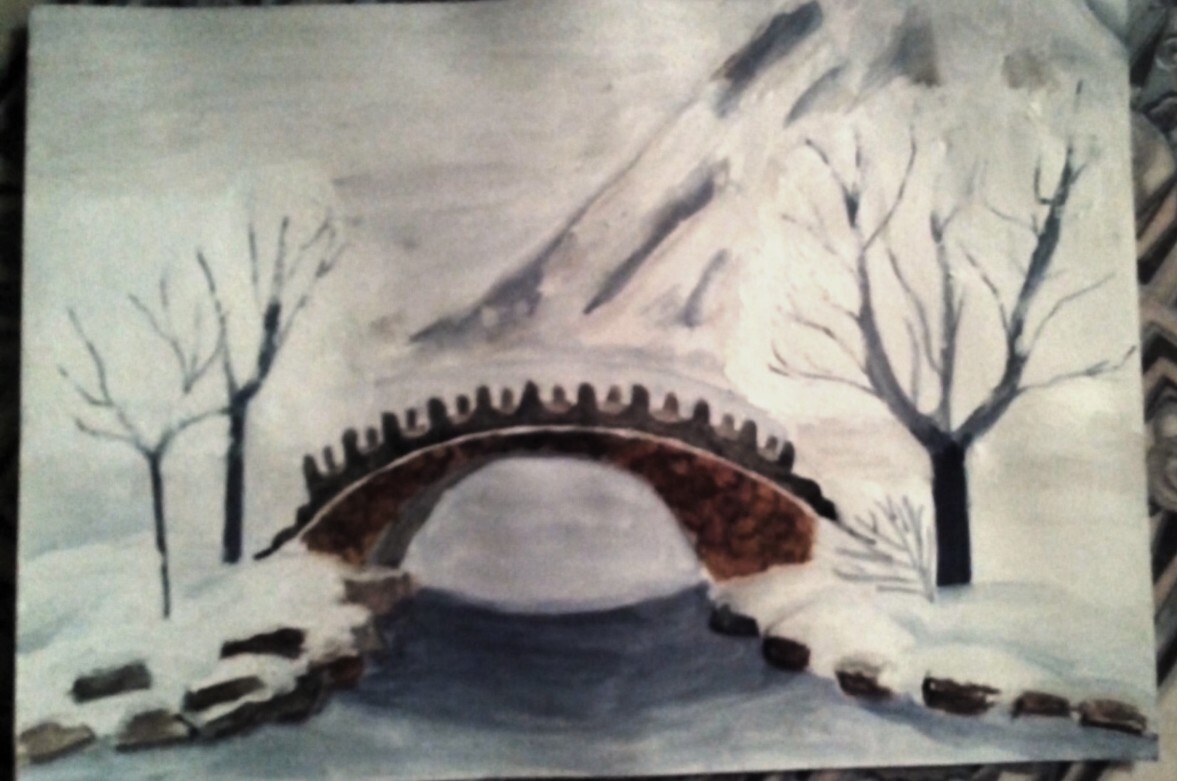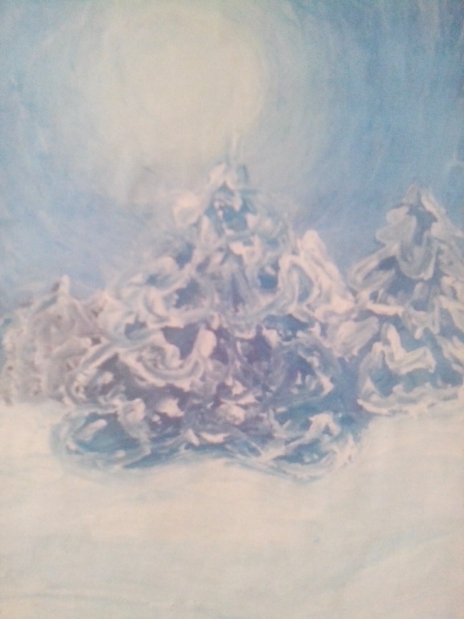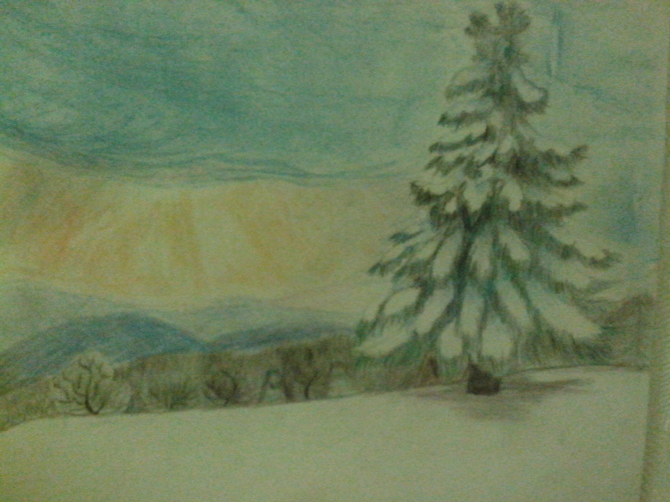 У нас был всего один раз хороший такой снег, что замело дороги. Мы не могли попасть в наш город, искали объездные пути и очутились в каком-то лесу. Вот он и есть на этом рисунке :)