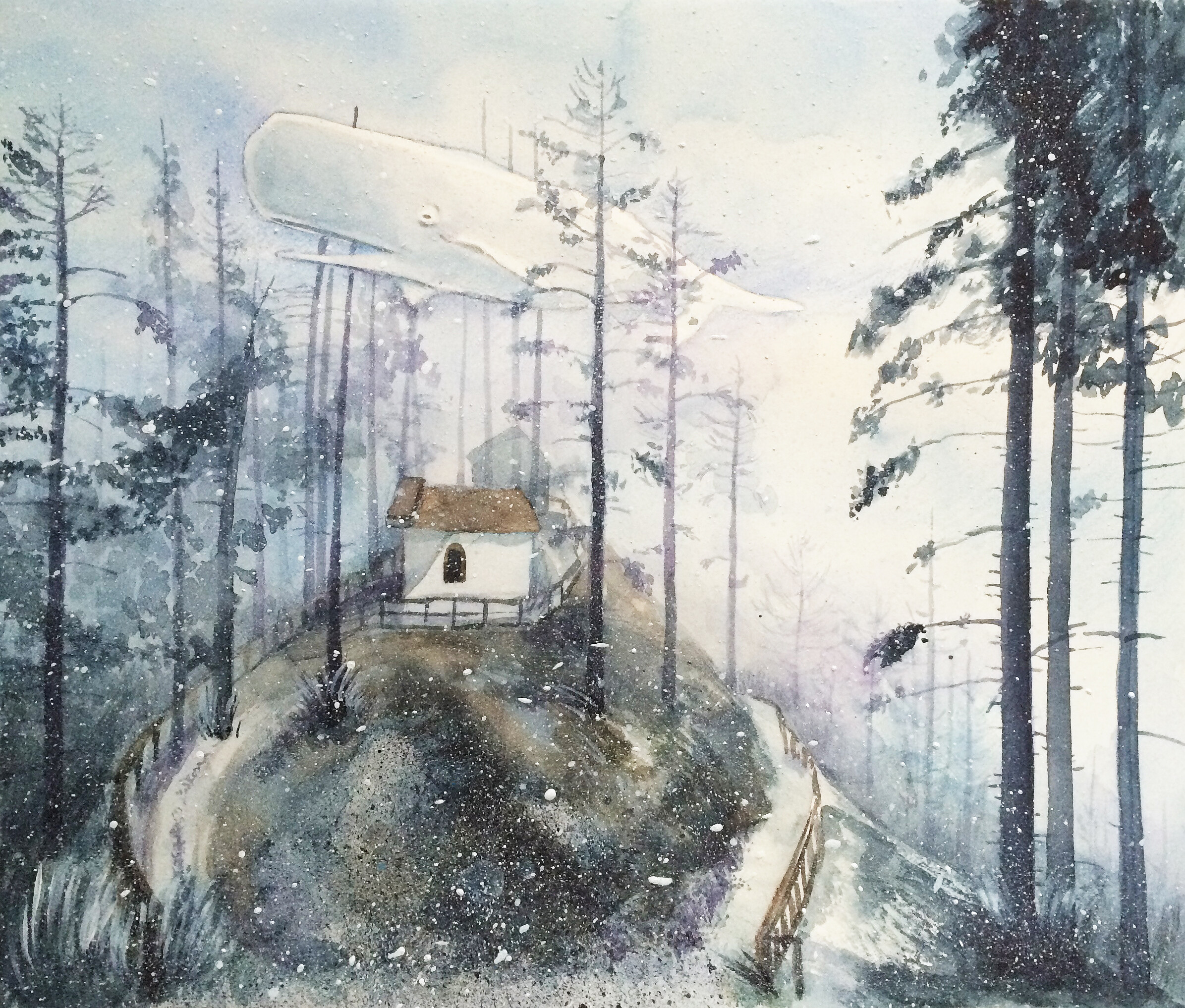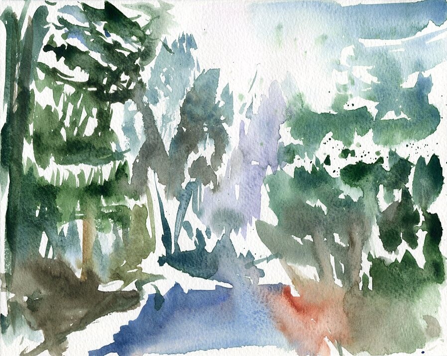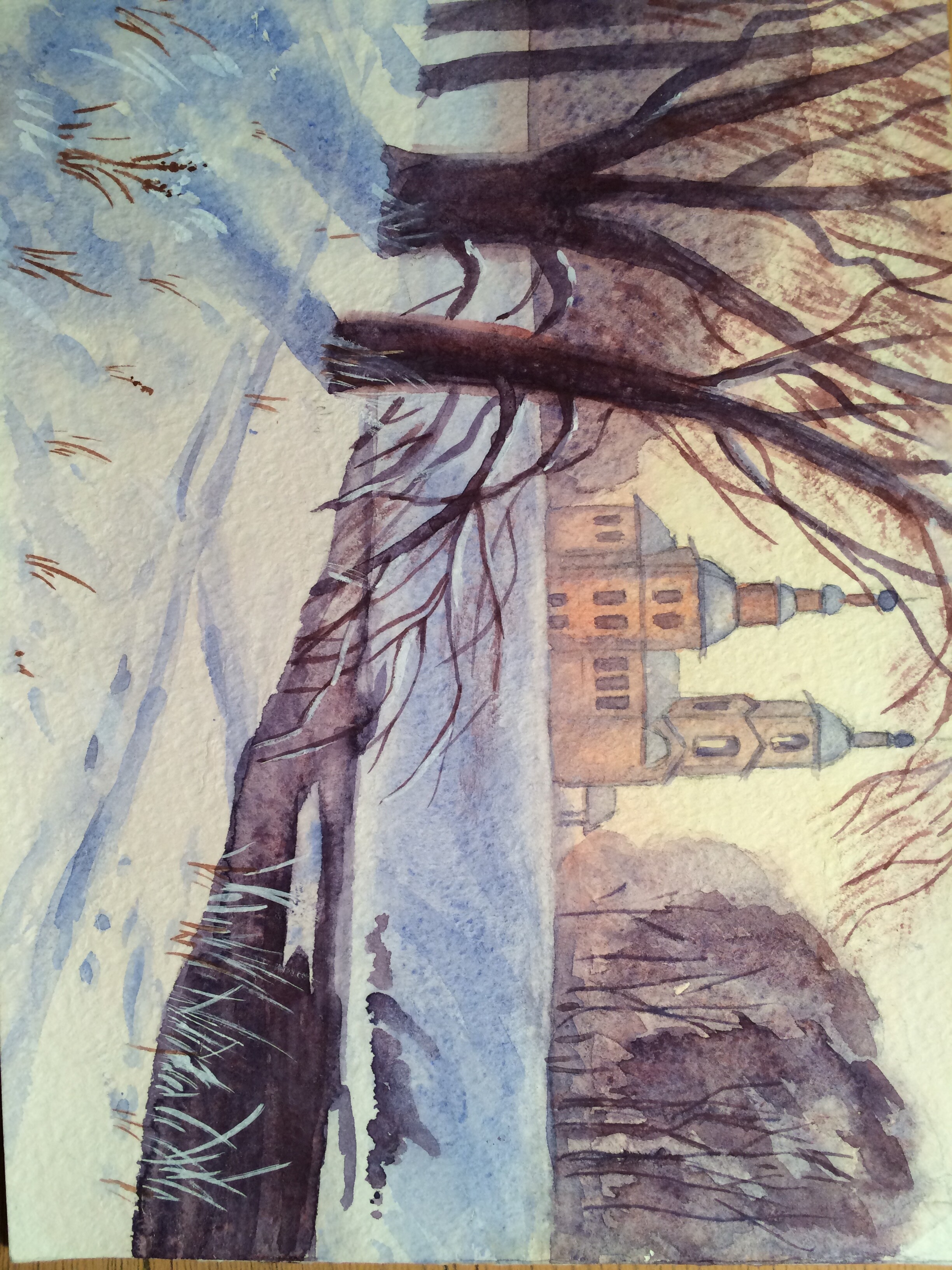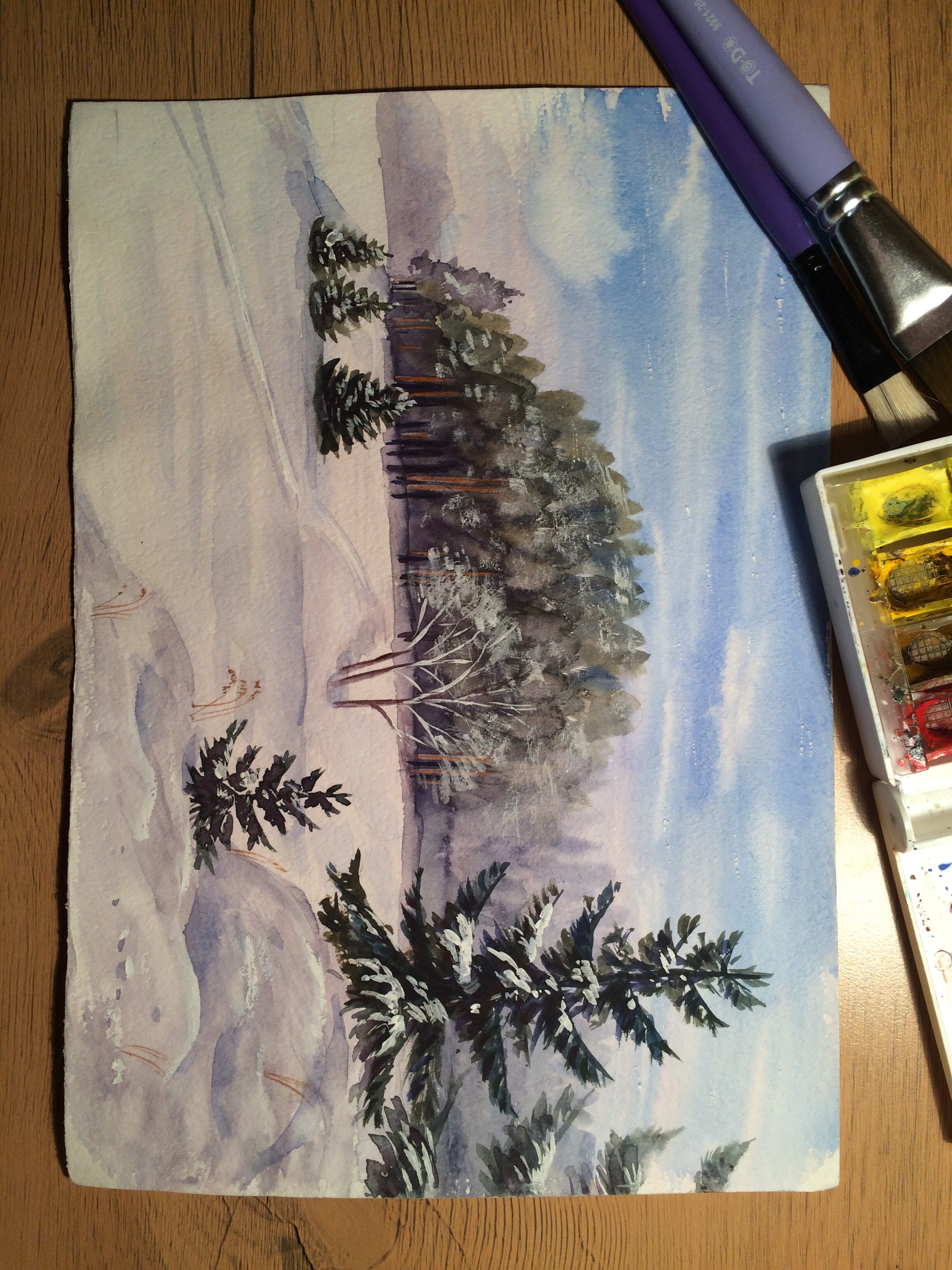 Читать дальшеВторой мой акварельный пейзаж из Ширяево, сделанный в тот же день. Если приглядеться, то на небе и на горе видны ледяные узоры.
