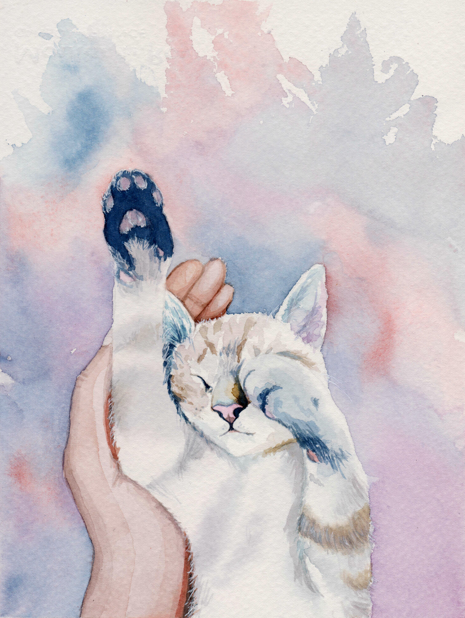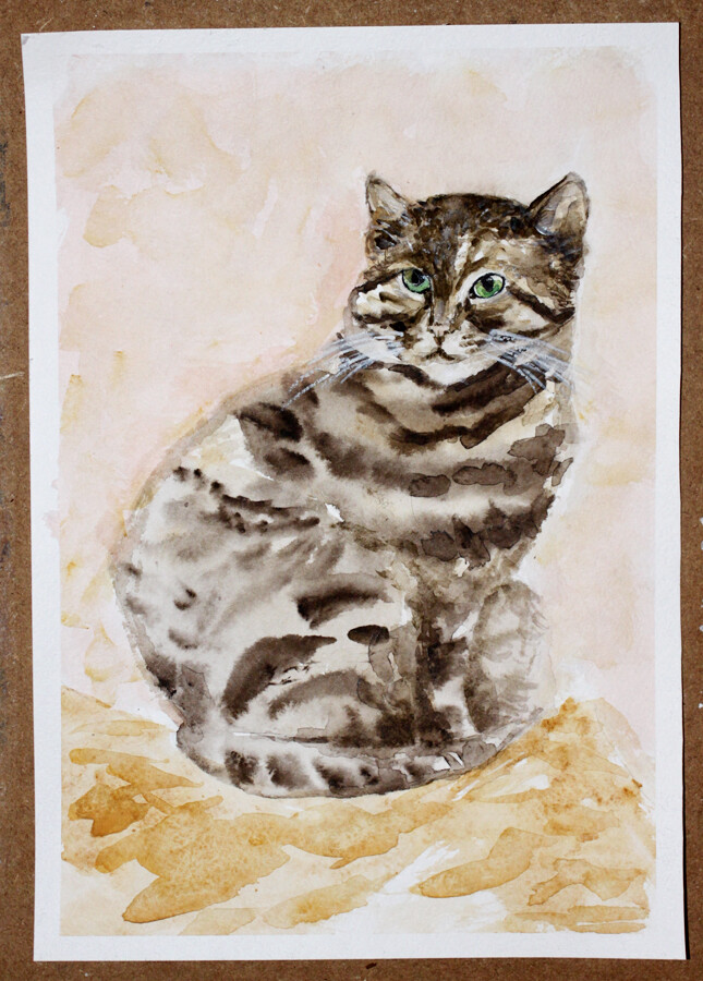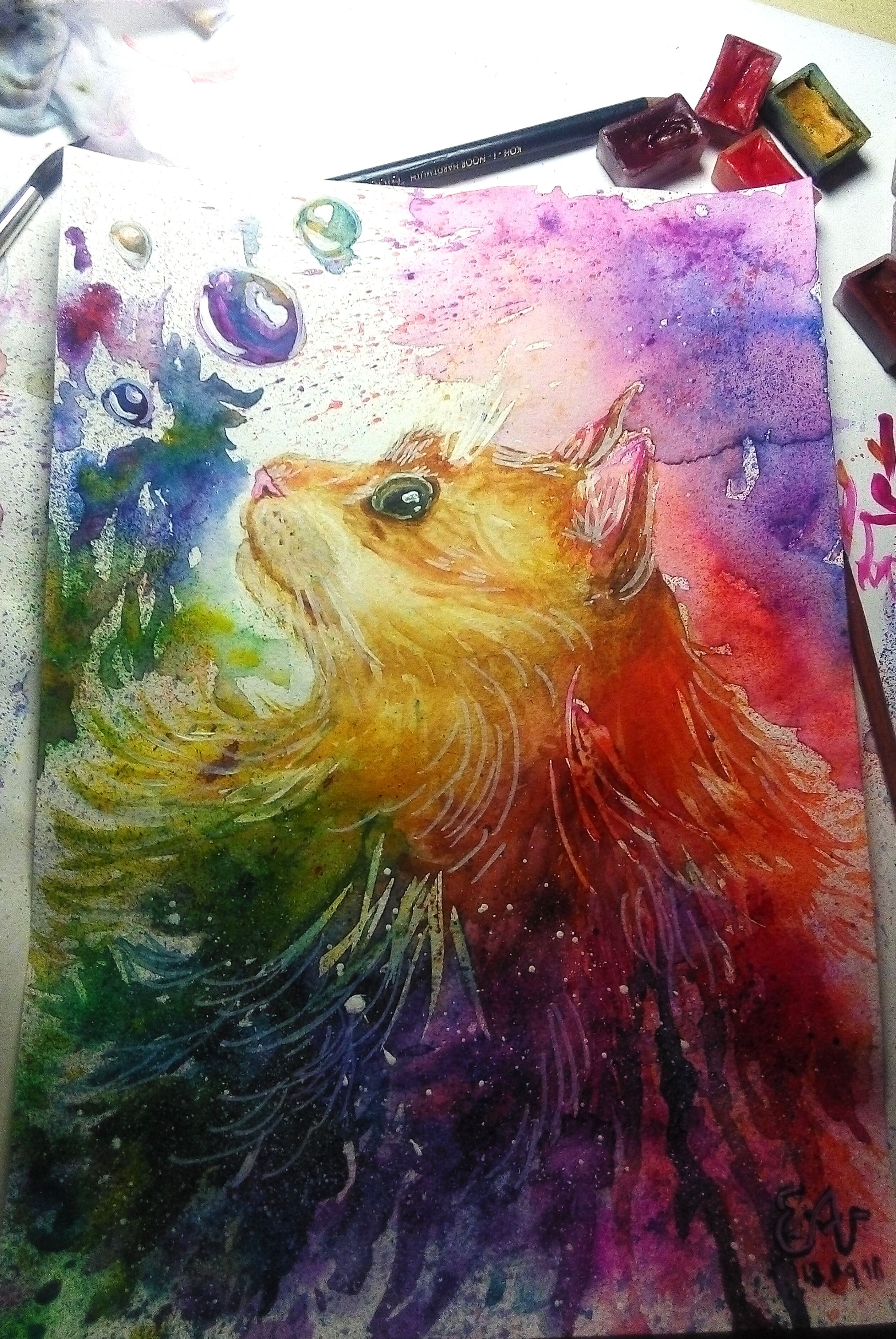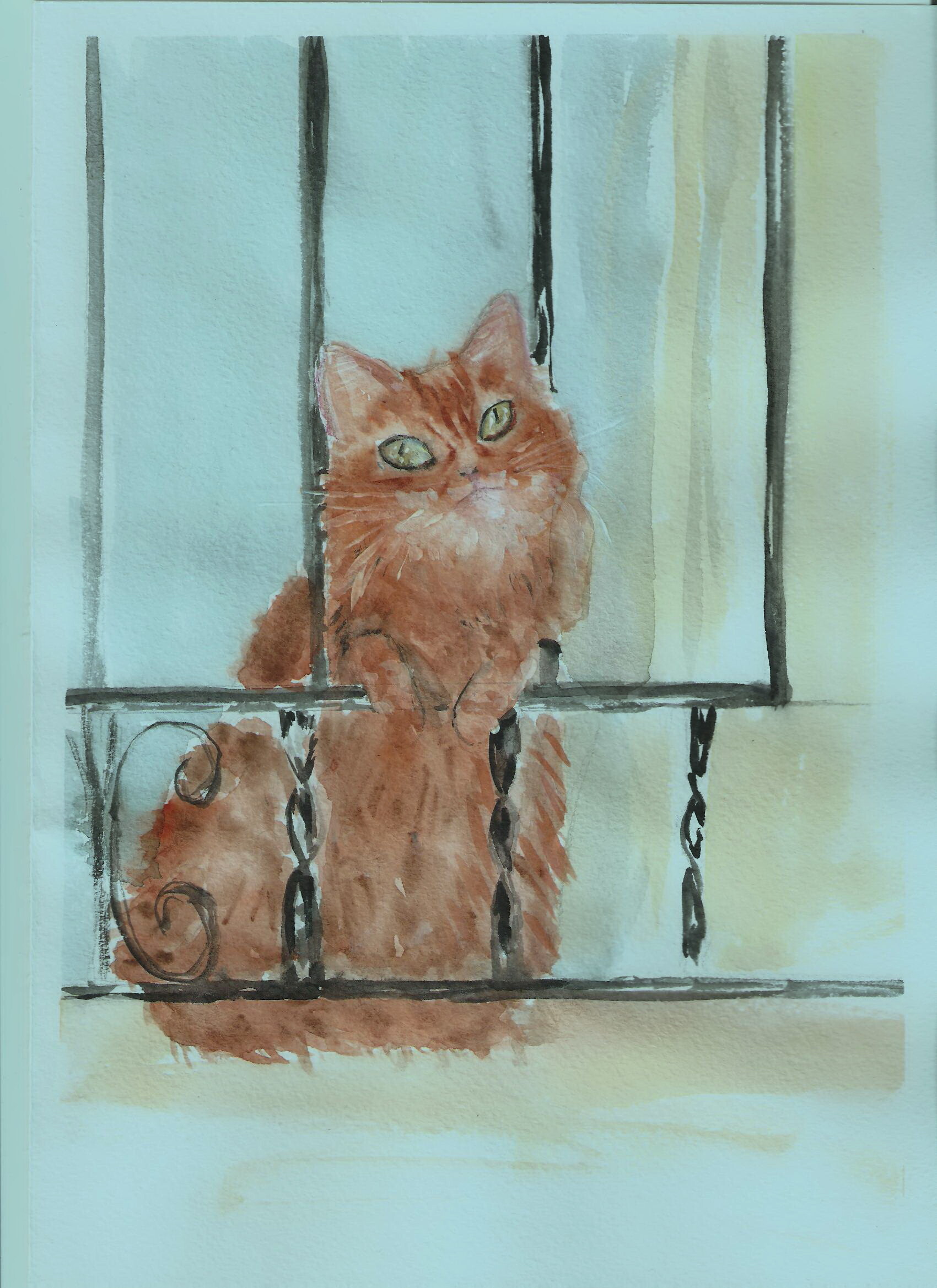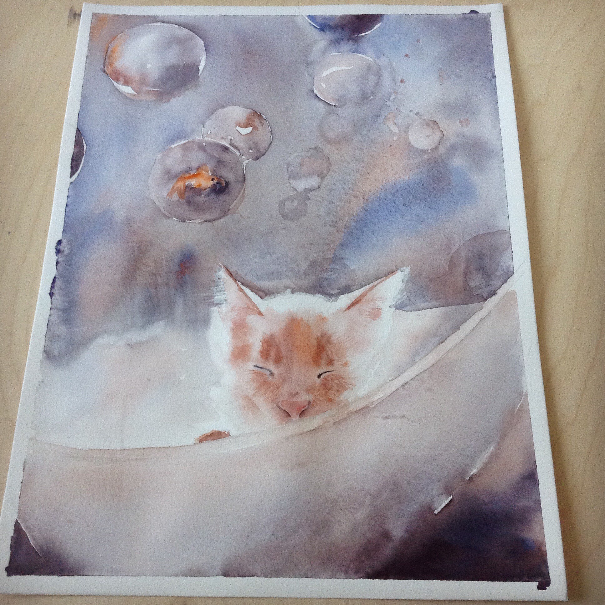 Мы выбрали две работы, на которых есть не только кот, но и настроение, эмоции, особая атмосфера, которая живо переносит нас в тот самый миг с картинки: