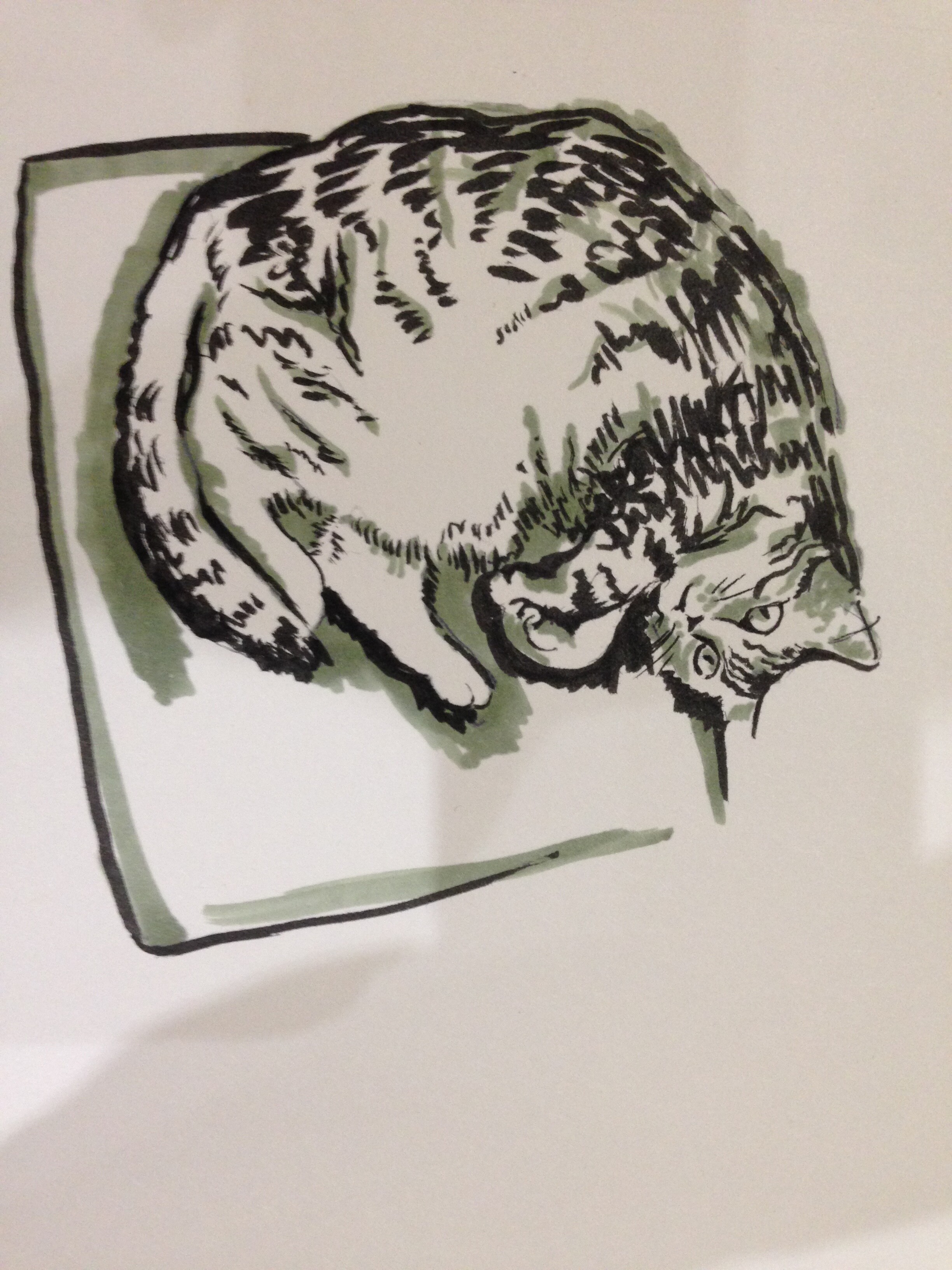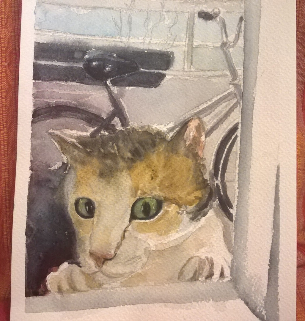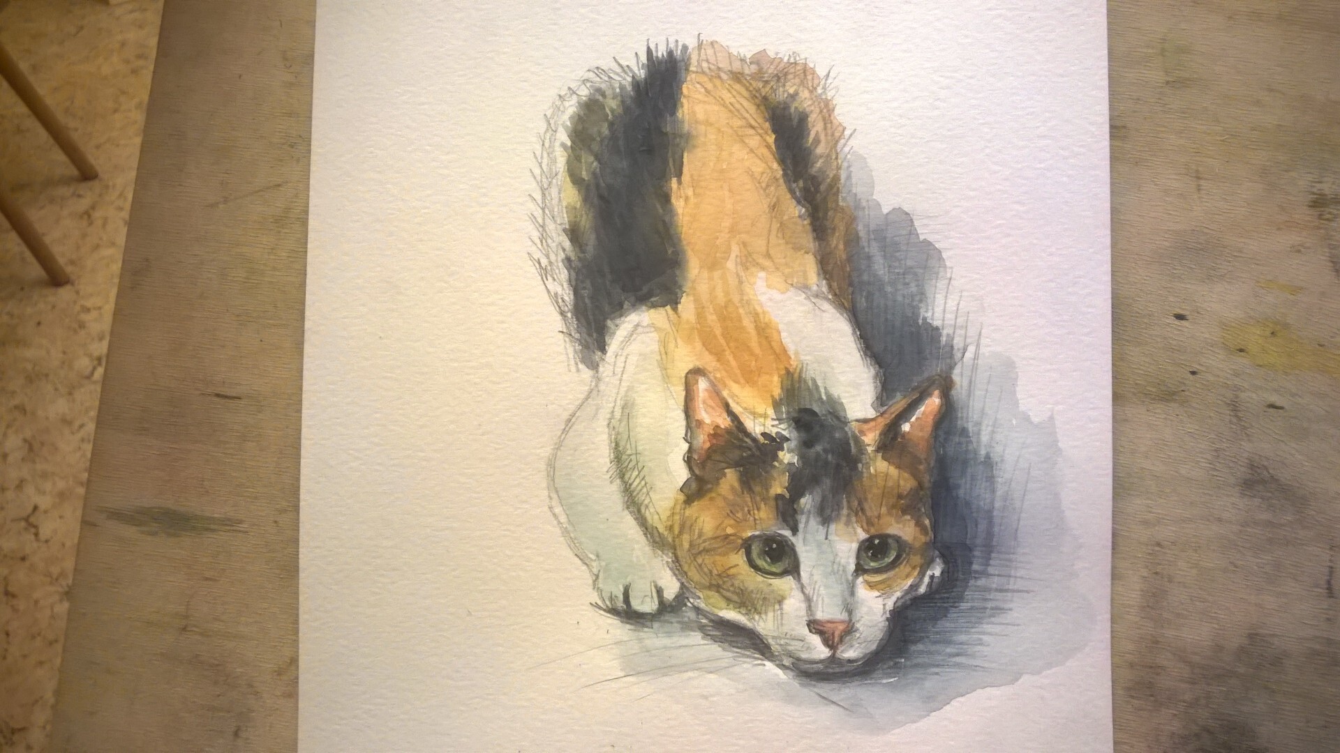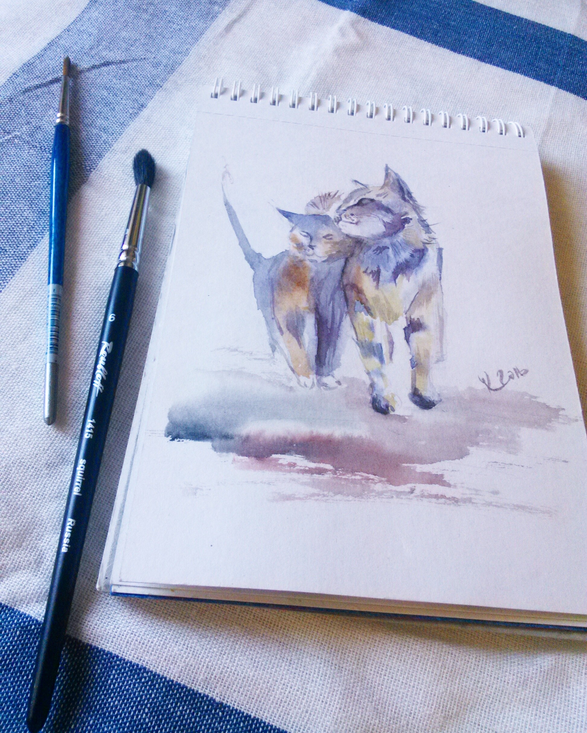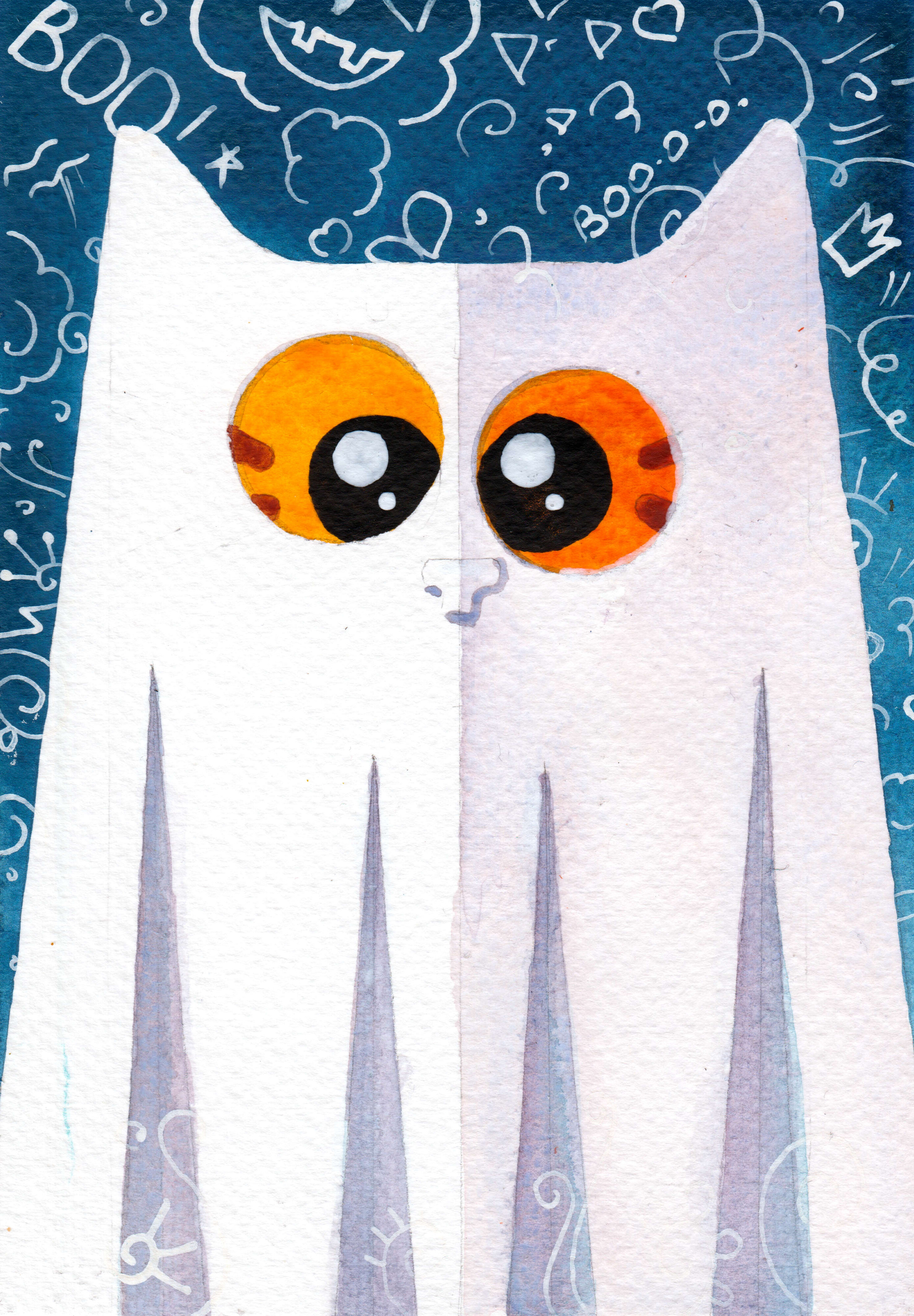 Мы выбрали две работы, на которых есть не только кот, но и настроение, эмоции, особая атмосфера, которая живо переносит нас в тот самый миг с картинки: