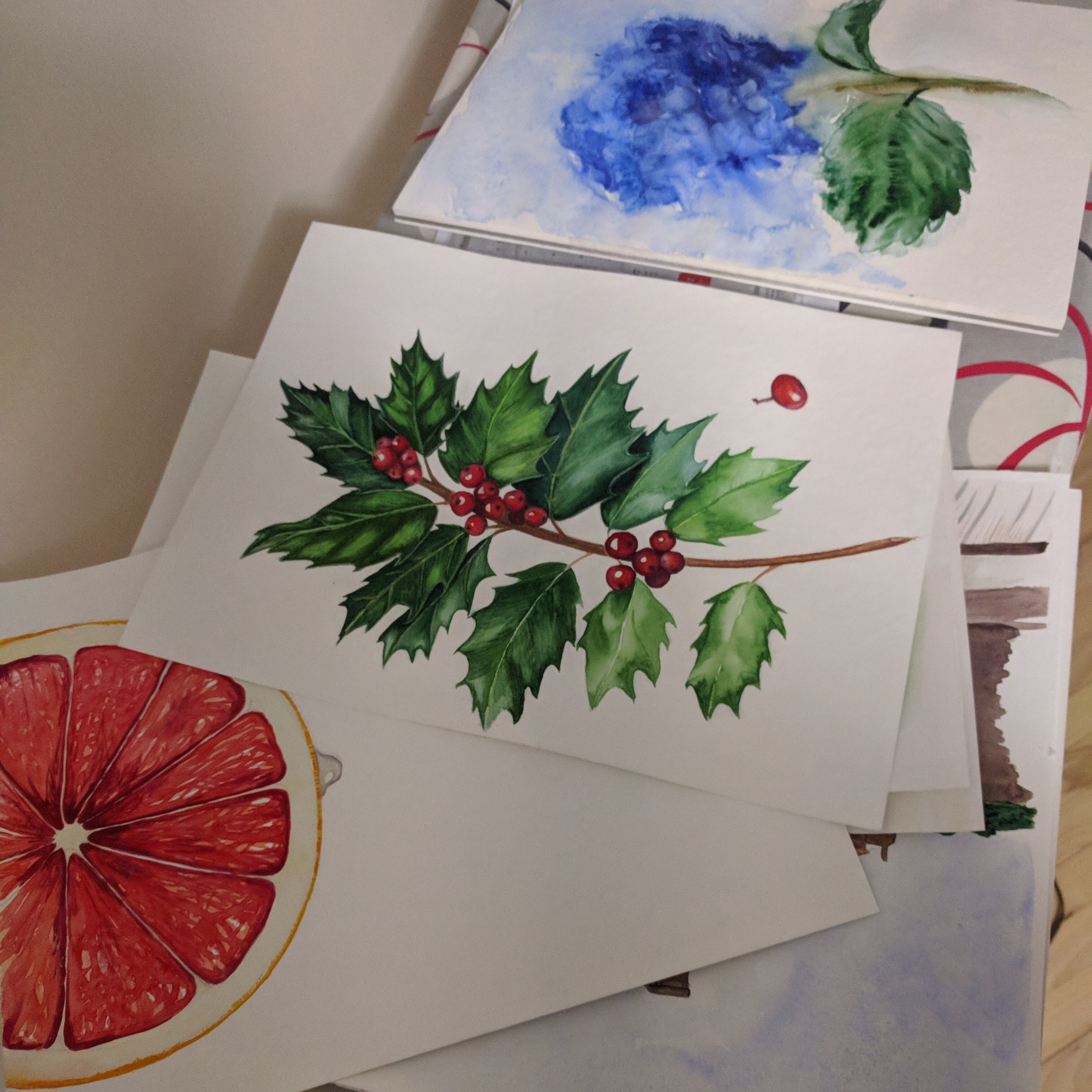 Выложите ПОЖАЛУЙСТА фотографии рефернсов или ссылки на них. Гортензию нашла ниже в комментариях, а вот остролиста и грейпфрута нет. Получается, что приходится тупо повторять за Вероникой.