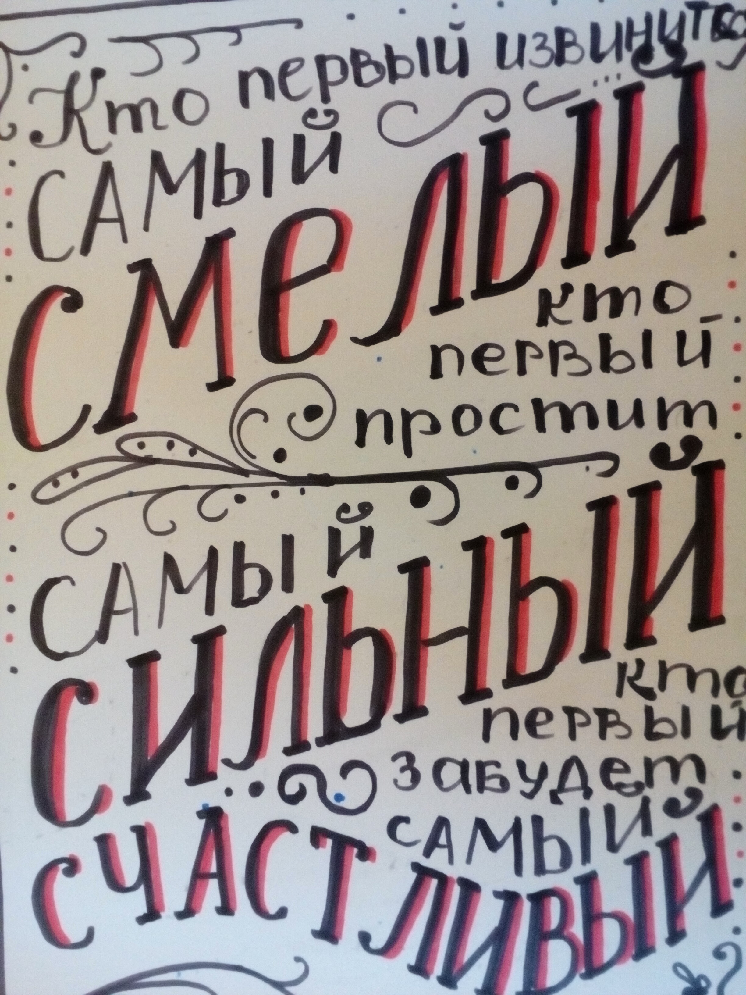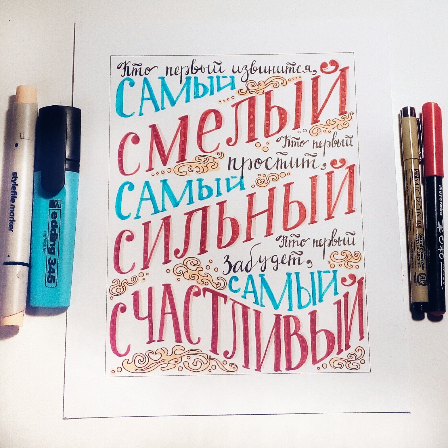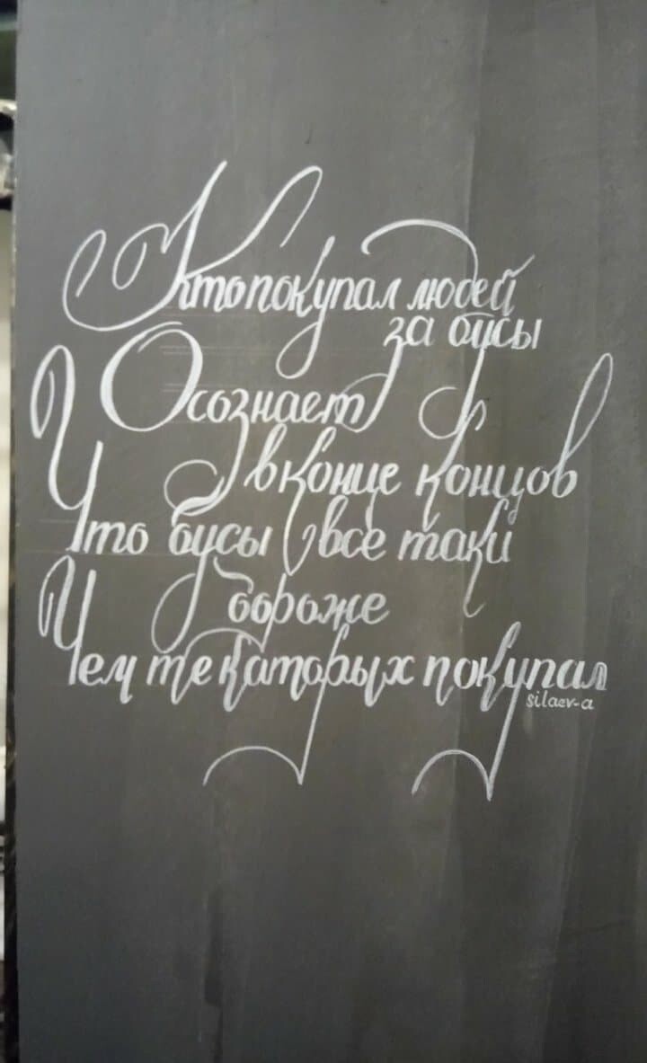 Читать дальшеУчаствовала заочно, для меня, как обладателя довольно отвратительного почерка - большой прогресс. Я перестала бояться накосячить, приняла все нехорошести, как должное, как признак натуральности и спонтанности. На это можно смотреть! Обычно смотреть можно без слез только на те буквы которые рисую, а скриптом моим только пугать окружающих. Огромное спасибо за курс!