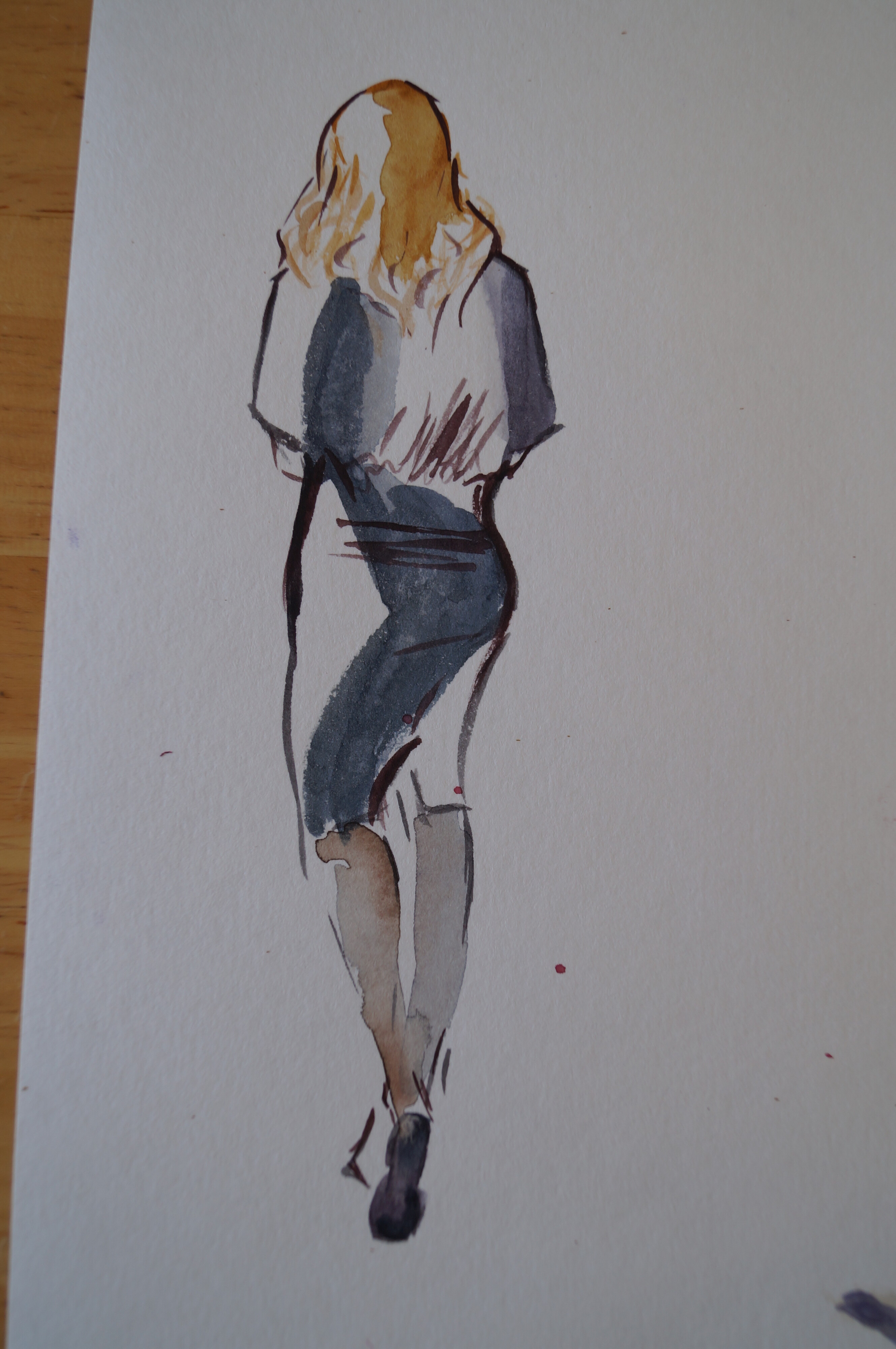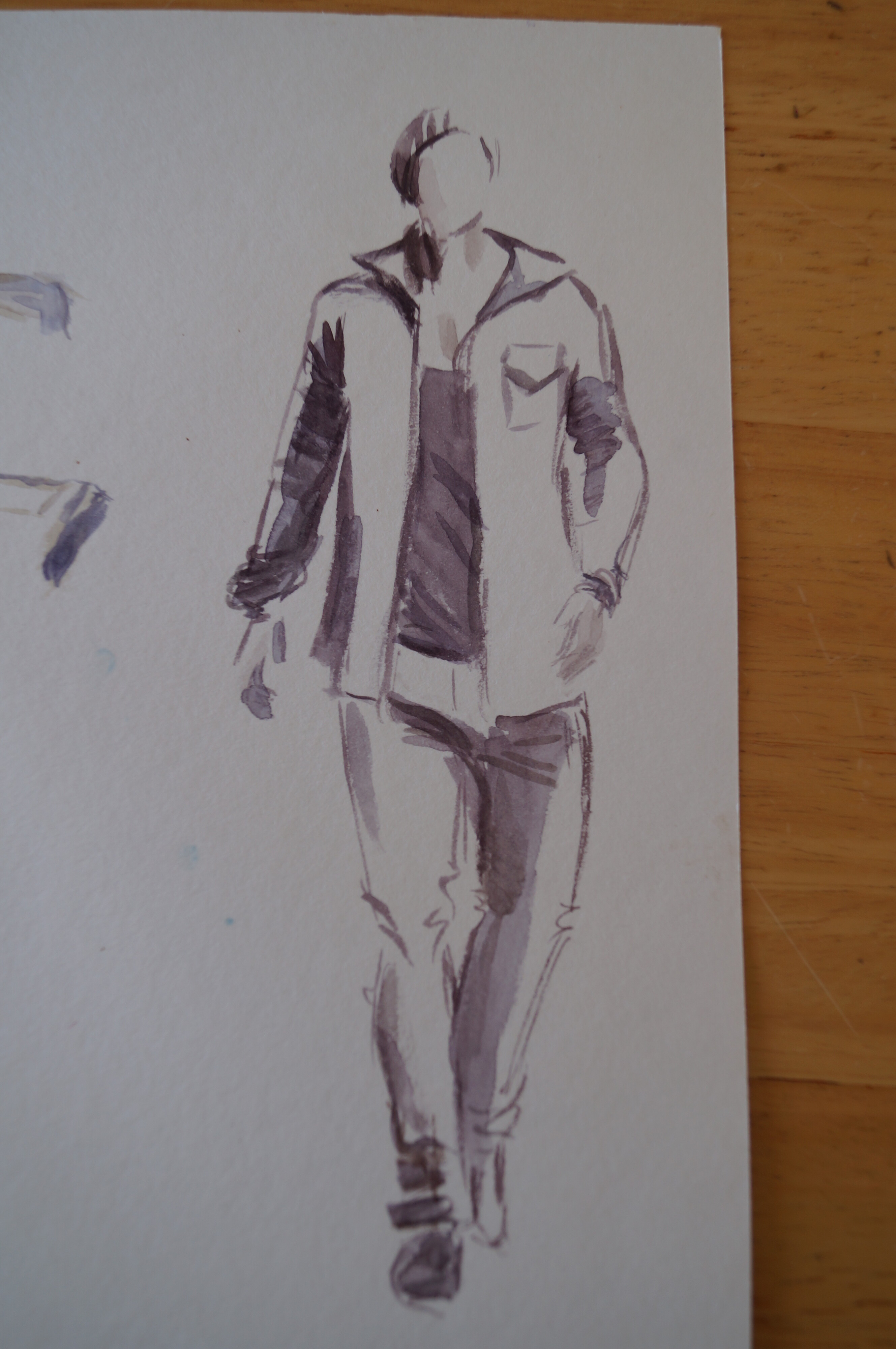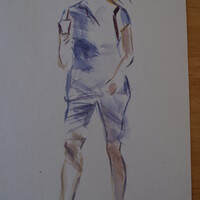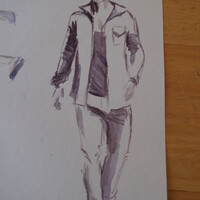Молодого человека нарисовала сама сразу после мастер-класса. Результат понравился, хотя руки получились коротковаты (или ноги длинноваты). :)