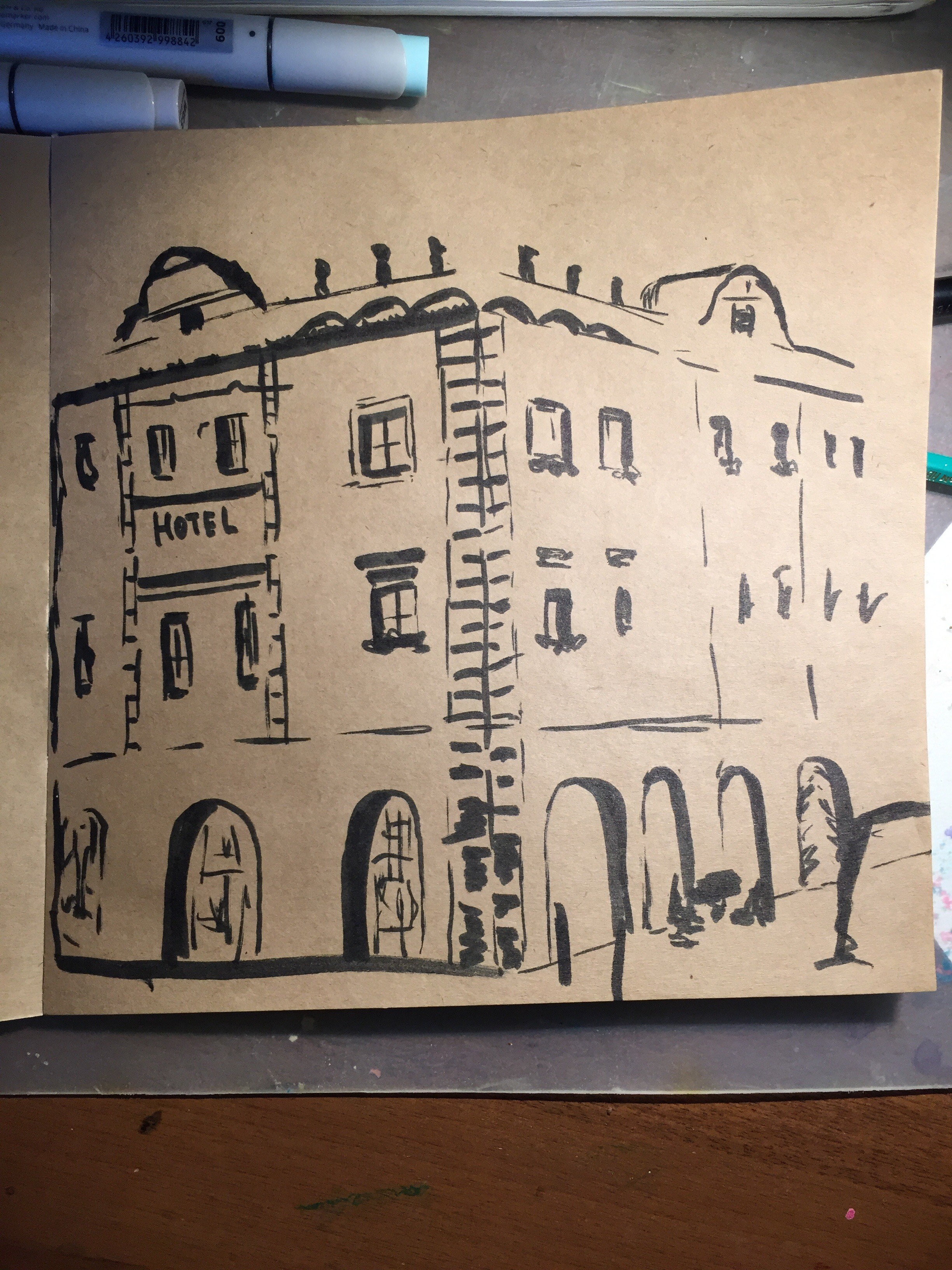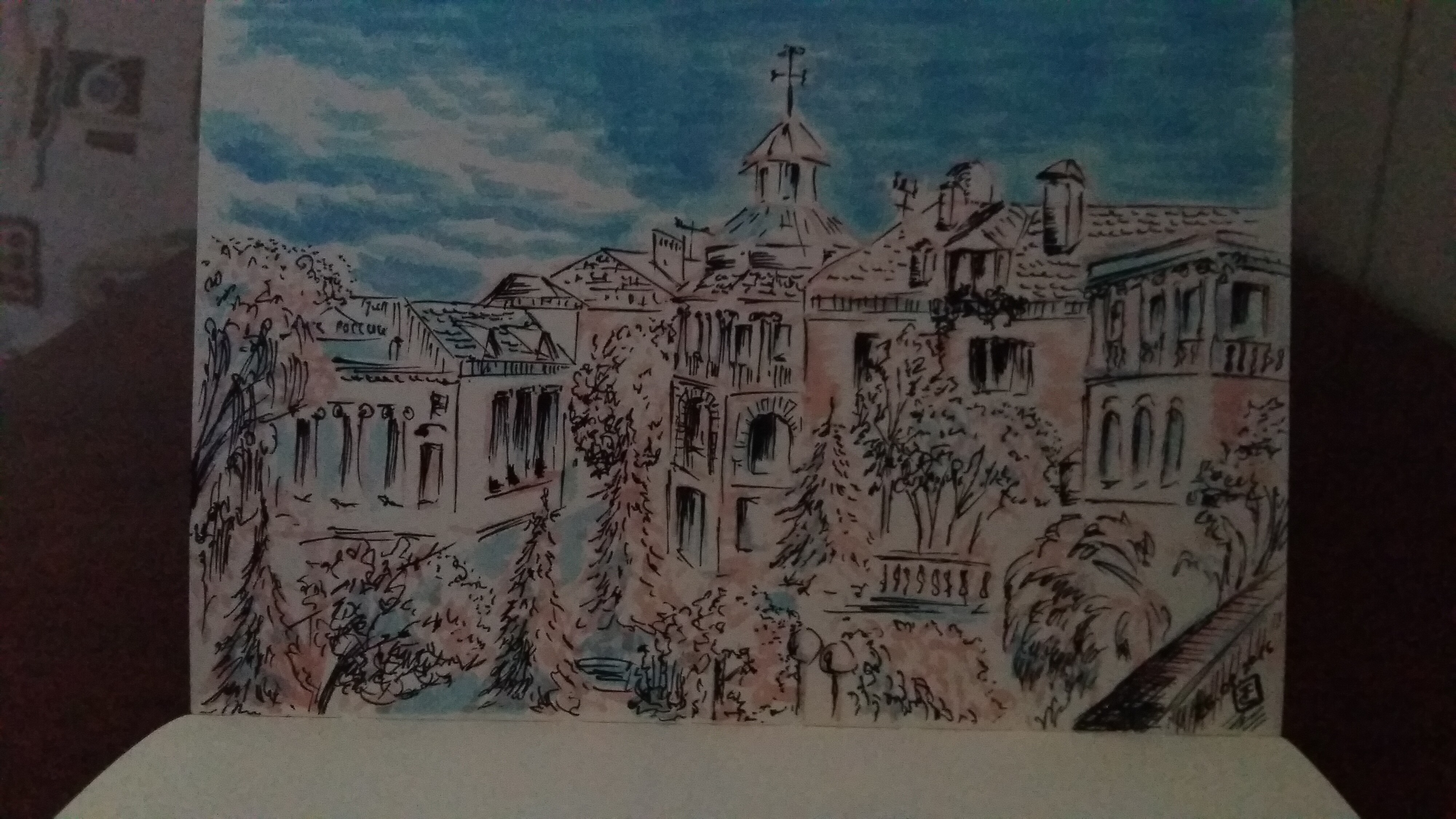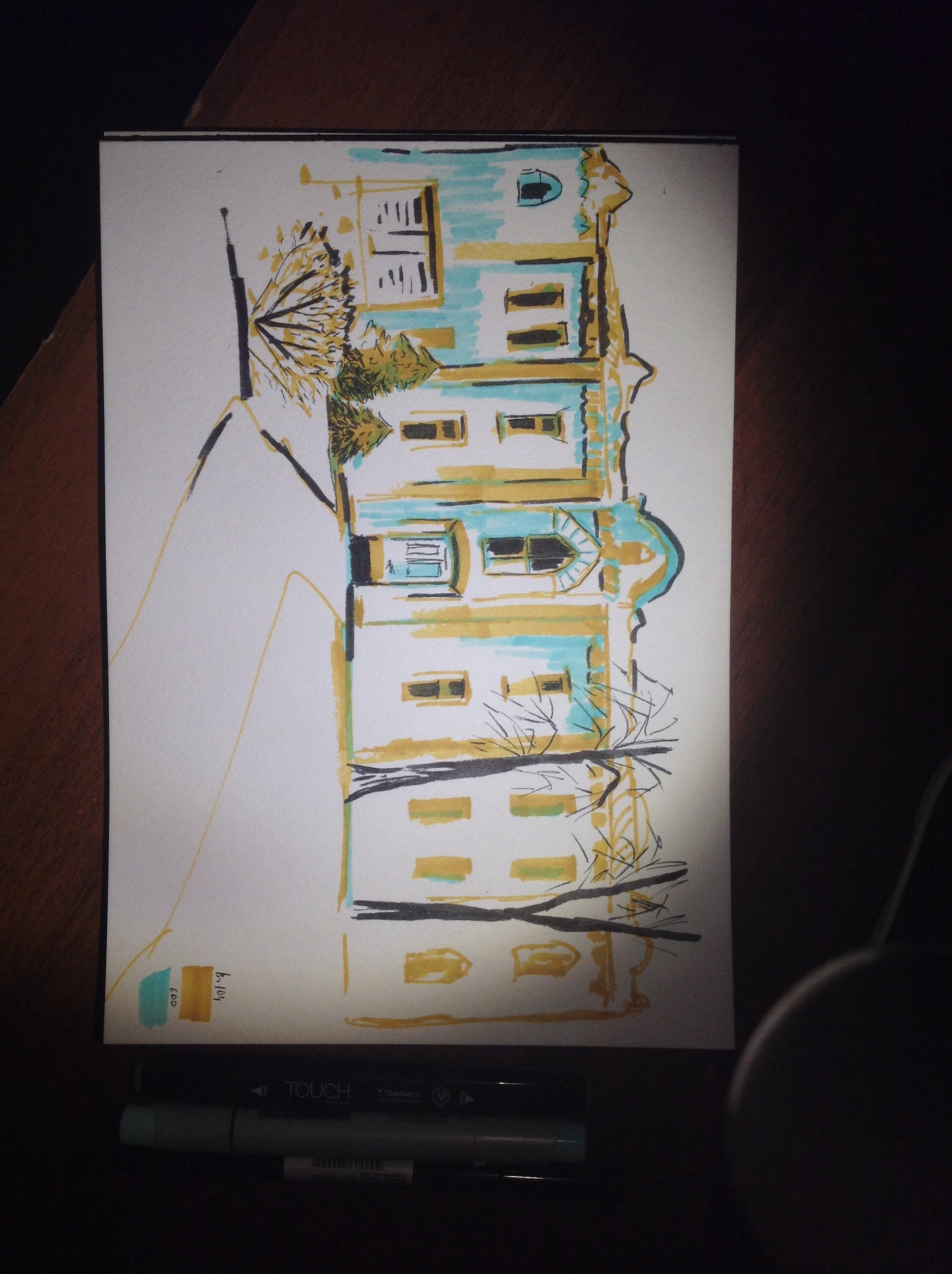 Второй дом - "Копиков" нет - рисовала фон акварелью, потом уже пользовалась брашпеном.
