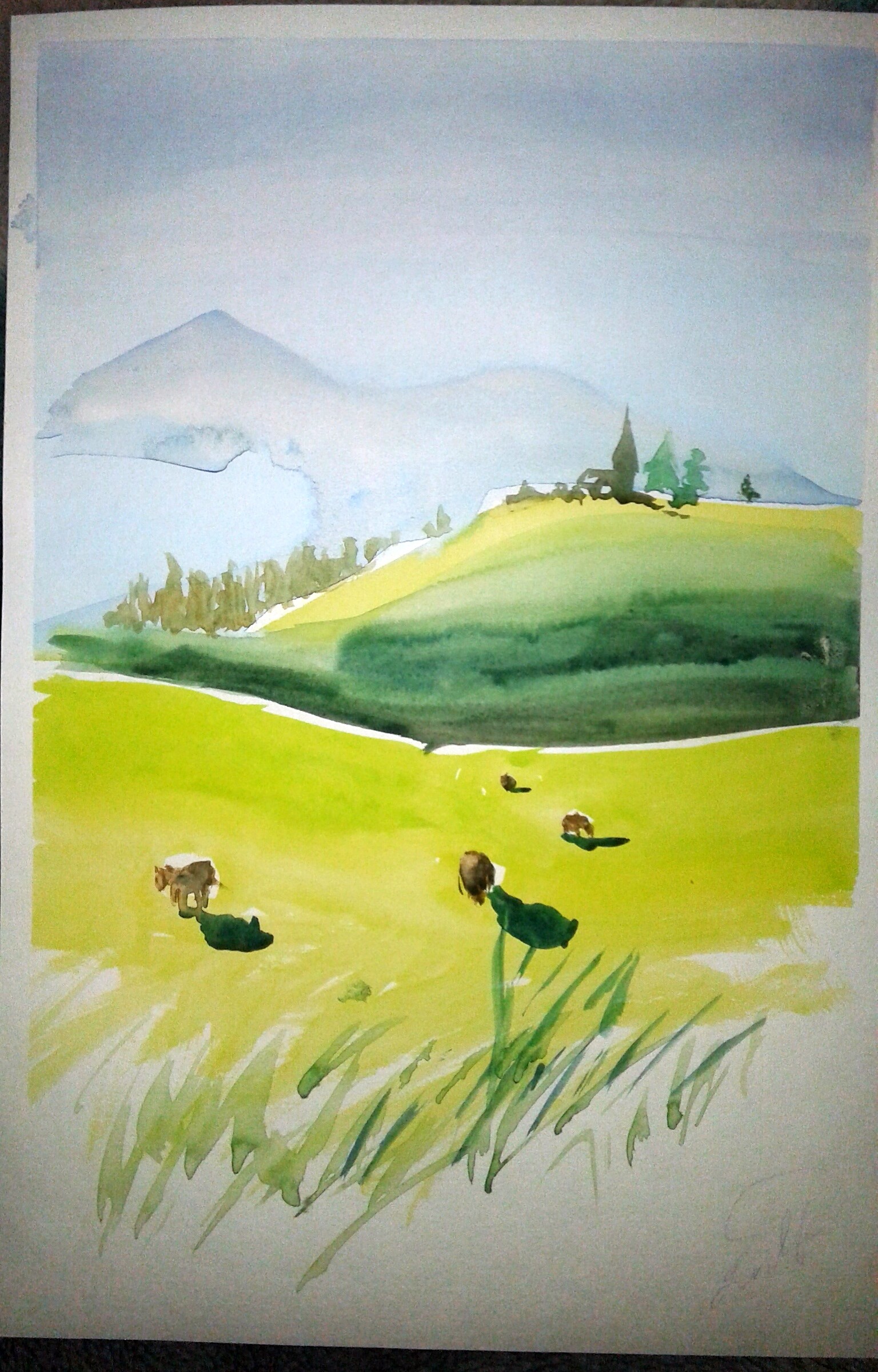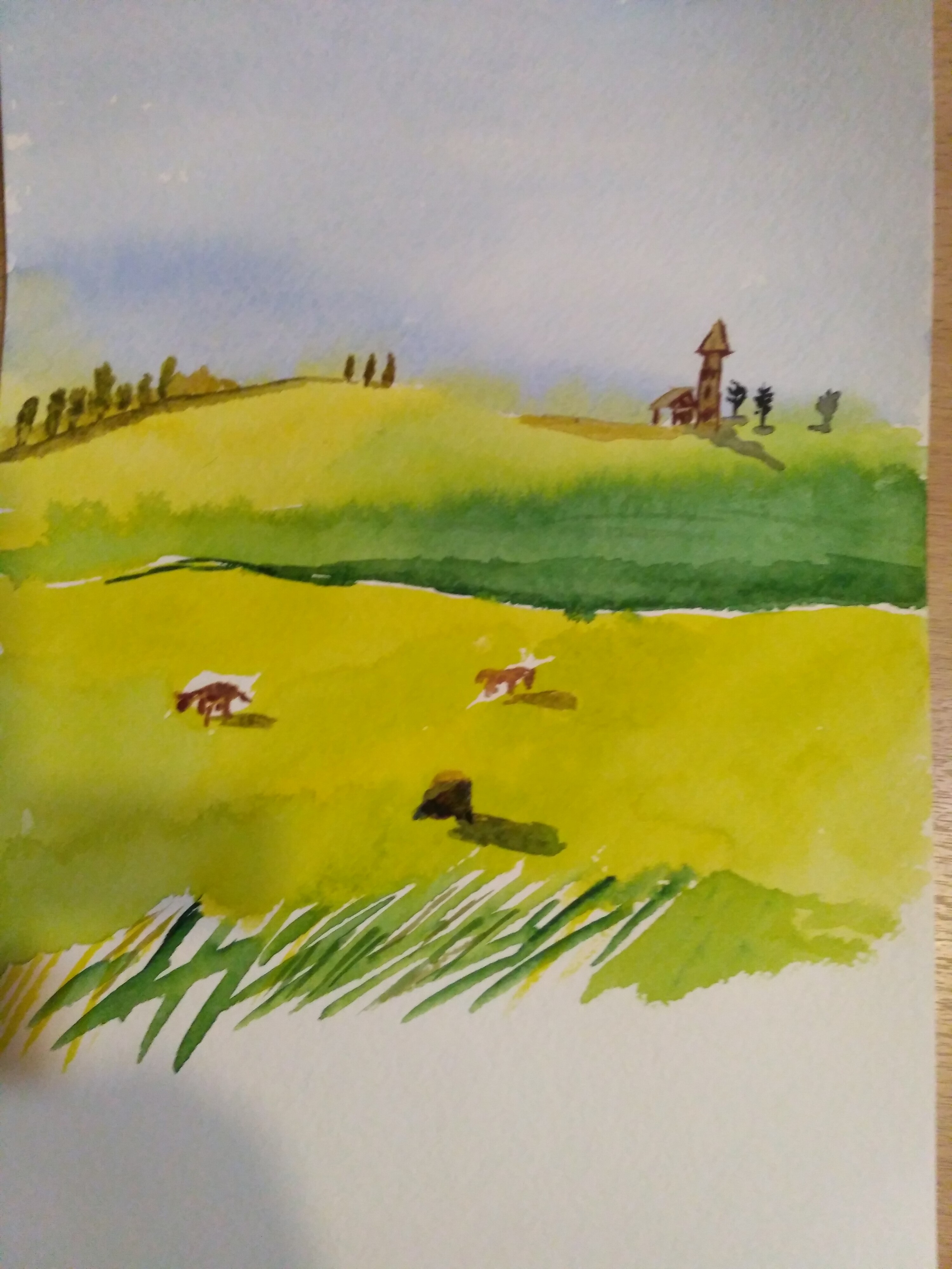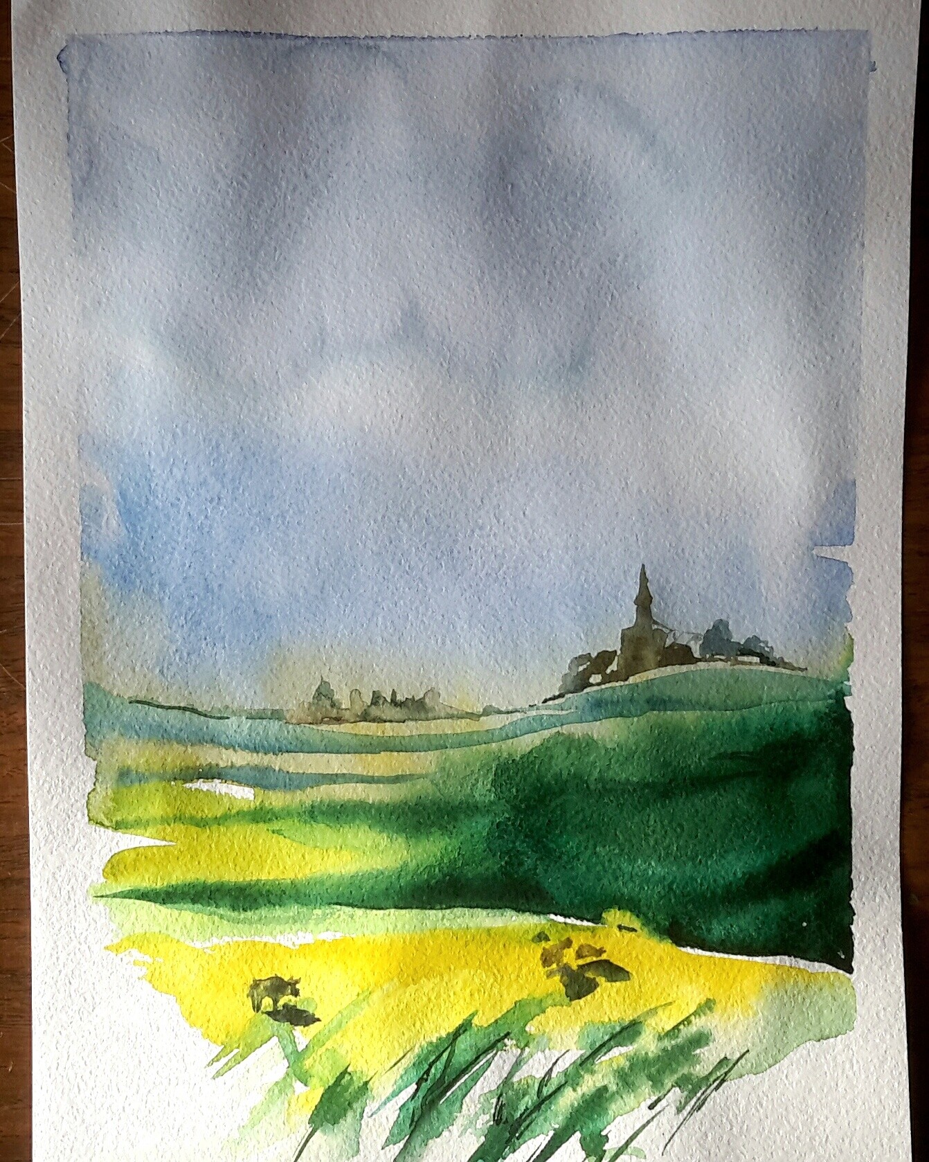 Пробуем пейзажный жанр в технике акварели по-сырому.