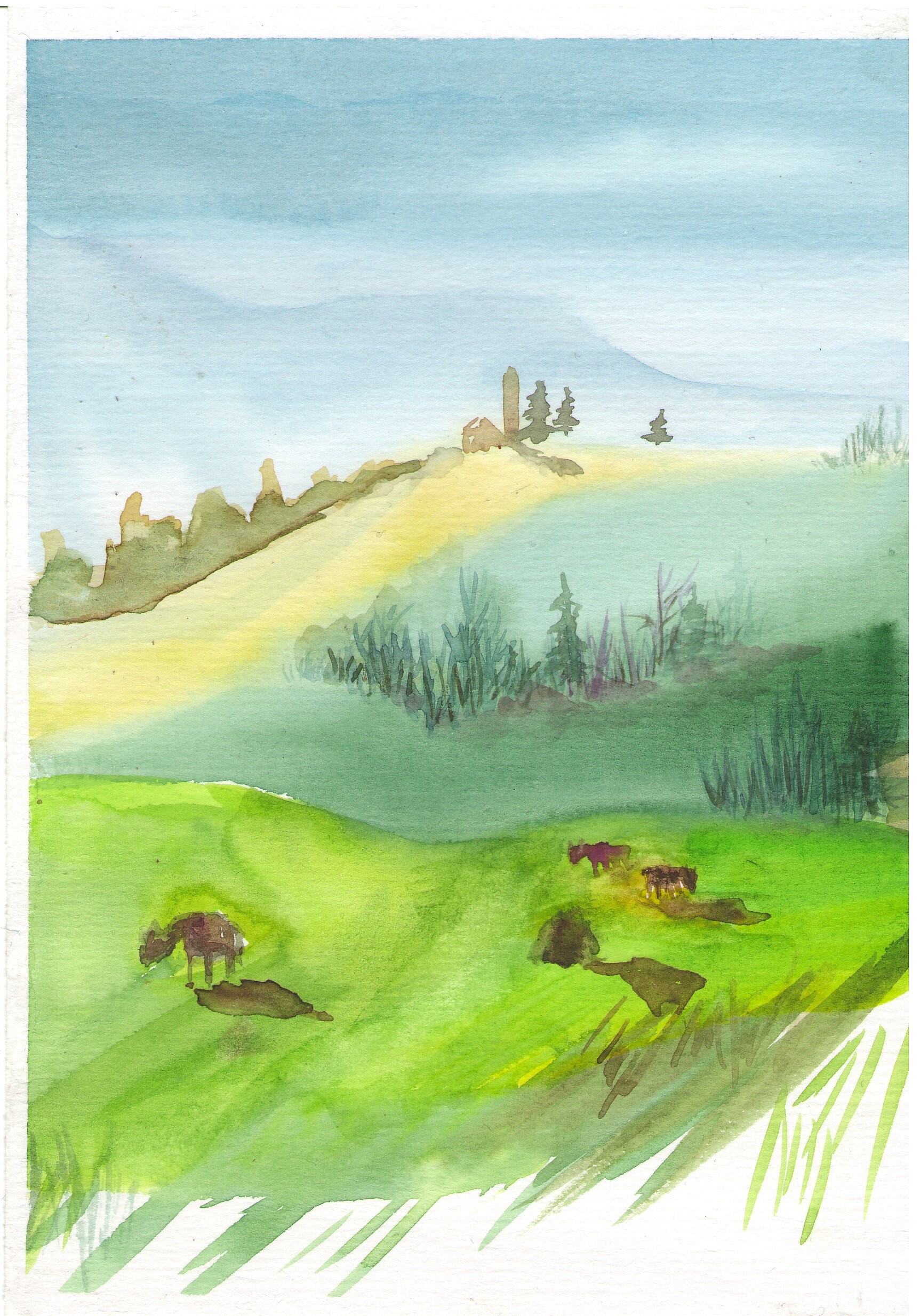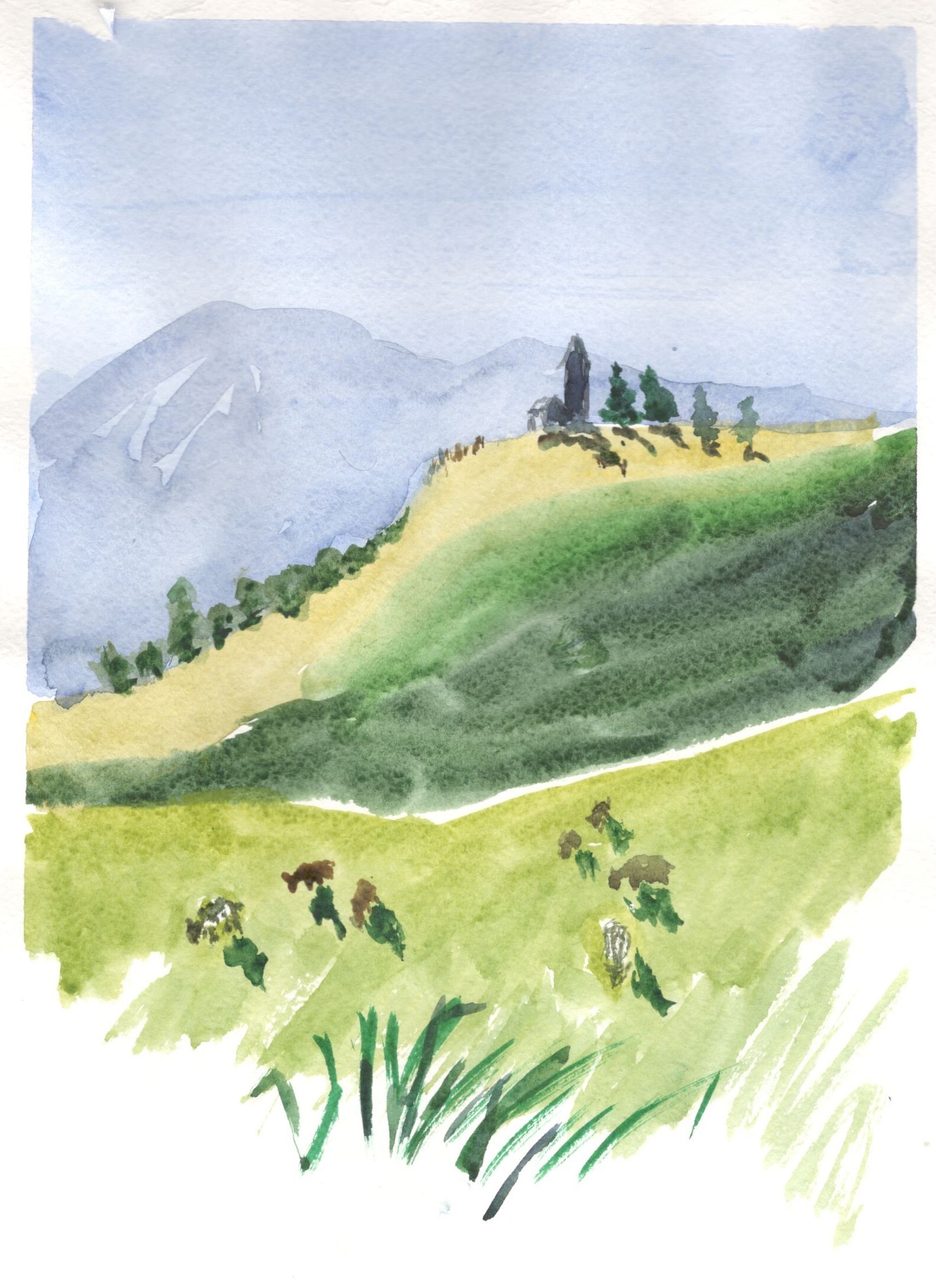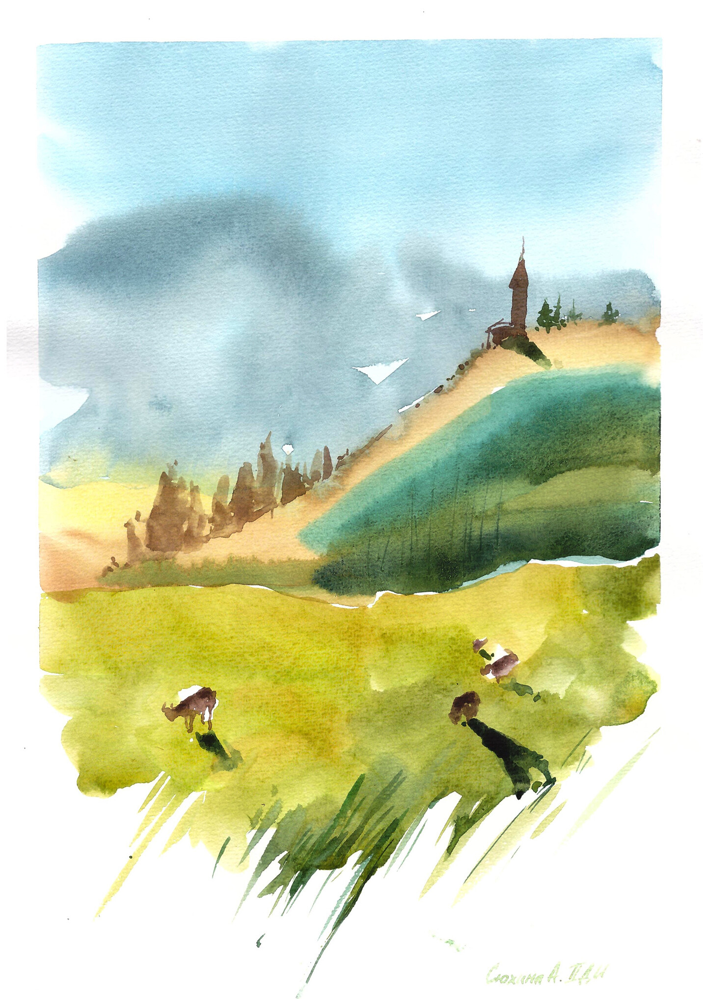 Пробуем пейзажный жанр в технике акварели по-сырому.