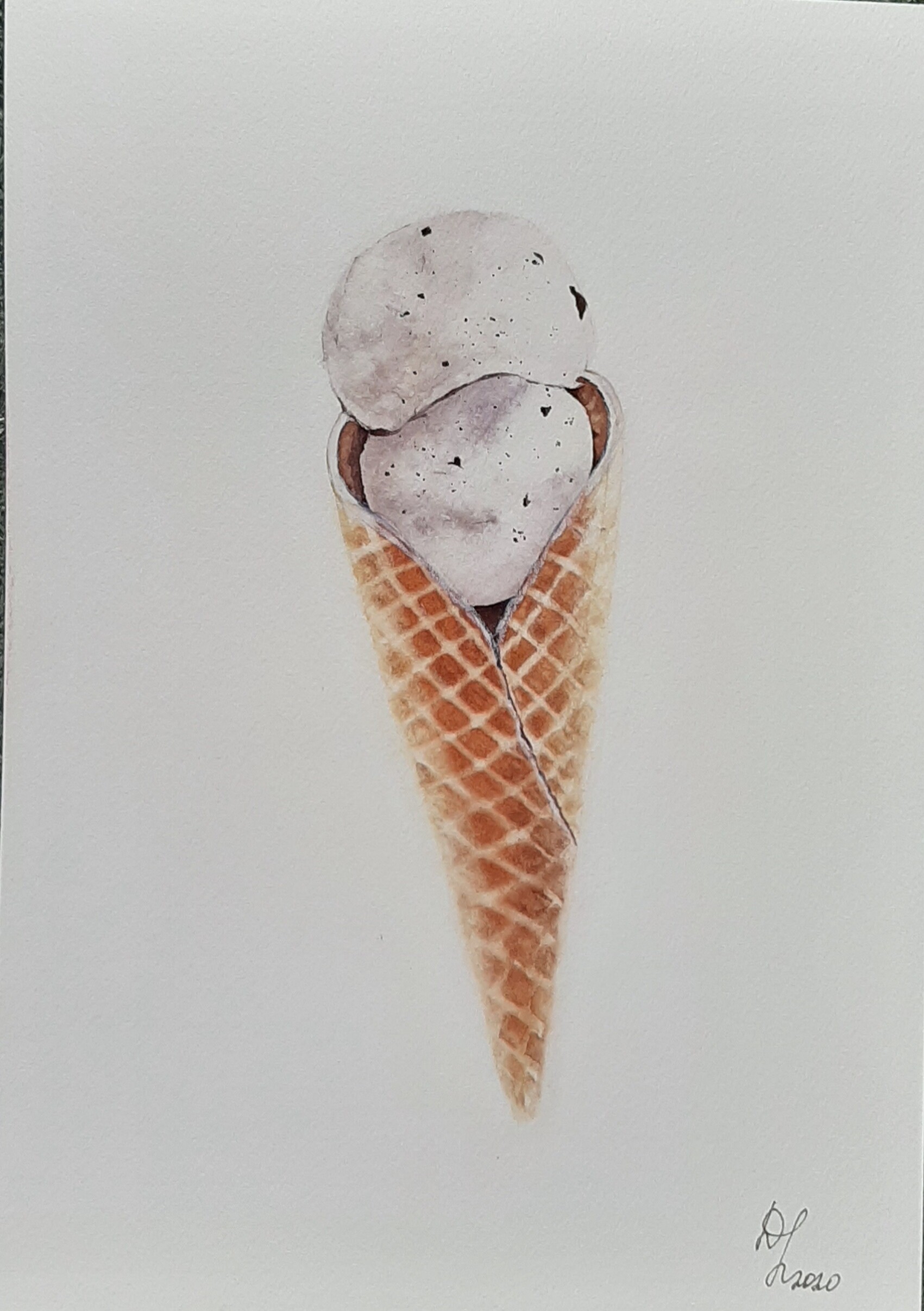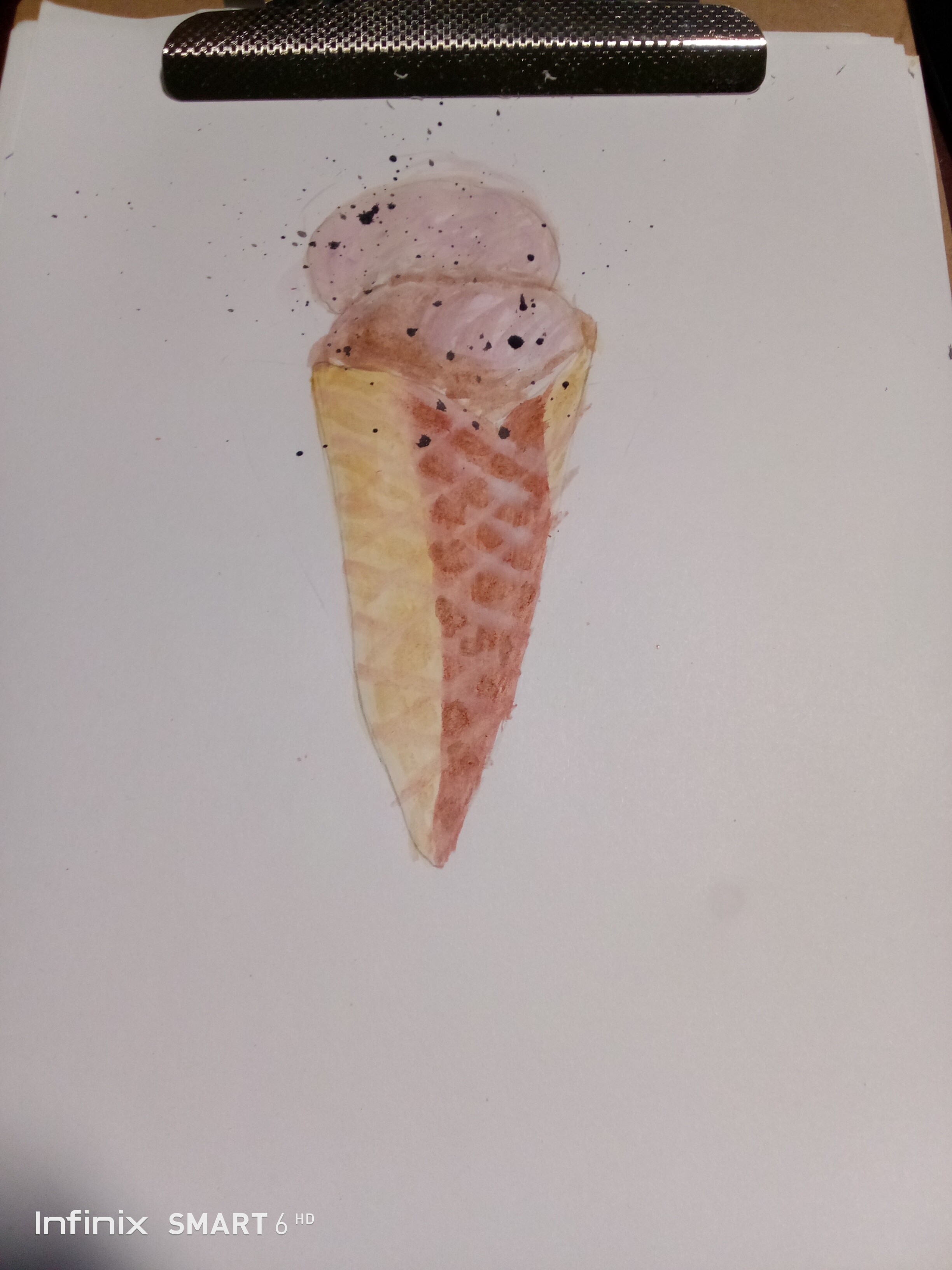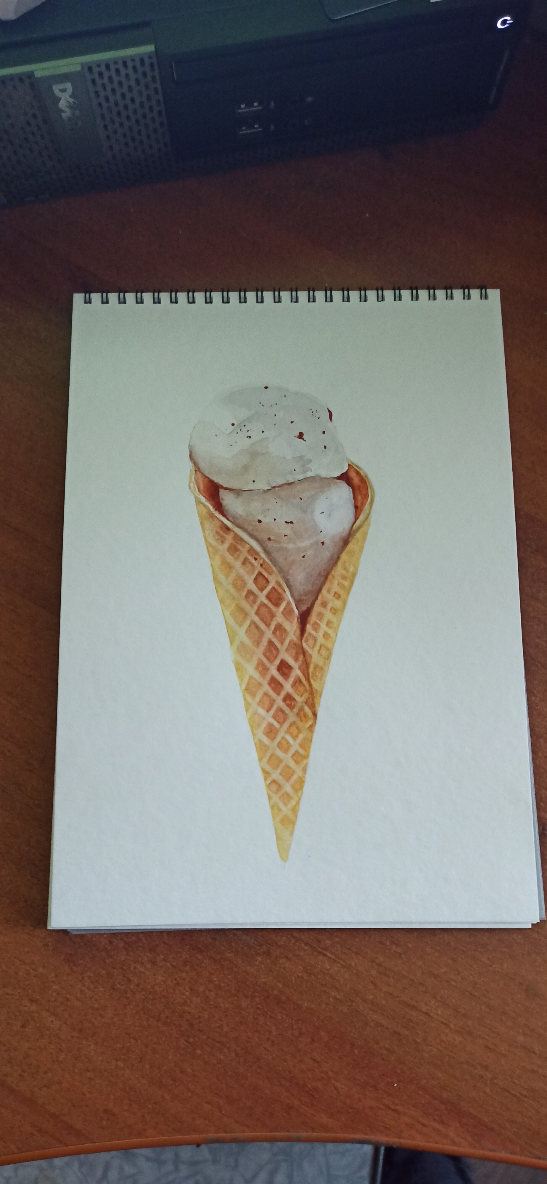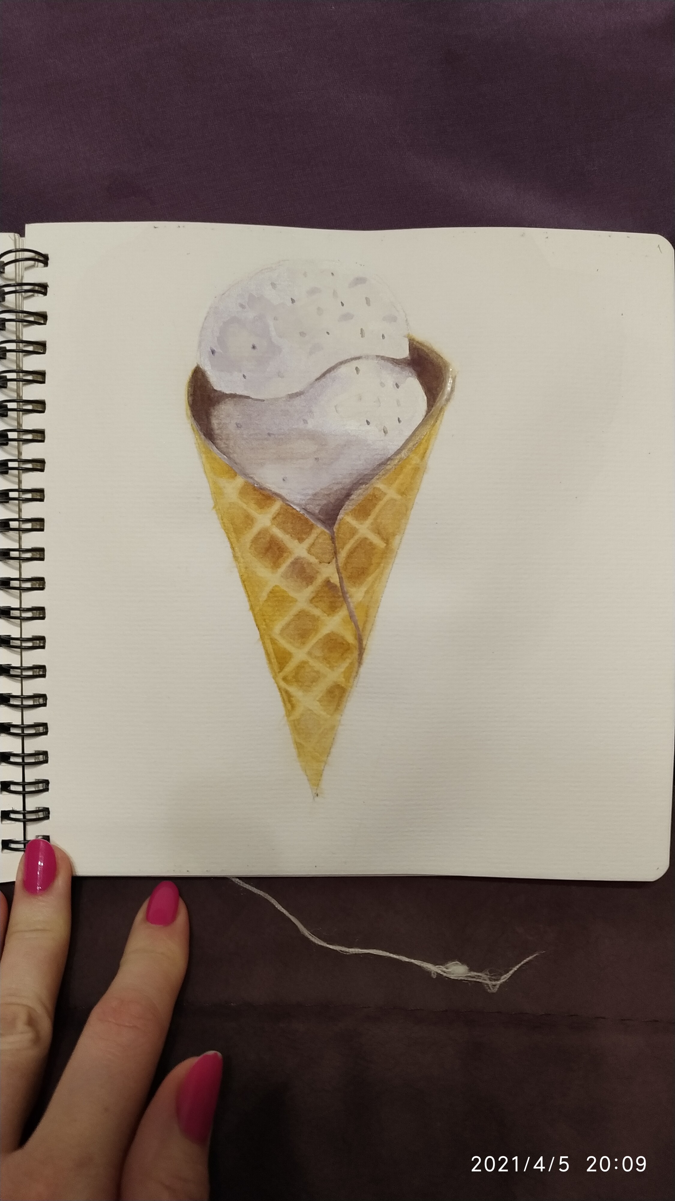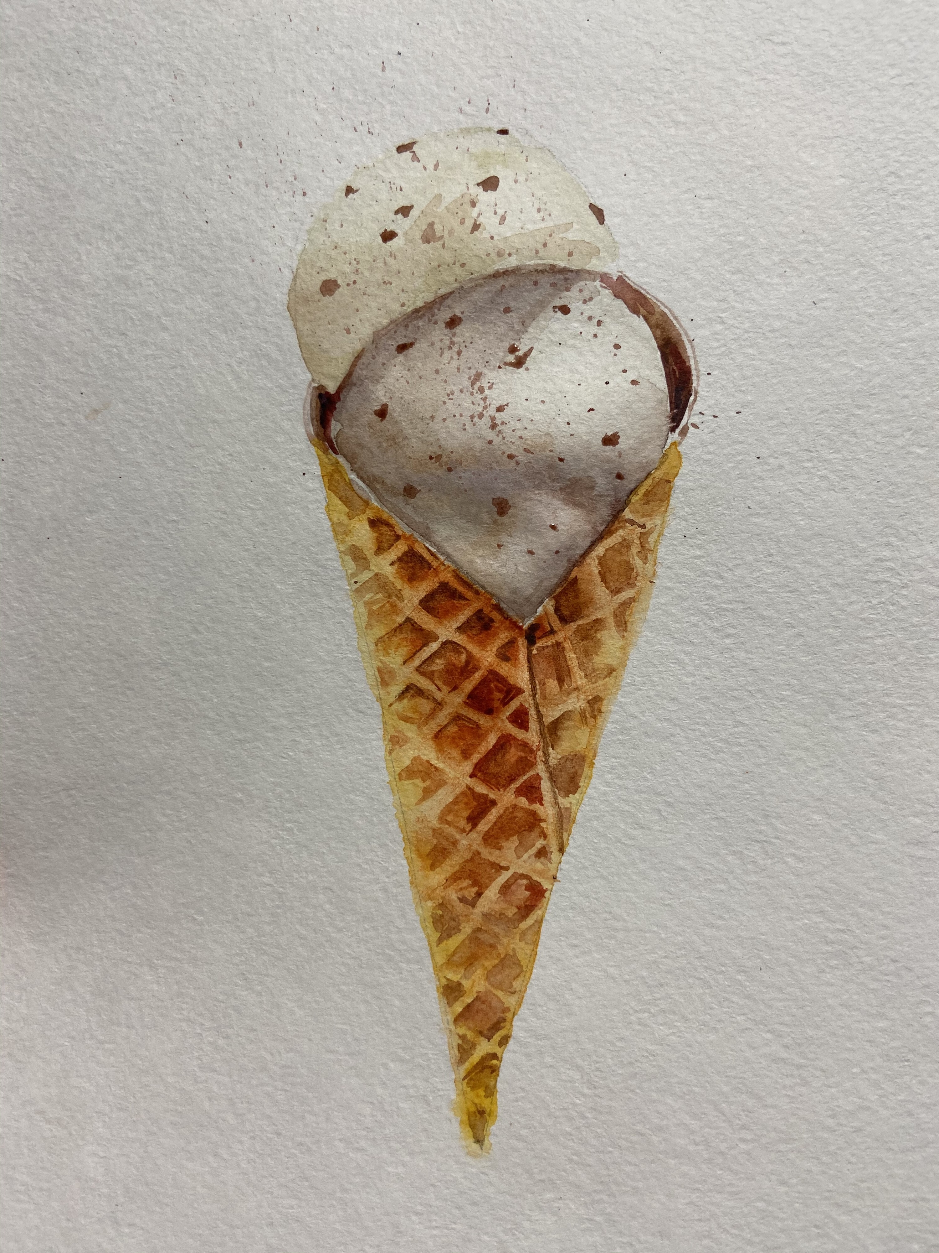 Тени мороженого подчеркиваем холодным тоном коричневого с фиолетовой. Выбираем салфеткой и чистой влажной кистью осветленные места пока слой еще мокрый.