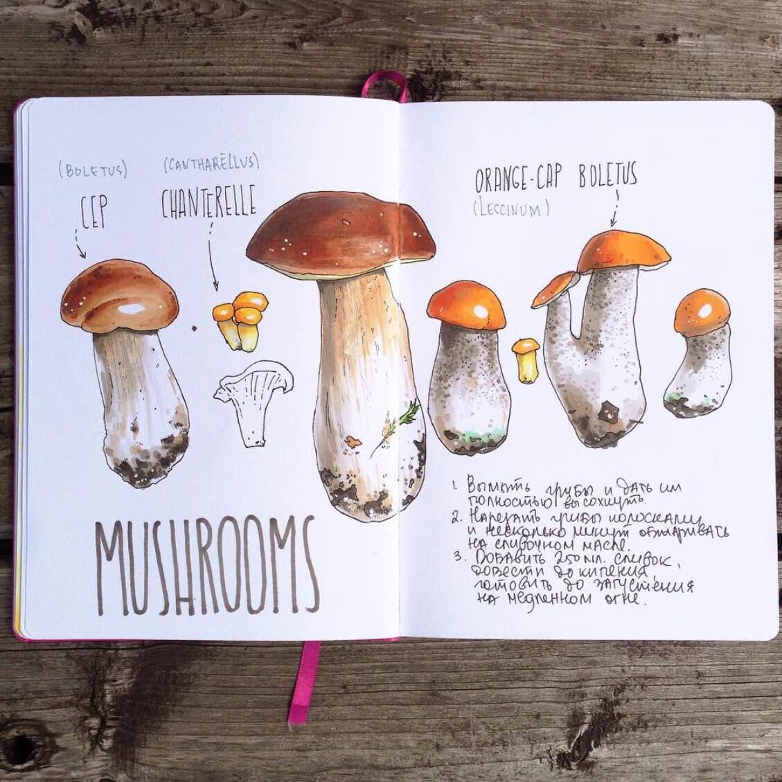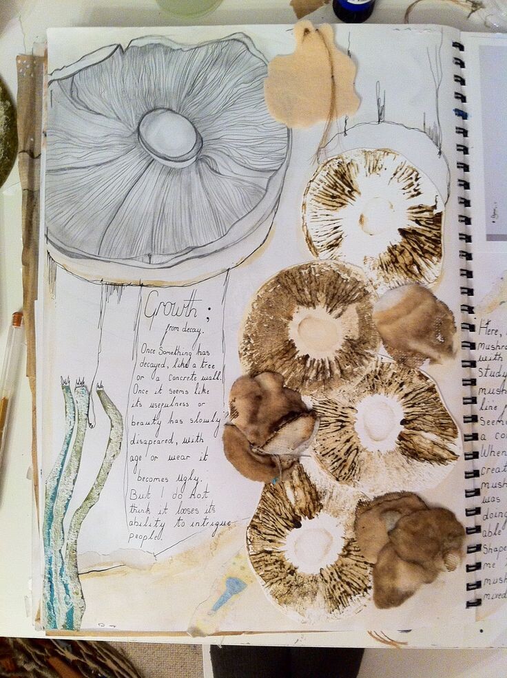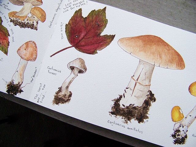 Еще одна причина выехать на природу! Грибы — это огромный простор для работы с текстурами и цветом, а уж какие причудливые формы попадаются порой. При первой же возможности заготавливайте «грибные» скетчи — зимой будет чем любоваться :)
