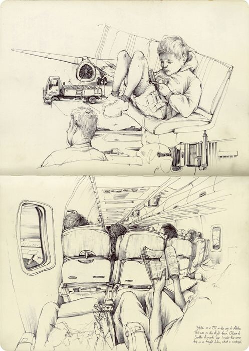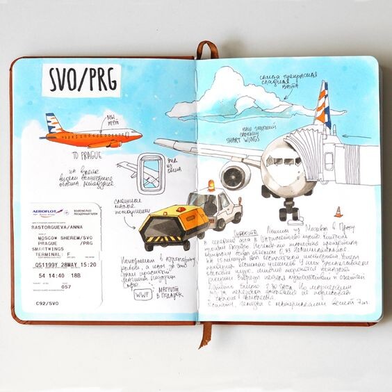 Пусть ожидание путешествия пройдет увлекательно, ведь в аэропорту и самом самолете столько всего любопытного! Стоит только открыть скетчбук, и приключение начнется еще до взлета.