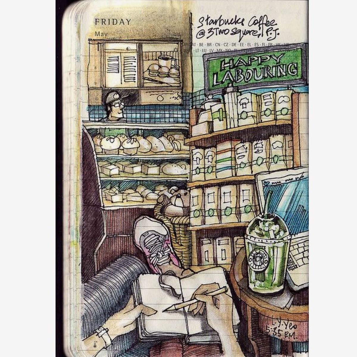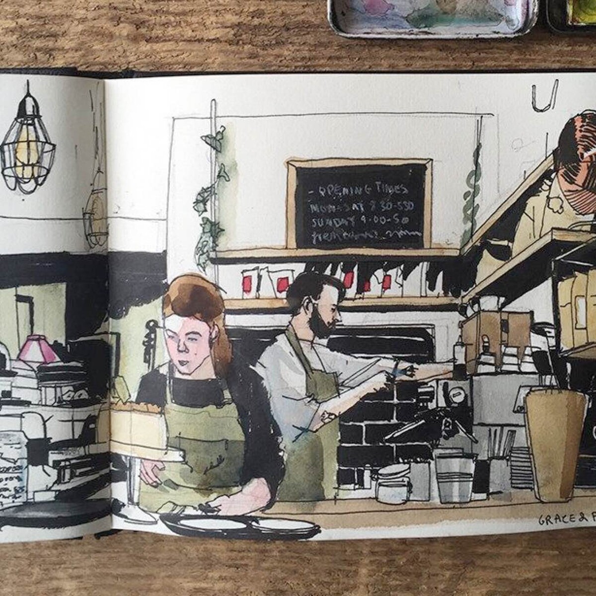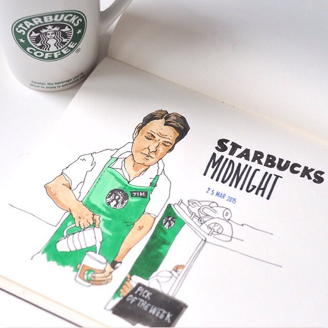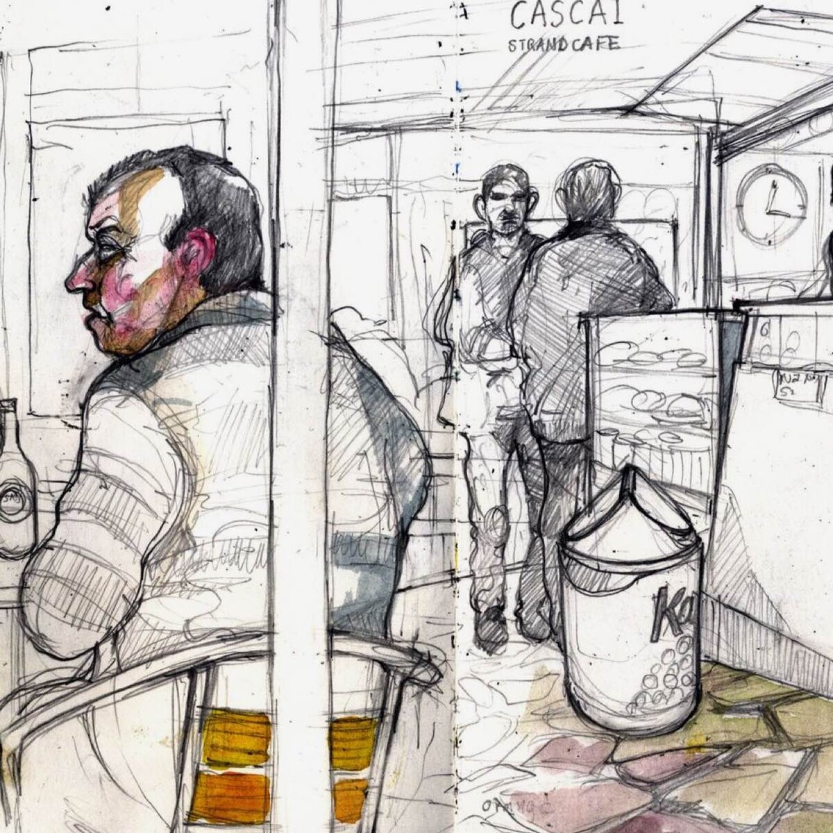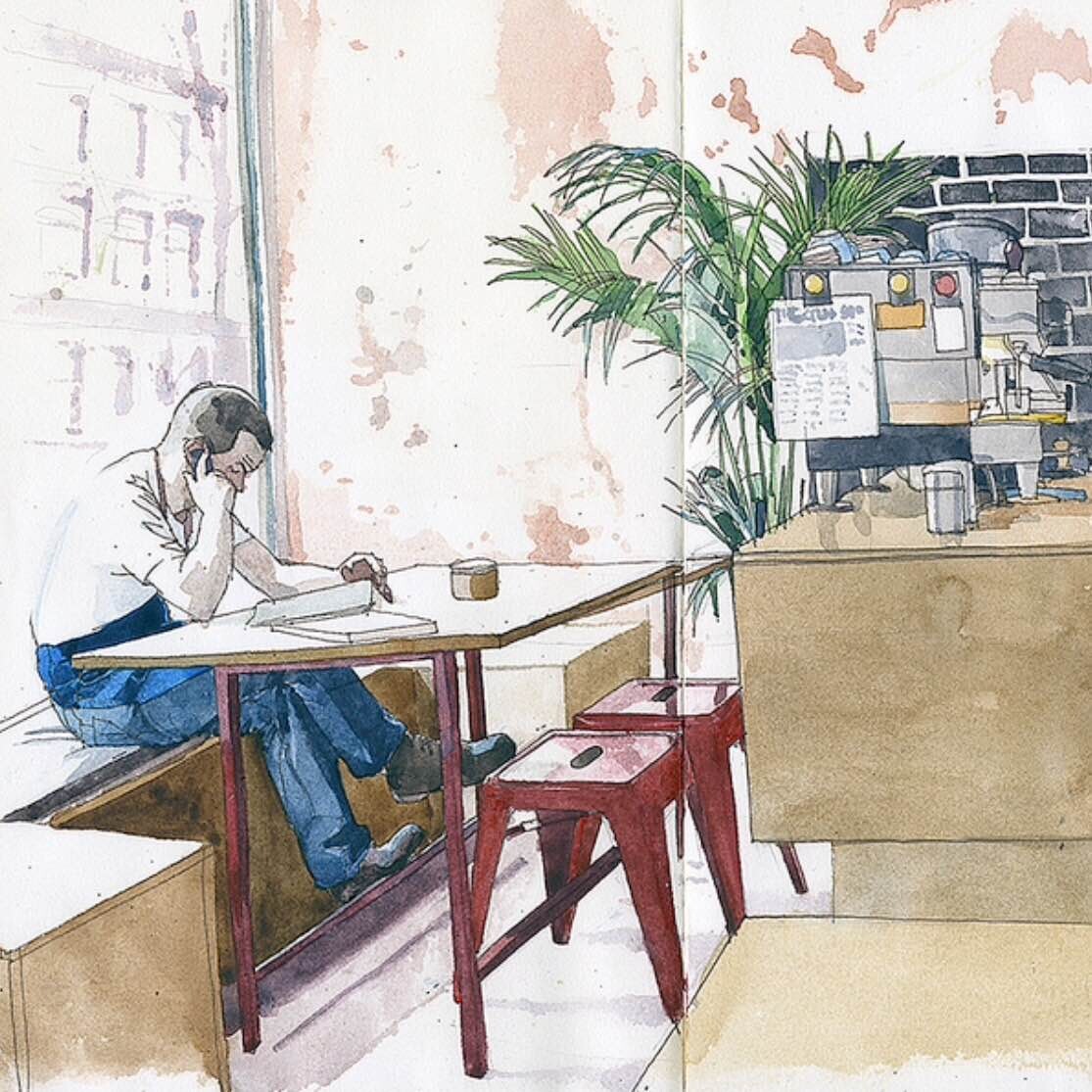 Коротаем время в ожидании заказа: рисуем интерьер, посетителей, вид за окном. А уж когда принесут десерт... Не зря говорят: не нарисовал — не поел :D