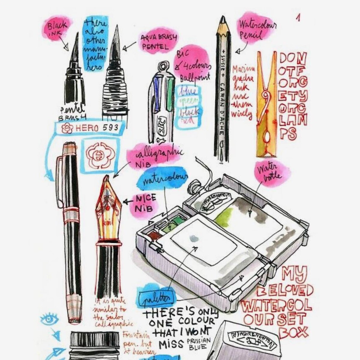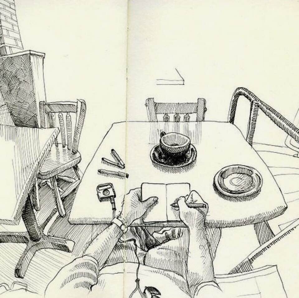 С этого начинают многие скетчеры, в том числе мои ученики. Трибьют своему инвентарю — лучший способ не только вдохновиться на новую зарисовку, но и наконец-то устроить уборку! Раскладываем все по полочкам: скетчбуки — к скетчбукам, маркеры — к маркерам. А в перерывах между разборами шкафов, ящиков, сумок и пеналов — рисуем то, чем обычно рисуем :)