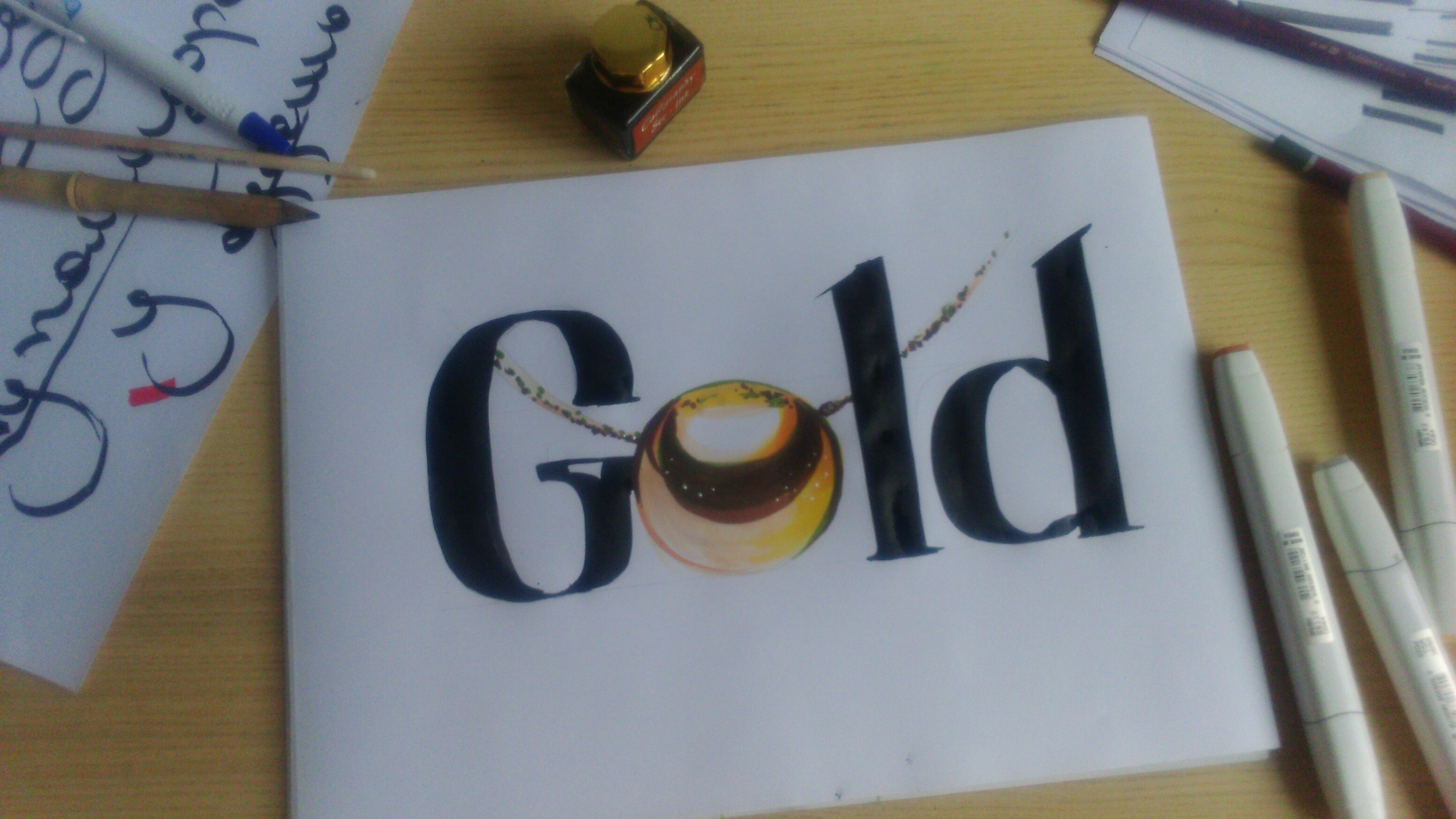 6. Если у вас нет спиртовых маркеров, рисуйте золото другими материалами. Например, можно аккуратно закрашивать нужные фрагменты обычными фломастерами — все равно плавных переходов тут практически нет.