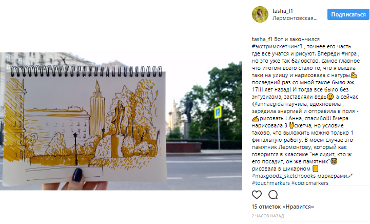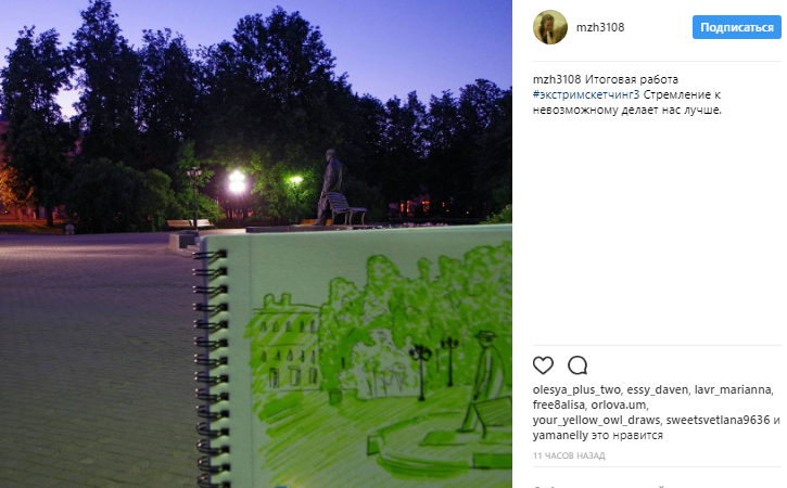 Хватит искать оправдания и жаловаться, что погода не та, вдохновения нет, муж не отпускает из дома, а молоко убежало. Ввязались в игру — играйте! Кто хочет — тот делает, кто не хочет — ноет :) Вы только посмотрите, какими историями про «Экстрим-скетчинг 3» пестрит инстаграм: