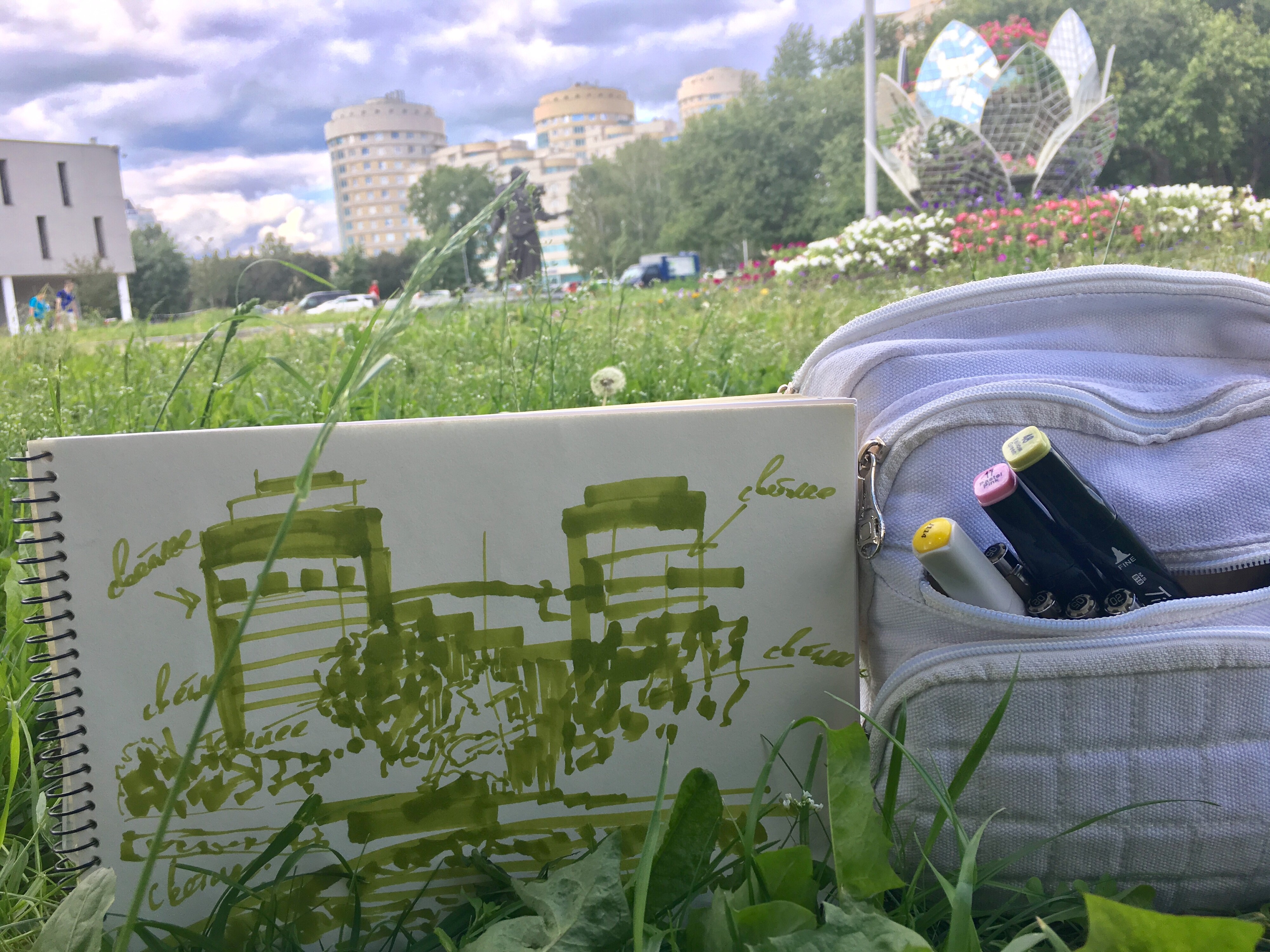 Москву накрыл небывалый шторм. Гроза, дождь, град и прочие неприятности. Поэтому мы очень рады, что основная «пленэрная» часть онлайн-курса «Экстрим-скетчинг 3» вчера подошла к завершению.
