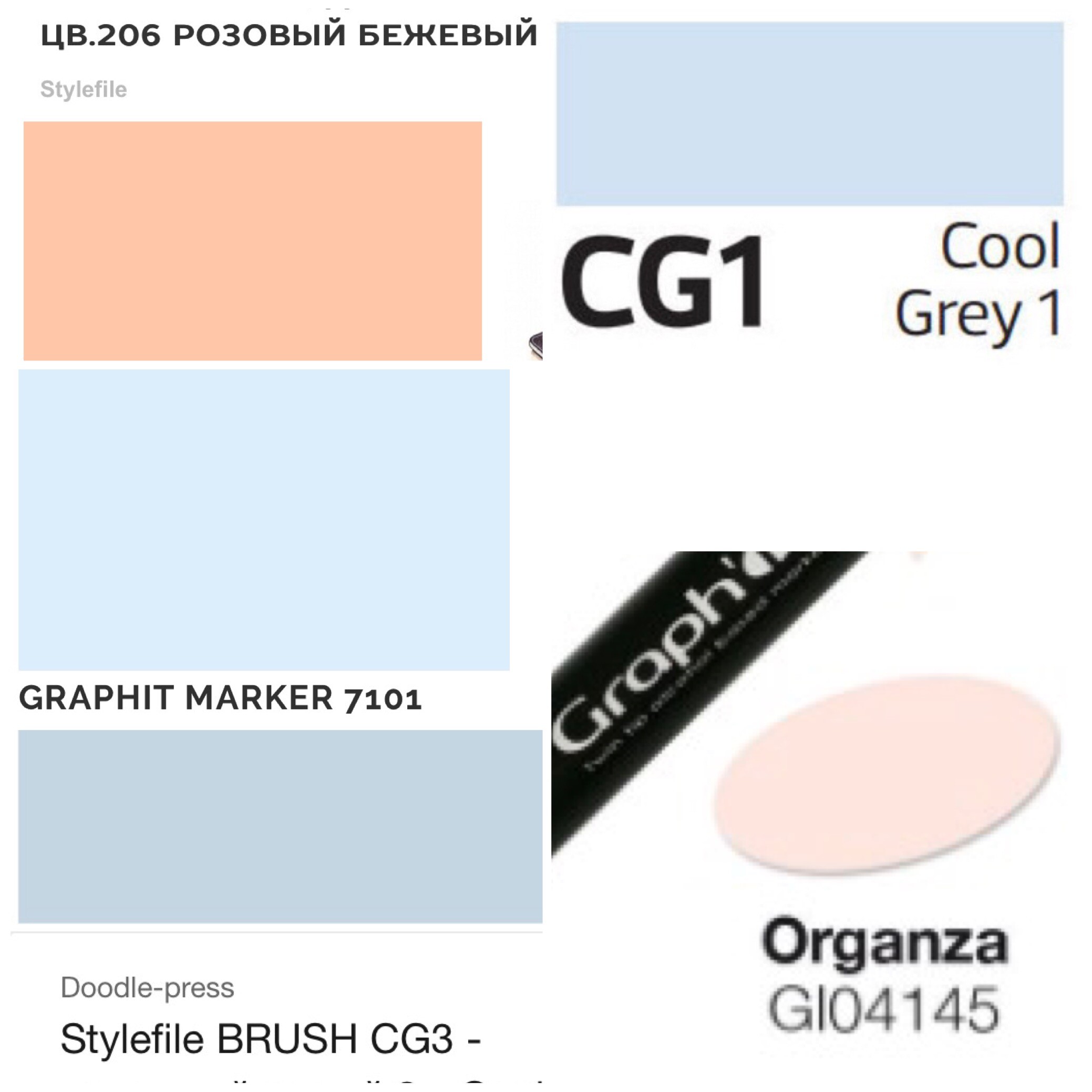 Маркеры: Stylefile Marker 206; Touch Twin CG1 и CG3; Graphit 7101 и 4145.