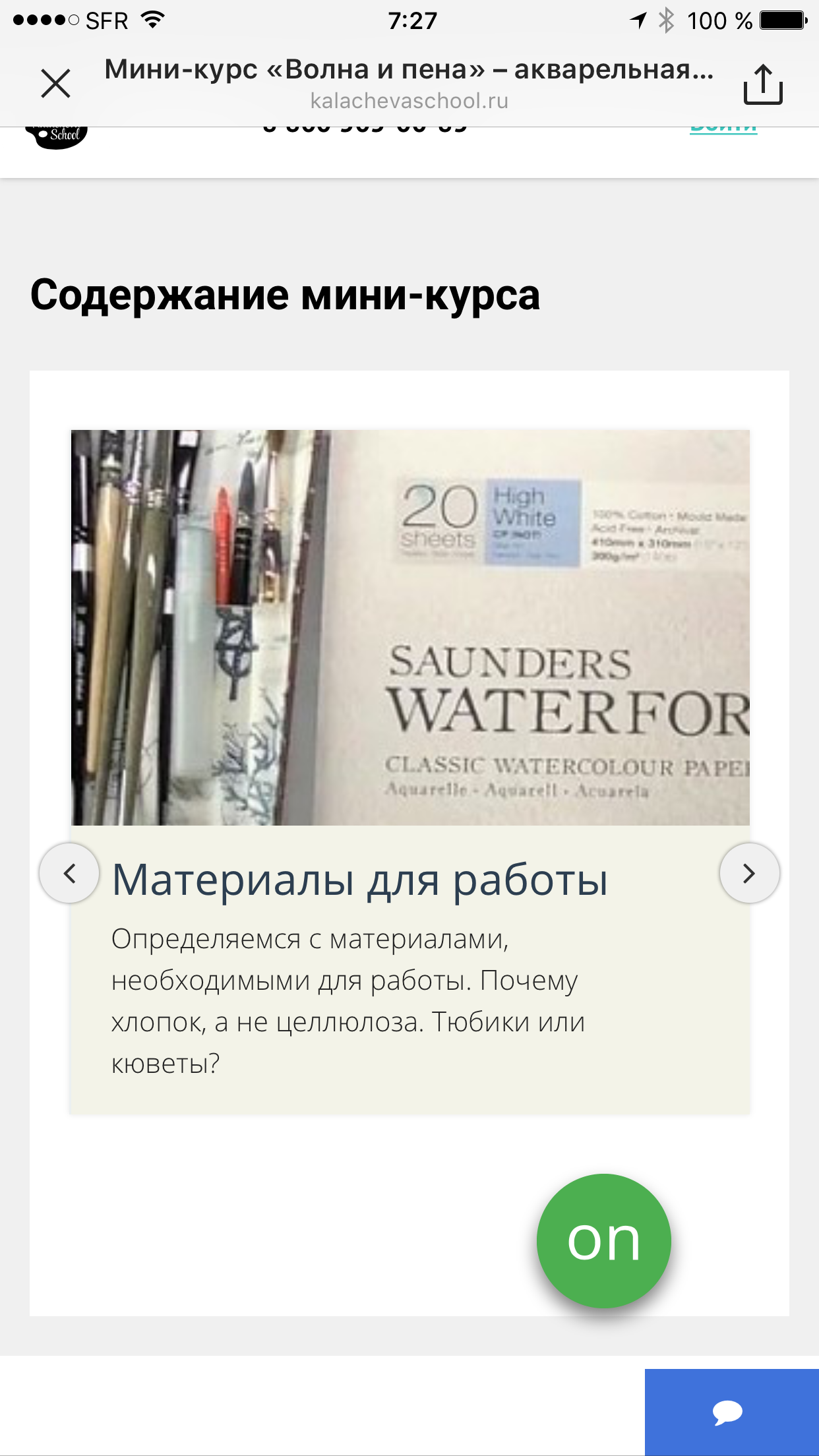 Блок мини-курсов по акварели "Море, волны и отражения" включает в себя три отдельных маленьких курса: "Волна и пена", "Парусная регата" и "Отражения в воде". Внутри каждого из них по 6 видео-уроков. На этой странице выше вы можете кликнуть на картинки-превью и посмотреть программу (то есть содержание) всех трёх курсов. А также там информация о всех необходимых для прохождения курсов, материалах. Всем улыбок и добра! И приятного морского акварельного путешествия! :smile: