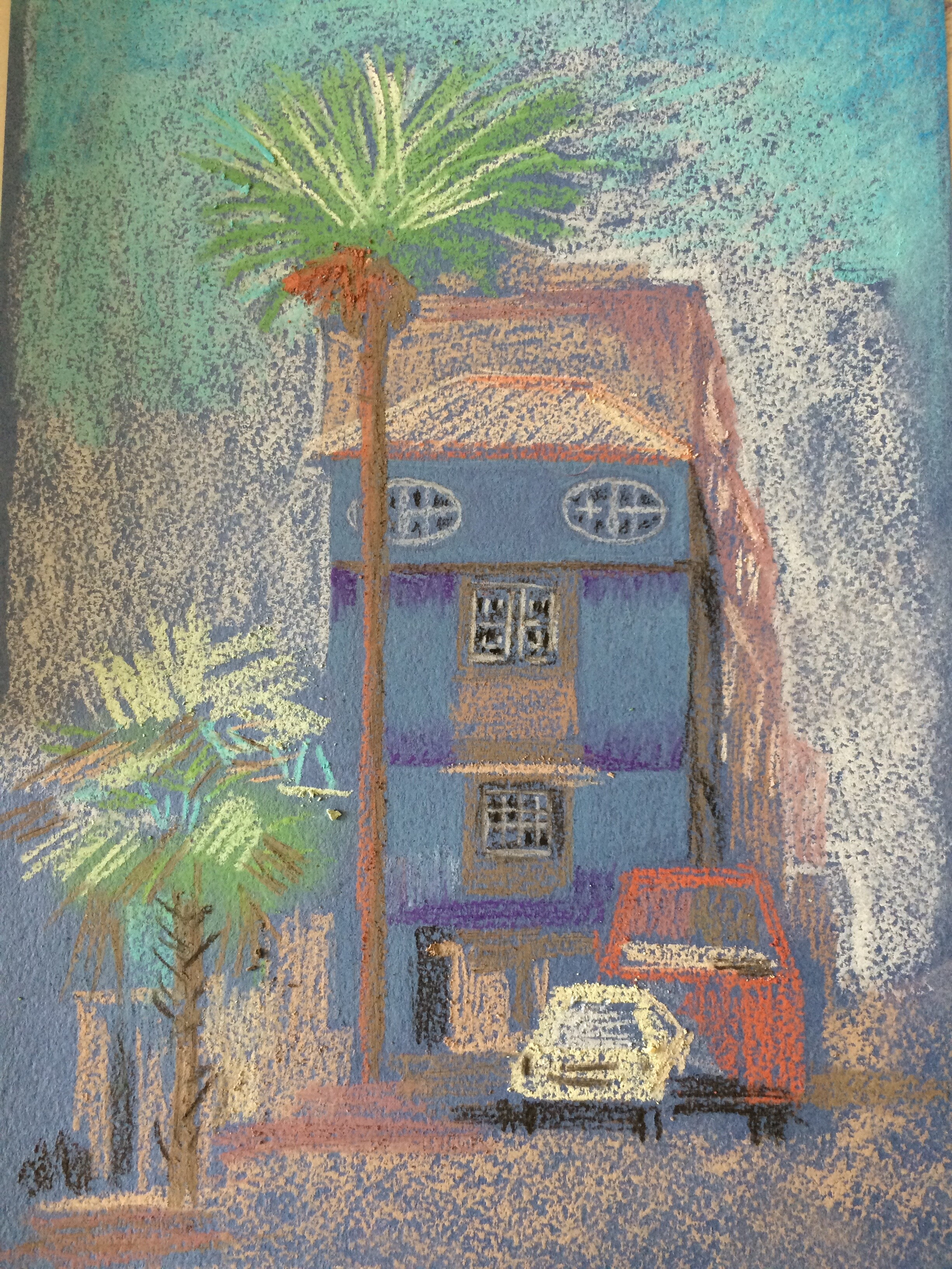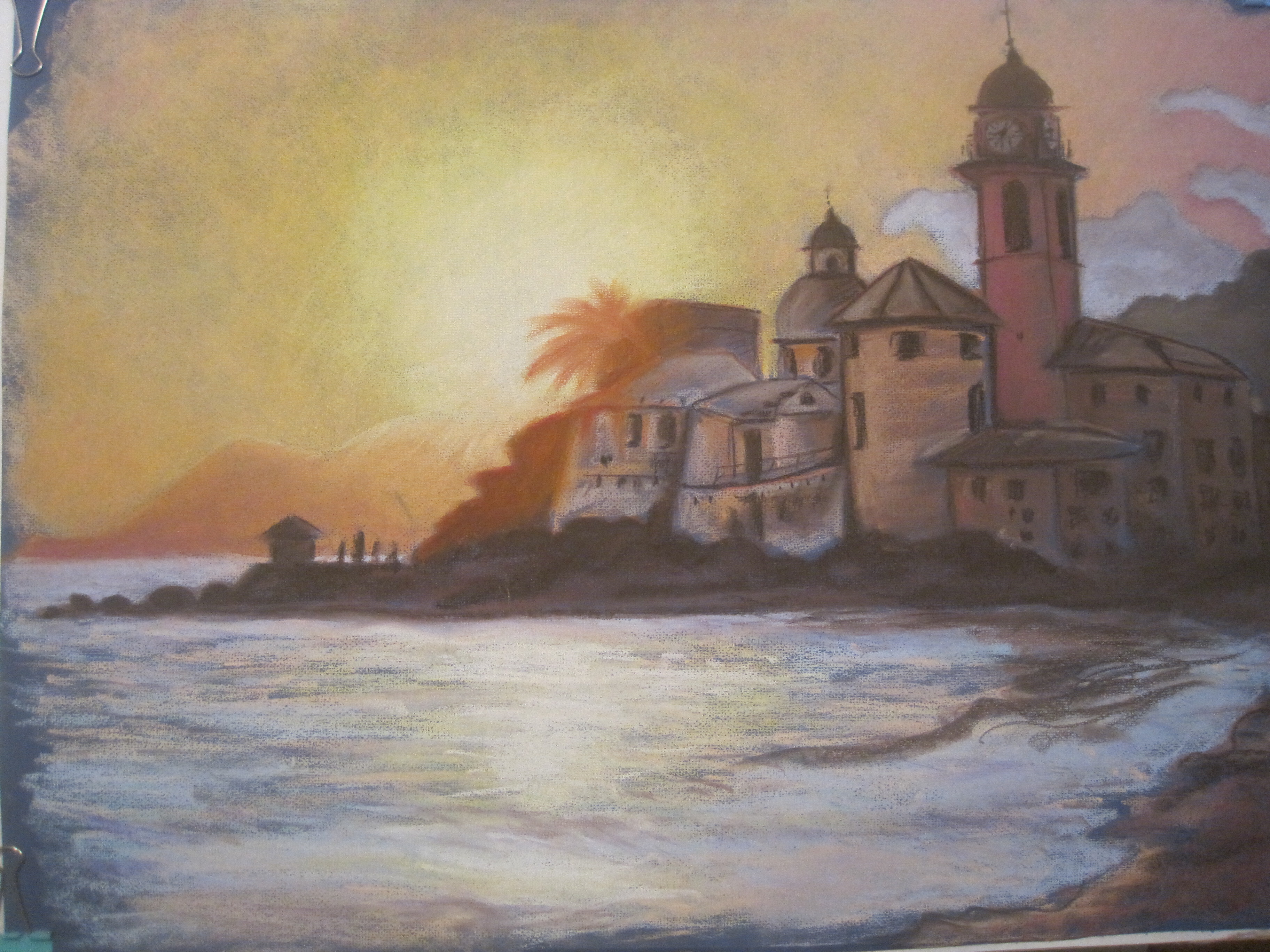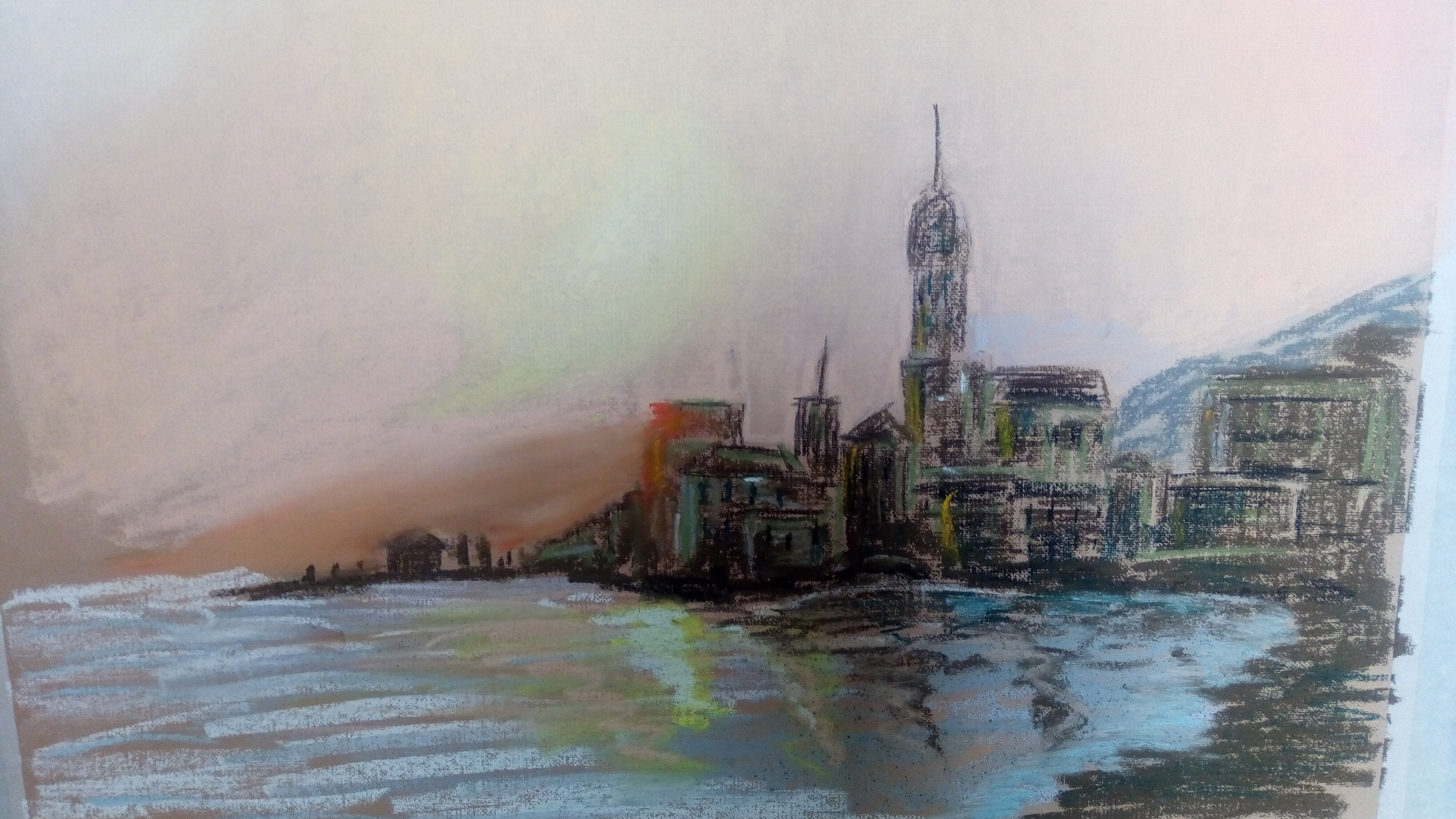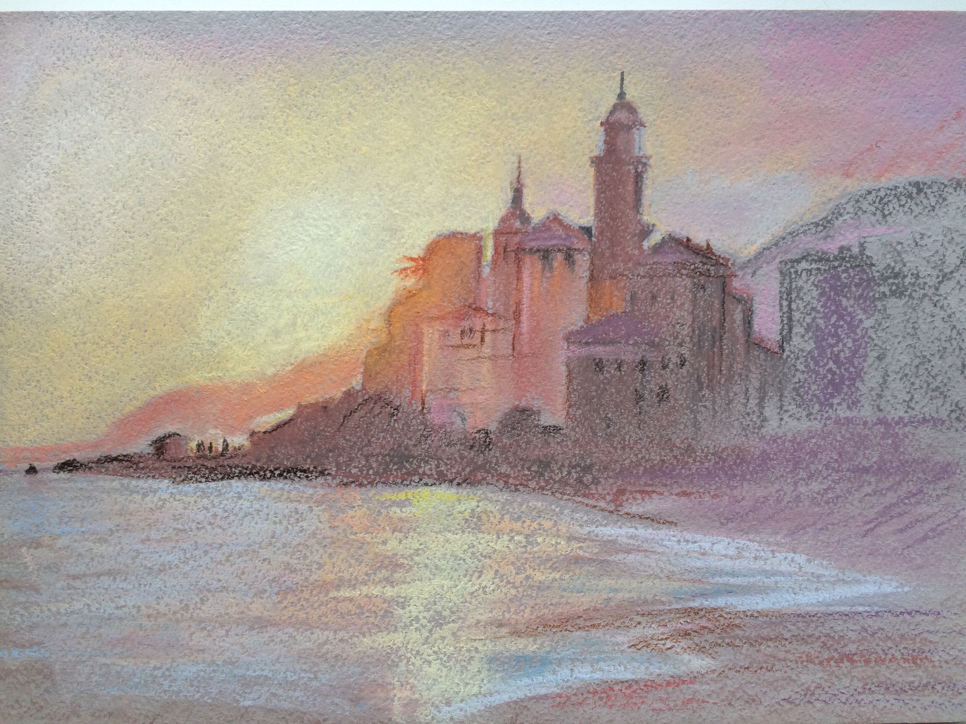 Предлагаю выполнить два пастельных пейзажа по мотивам летних пленэрных путешествий. Будем учиться рисовать атмосферные пейзажи с архитектурой. Выполним два рисунка: в первом передадим колорит местности при ярком дневном свете, а на втором — отработаем пленэрные приемы и техники рисования архитектуры и силуэтов города на фоне закатного неба.