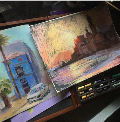 Да-да, надо уже уметь рисовать, владеть несколькими техниками и приемами — только тогда можно рисовать по-настоящему живые картины пастелью с натуры и в походных условиях. Об этом мы обязательно поговорим в прямом эфире.