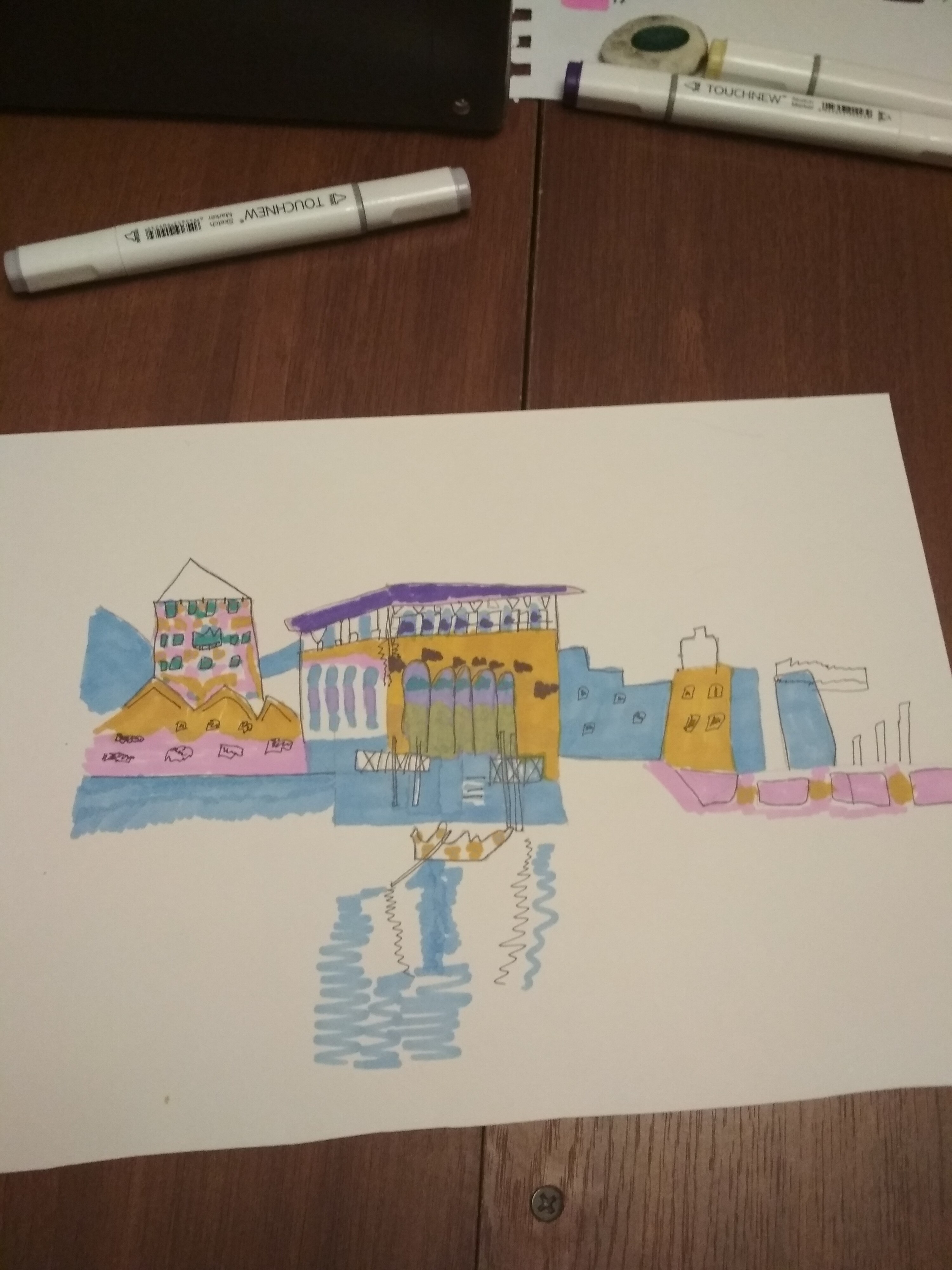 - Рисовать городские скетчи с учетом реальной истории места — пересказывать зарисовкой биографию здания;