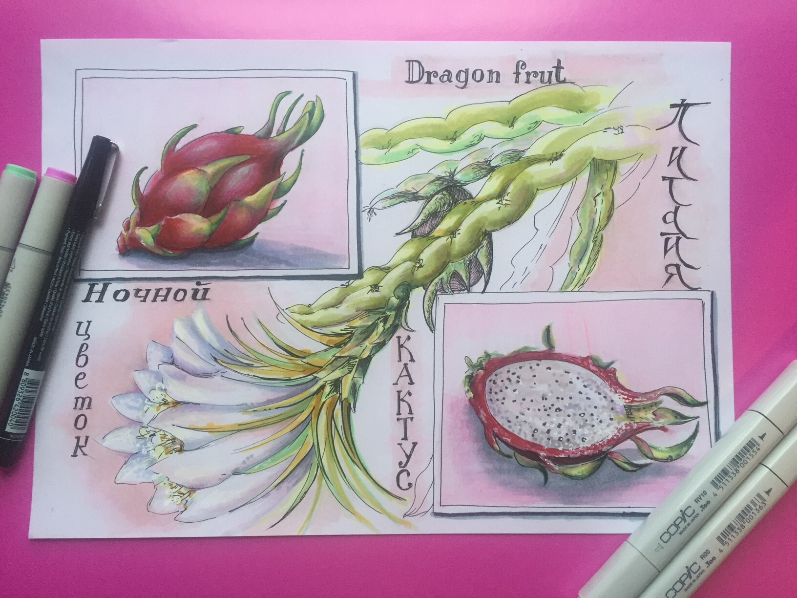 Драгонфрут спиртовыми маркерами