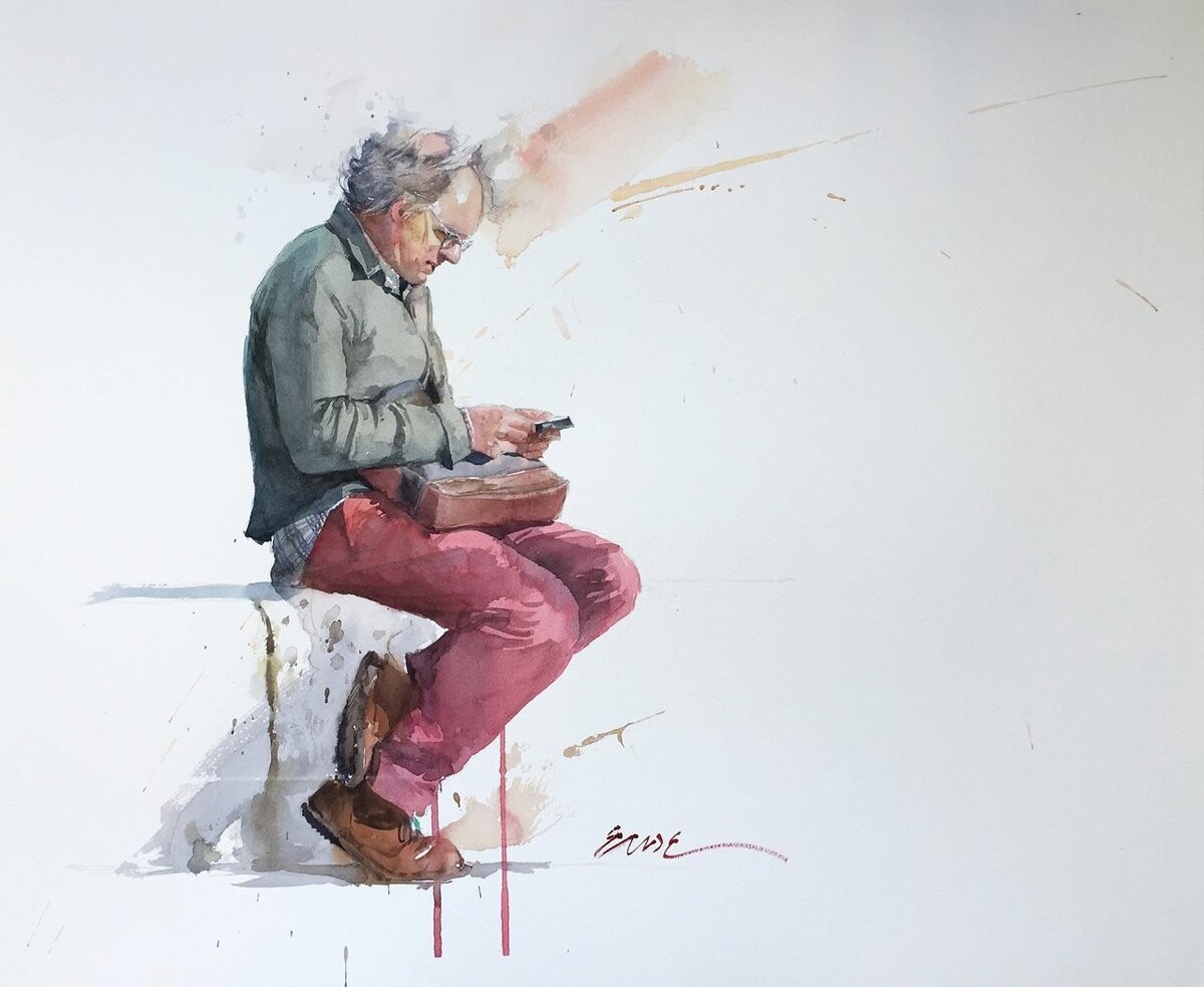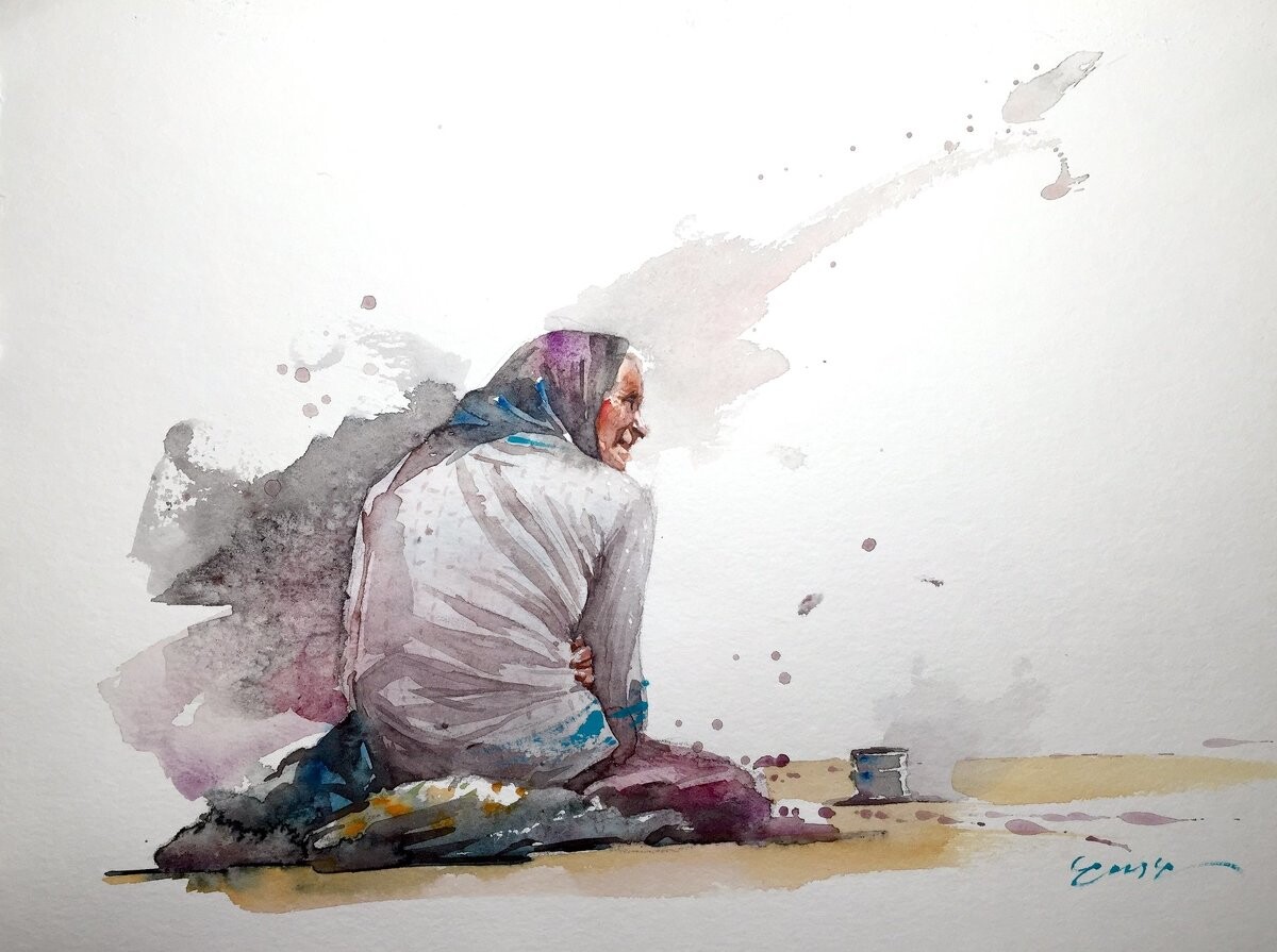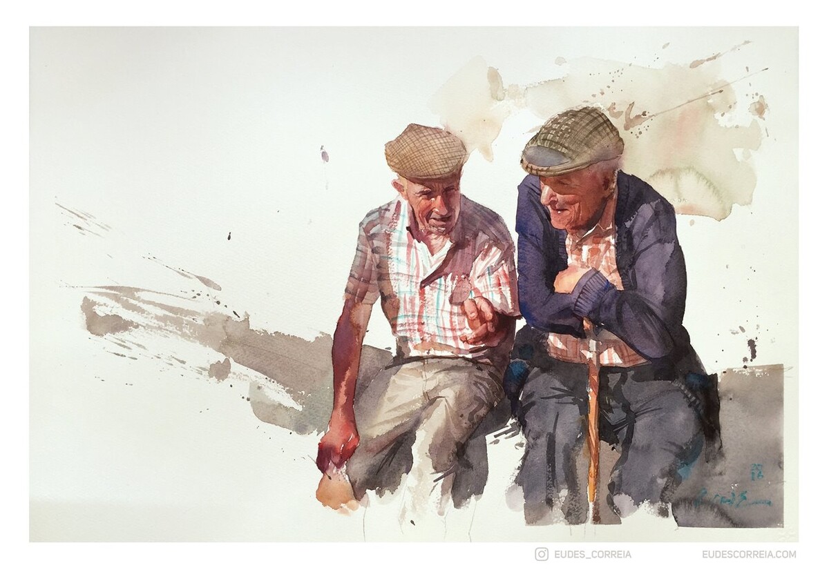 «Я обычно рисую людей с натуры, но иногда и с фотографий. Мое внимание привлекают случайные персонажи: туристы, которых много в Лиссабоне, люди из толпы и бездомные. Для многих это незаметные, невидимые люди. Мы даже не видим, что они есть рядом с нами, — рассказывает Эудис Коррейя о героях своих зарисовок. — Мне нравится своими акварелями рассказывать истории этих людей. Мне интересно додумывать причины, которые привели людей к такой жизни, это возбуждает мой интерес».