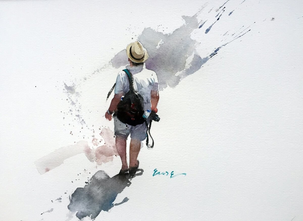 Главные герои акварелей Эудиса — обыкновенные прохожие: туристы и коренные жители, дети и взрослые, мужчины и женщины. Художник метко подмечает характеры и с легкостью переносит на бумагу.