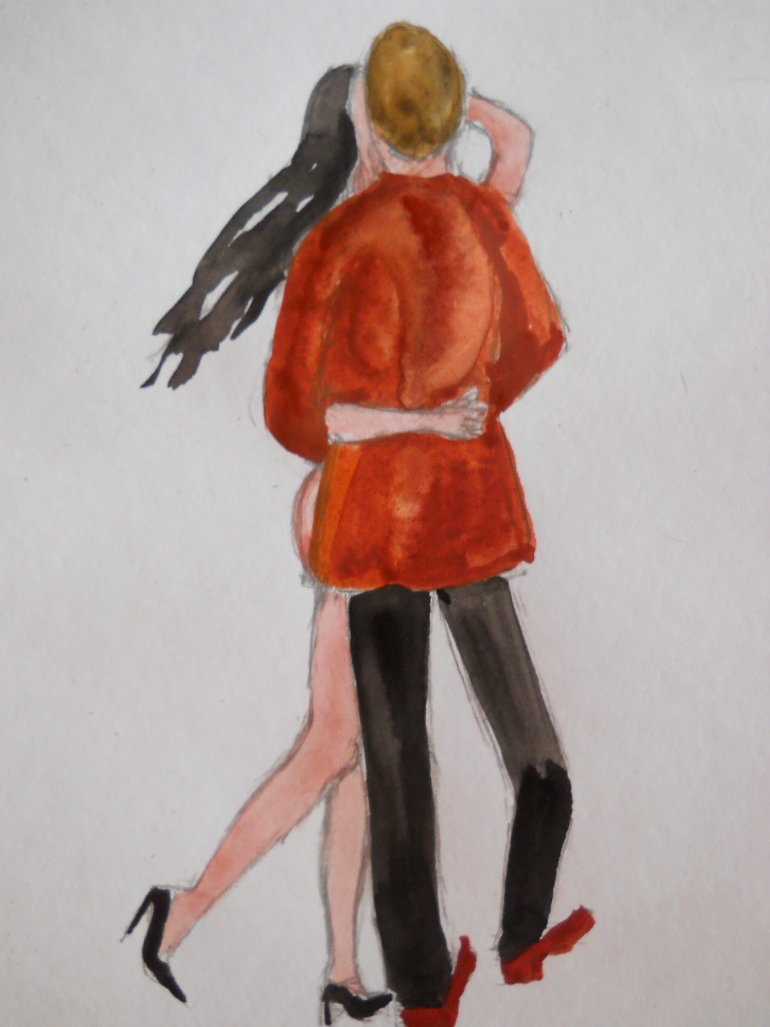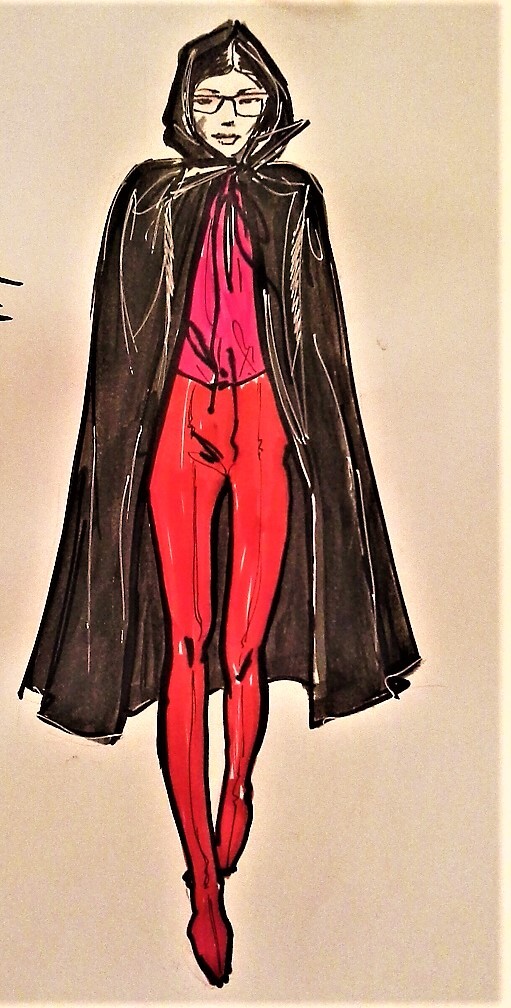 Силуэты обводим красным. Глаза либо закрываем, либо надеваем очки для отстраненности.