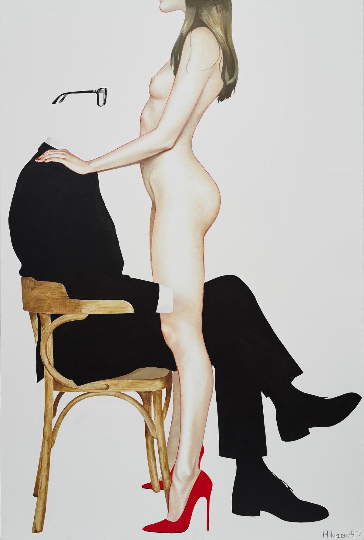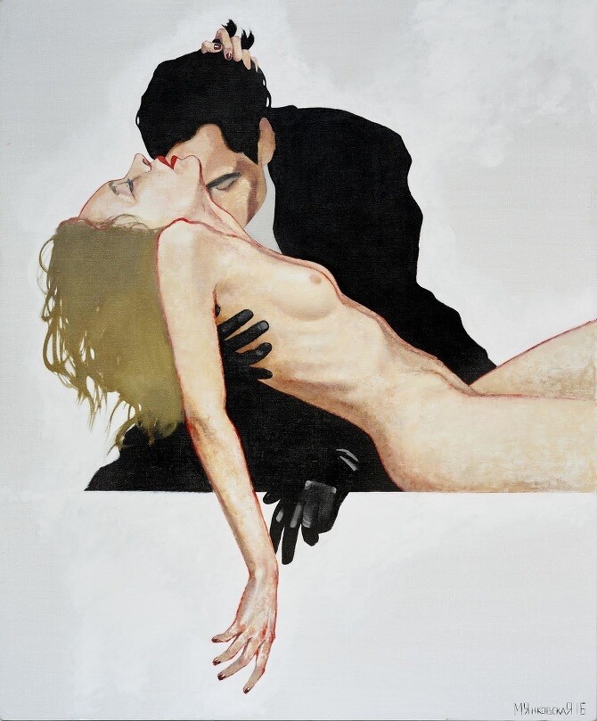 Читать дальшеЖаль, что кто-то увидел только голые телеса и секс. На самом деле работы интереснее и глубже, чем просто обнаженка. Ну, я надеюсь, по крайней мере. Тут есть, о чем задуматься, как-то интерпретировать какие-то моменты в работе художника. Например, я вижу на некоторых этакого бизнесмэна, который купил себе проститутку, поэтому он с сигаретой и в очках...перед ней ему не нужно быть лучше, он - король жизни, у него есть деньги, и ничего святого (ну почти), он равнодушен, циничен, даже обнаженное женское тело уже не возбуждает. Вероятно, эти работы показывают кусок нашей реальности, далеко не лучший. Да, светлых чувств эти работы не вызывают. Но искусство и не должно всегда вызывать такие чувства и воспитывать лучшее. Иногда оно просто показывает, что есть. А вокруг много всего есть, в том числе и очень много плохого. Кто сказал, что художник показывает и говорит, что так правильно, тут все хорошо? Никто. И цвета на картинах тоже гармонии внутри не вызывают. А отсутствие головы у одного мужчины можно интерпретировать, как отсутствие мозгов. Безмозглый мэн-бизнесмэн) А вот что значит отсутствие рук - загадка..) В общем, любопытно...