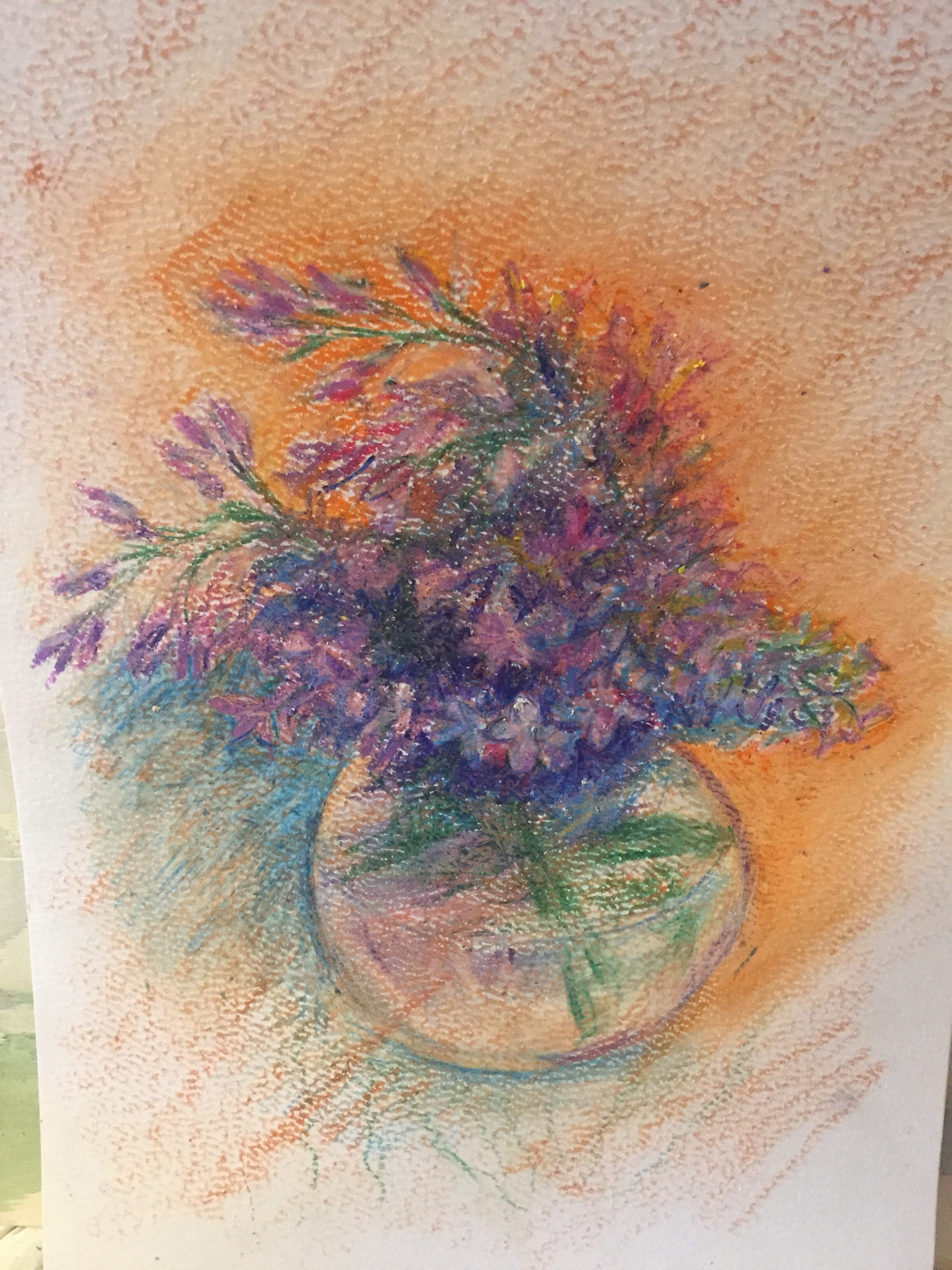 Выполним одну полноценную работу: изобразим цветочный натюрморт в фиолетово-сиреневой гамме.