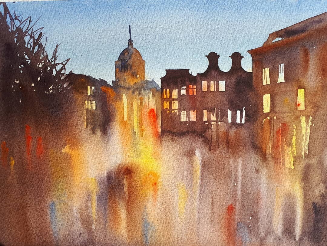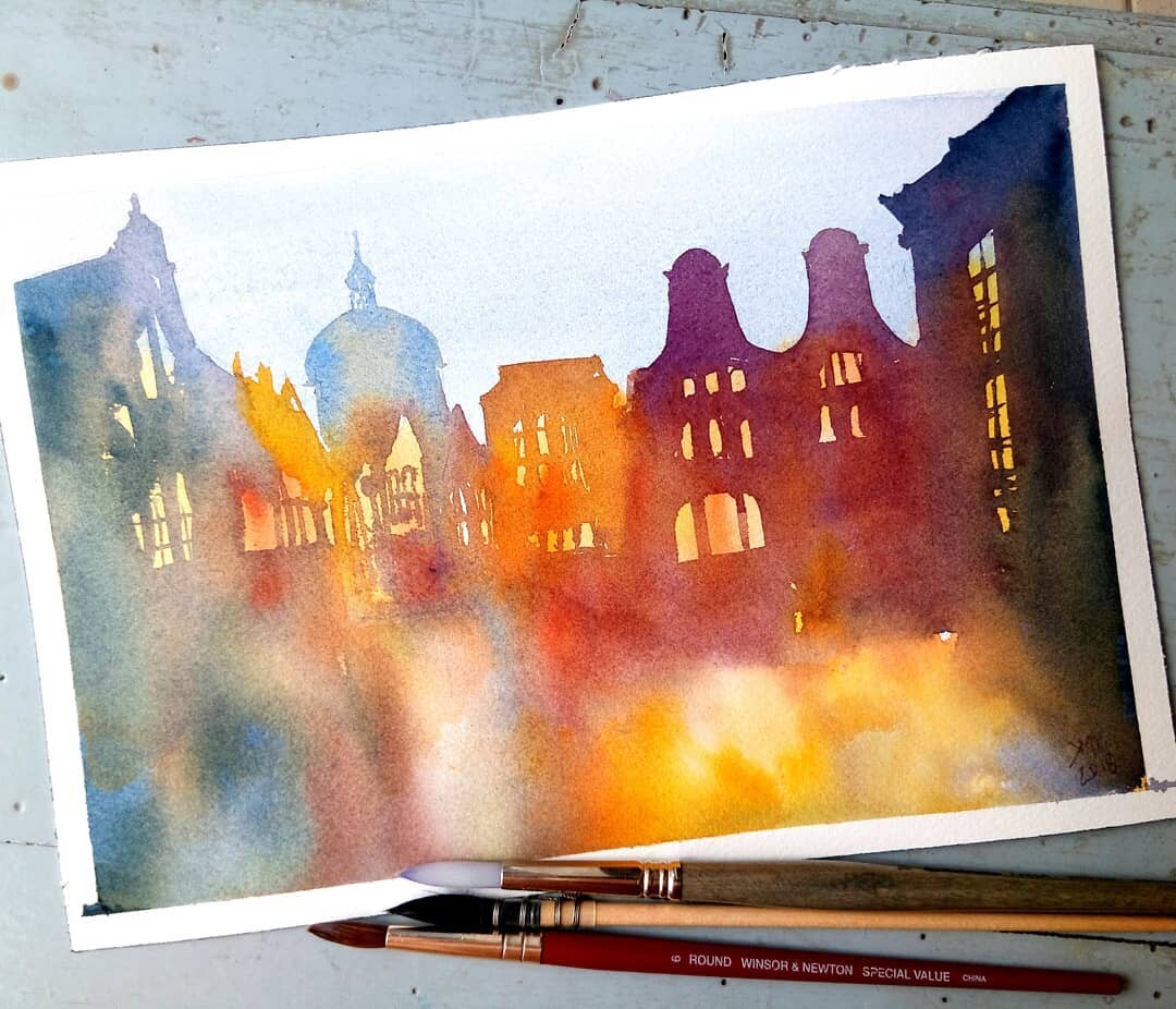 Учитесь соблюдать тональные отношения. Отслеживайте тон неба, тон города и тон воды. Пожалуй, самая частая ошибка: очень темный город, почти черный, он проваливается. С темными оттенками надо быть аккуратнее.