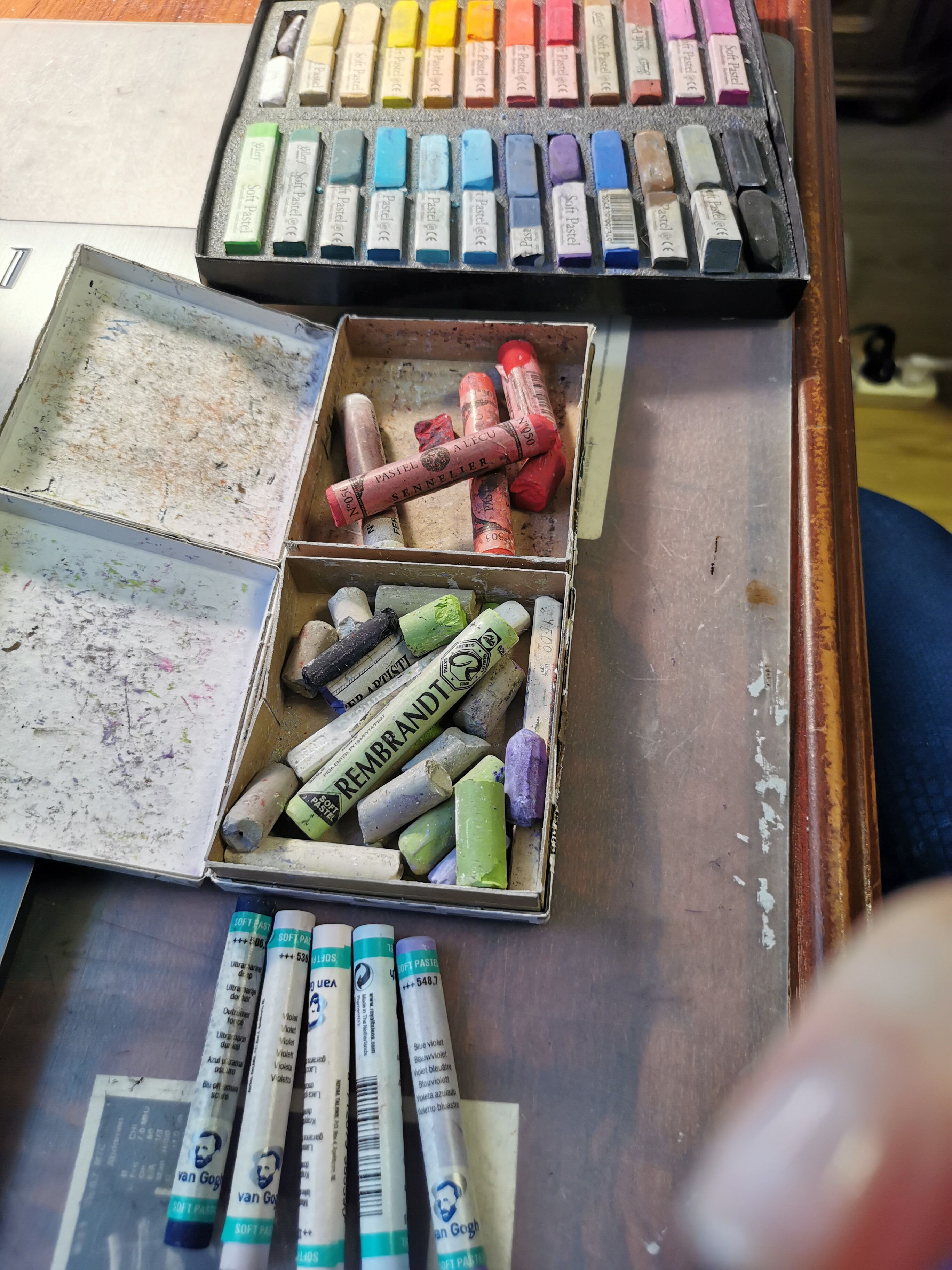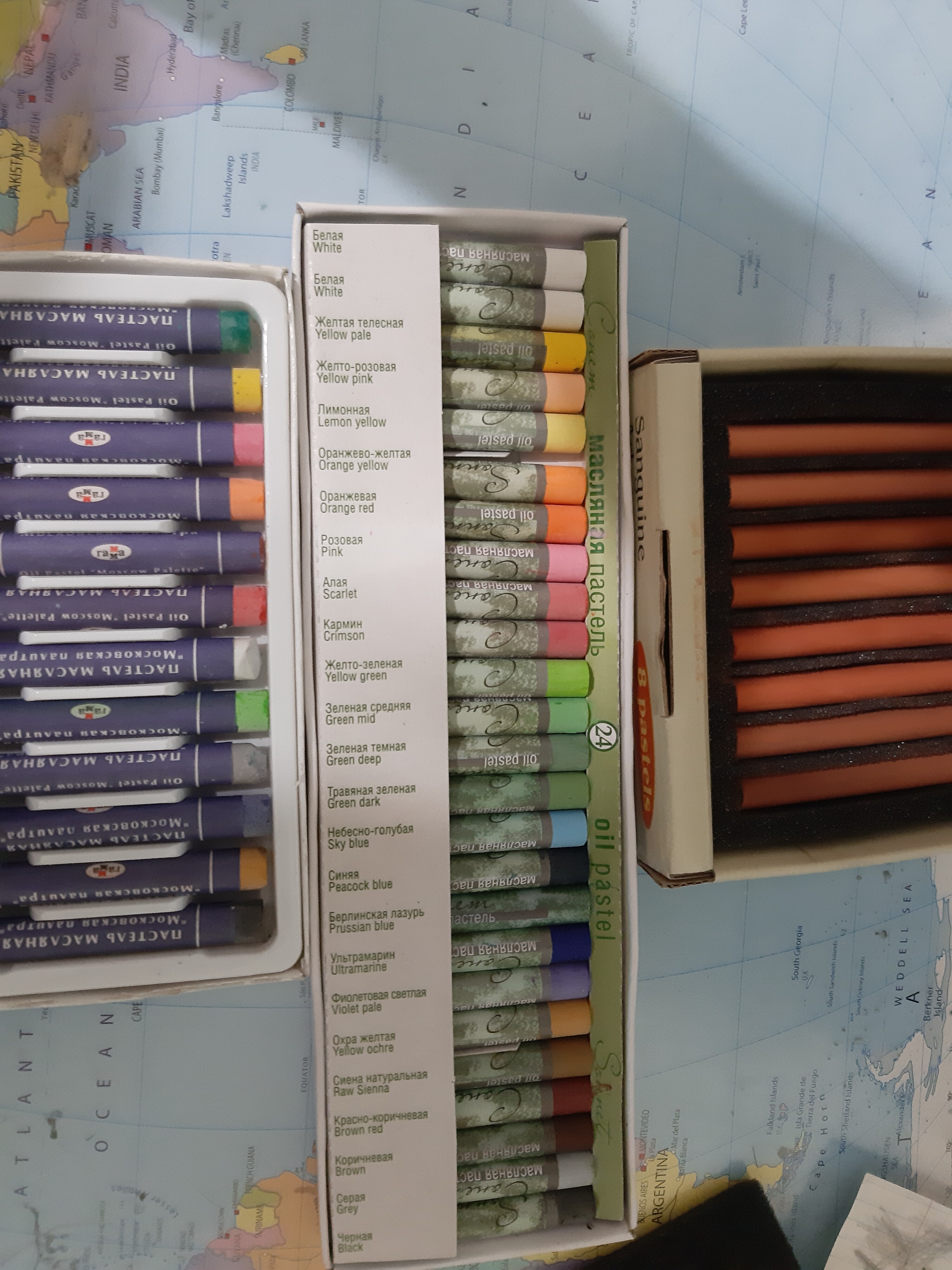 0Из брендов, которые присутствуют в данном обзоре, у меня только Рембрандт, недавно приобрела, - уж очень хотела добавить себе красивые красно-фиолетовые и приятные пыльно-розовые оттенки. Постоянно пользуюсь мягкой пастелью Мунгё - она, действительно, очень мягкая, ложится жирненькими мазками, растушевывать одно удовольствие, но последнее время хочется более твердую пастель. Есть масляная пастель этого же бренда, пока только пробую ею рисовать. Еще иногда пользуюсь пастелью от Faber-Castell - немного тверже, чем Мунгё. Квадратные корейские мелки примерно той же твердости, что фаберы. А Рембрандт еще тверже, значительно.