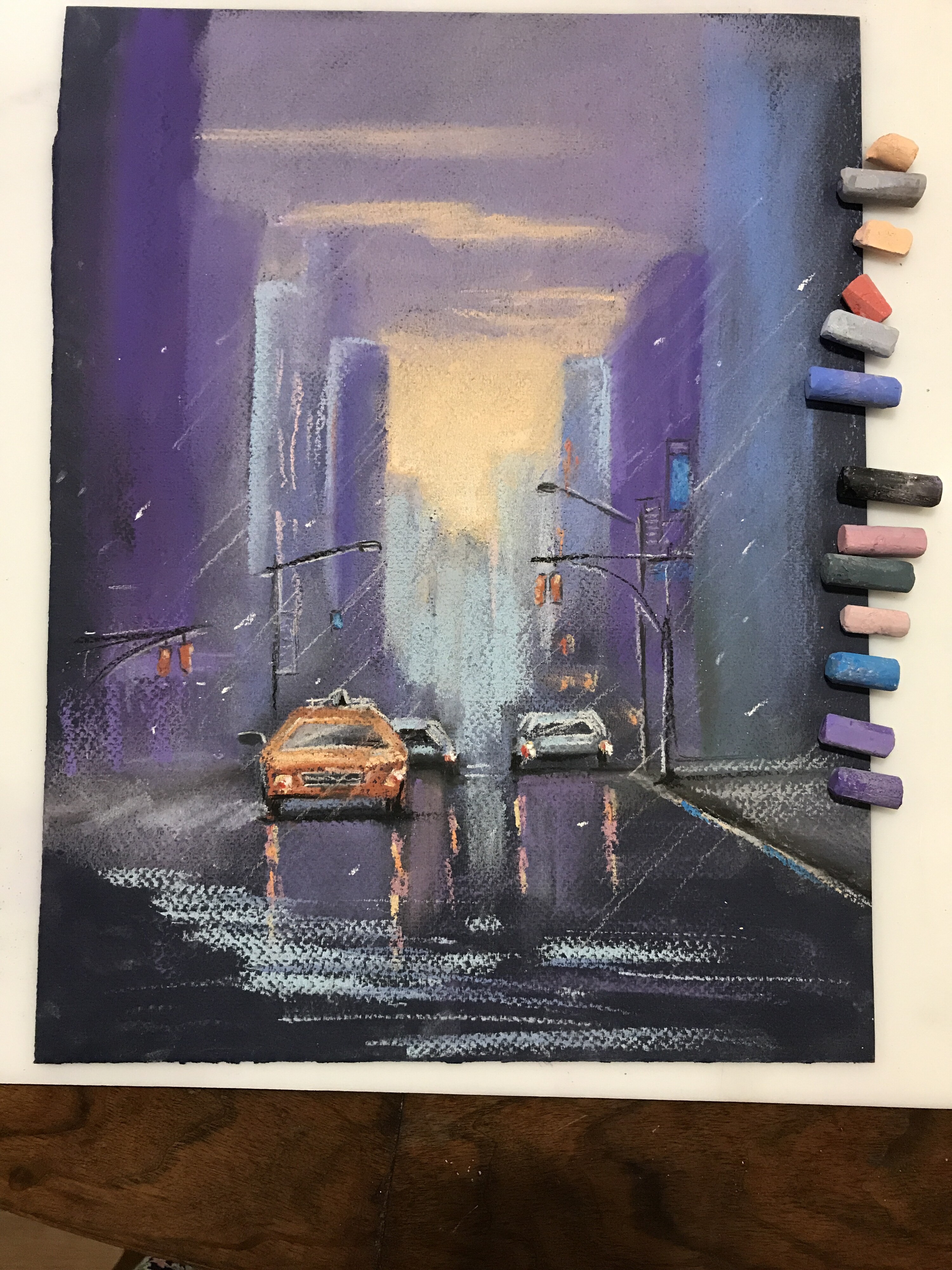 - Набор мягкой сухой пастели профессиональной серии, например, kooh-i-noor soft или extra soft; peroci; rembrandt; sennelier; schmincke (идеально, если есть набор «грозовое небо» от mount vision). Выкраска необходимых мелков приведена ниже.
