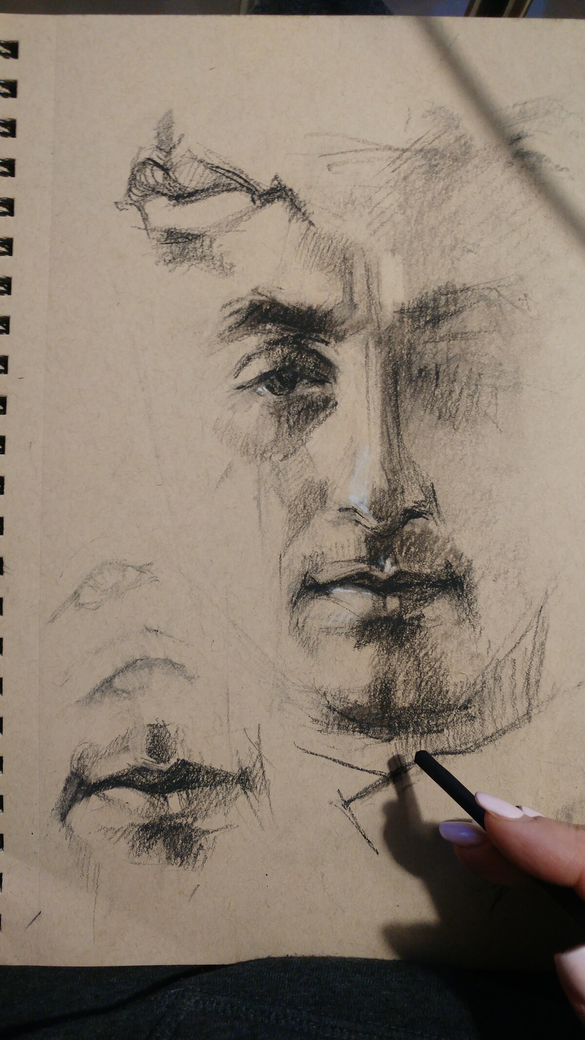 Нашла вдохновляющий ракурс, где виден идеальный переход от лба к затылку, изящная линия носа, точеные черты лица. Это «вкусная» фактура для любого художника, очень нравится такое рисовать.