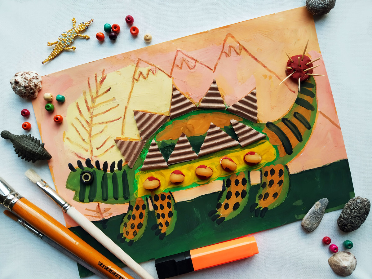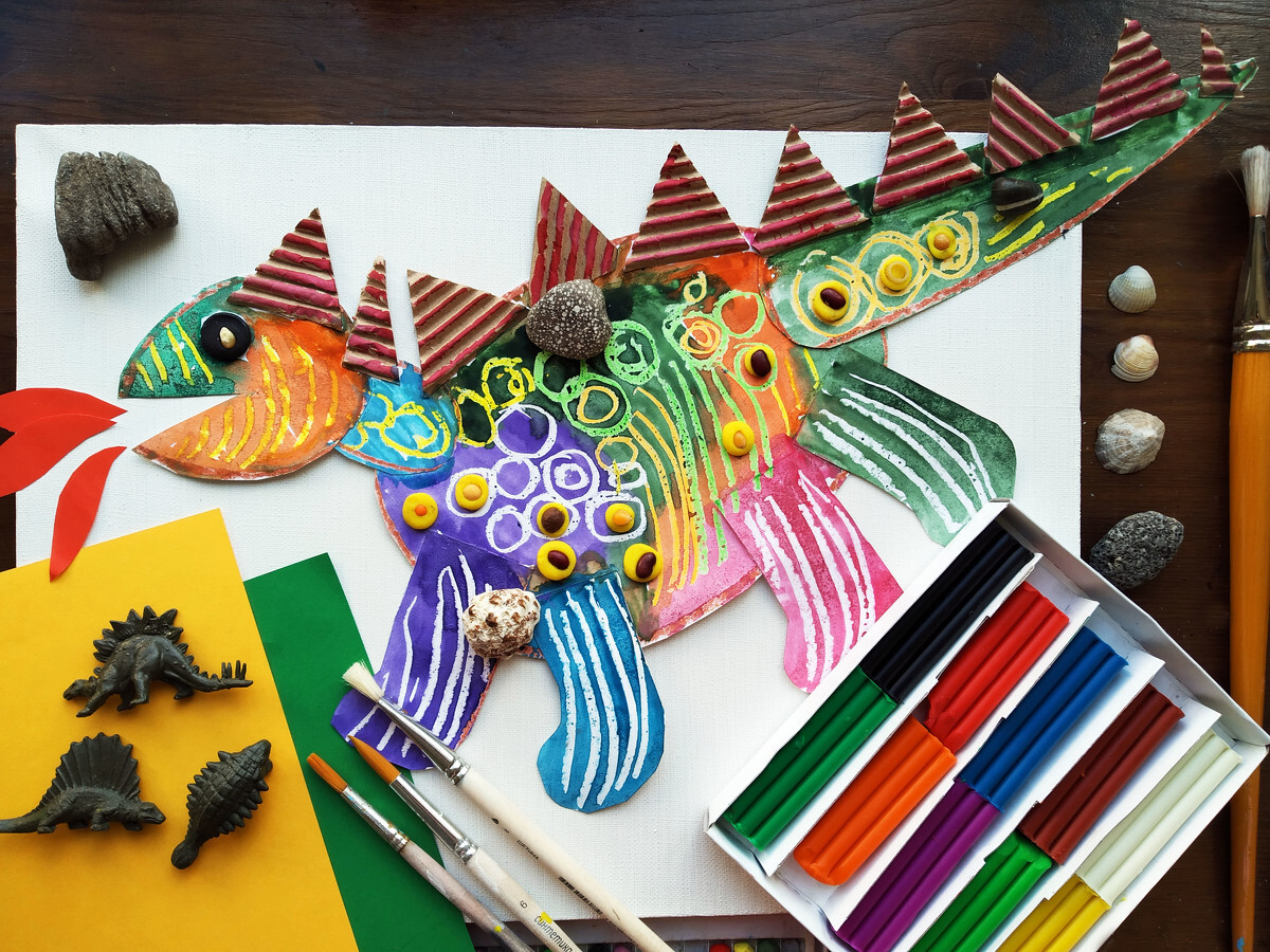 Страшный дракон с острой чешуей из объемно наклеенного картона или нежные цветы, появляющиеся из акварельных разводов и брызг. Робот-помощник из болтиков и гаек или матрешка с бусами из баранок. С таким подходом у ребенка появляется азарт и желание придумывать по-своему, использовать необычное или вырезать из бумаги лучше, чем ты делал это вчера.