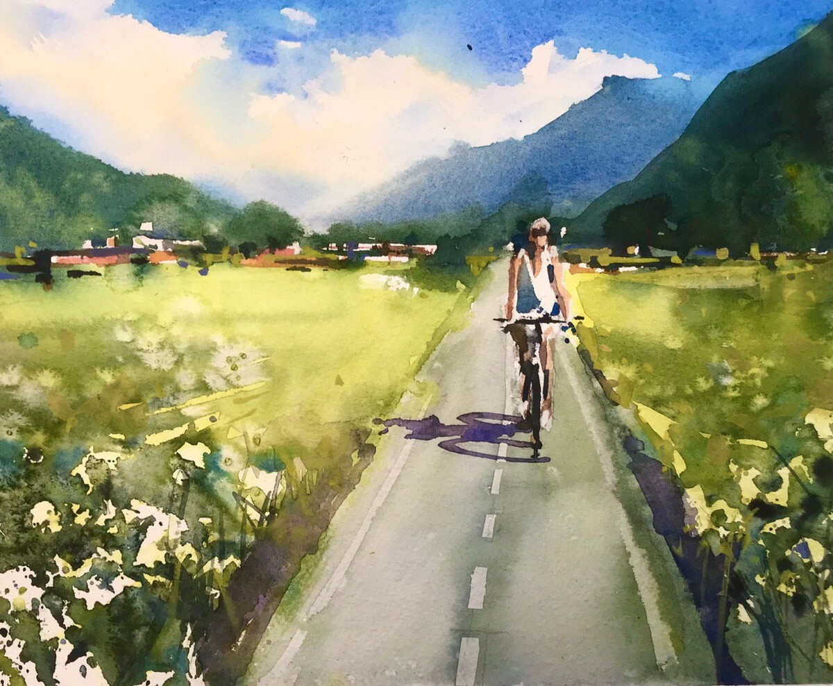 Я учу рисовать через пятно и детей, и взрослых. Неважно, что мы рисуем, главное — уметь распределить светотеневые и цветовые пятна в нашем изображении. Обычно нас композиционно притягивает что-то связанное с этими пятнами, мы просто не всегда отдаем себе об этом отчет. В каждом моем уроке мы обязательно делаем тоновой эскиз — учимся перерабатывать референс в язык акварели. Мы идем от больших пятен и уменьшаем, уменьшаем, а когда работаешь по такому принципу вообще неважно, что рисовать: мотоцикл, или здание, или яблоко.