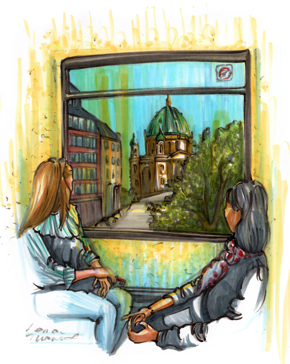 Постепенно пришло понимание, что мои работы могут быть востребованы. Стали появляться частные заказы, меня просили делать зарисовки с экскурсий, были проекты с экологическими компаниями, одной стоматологией. магазинами. А сейчас я делаю уже собственный и теперь самый любимый проект «Берлинские истории».