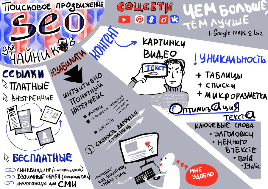 Заинтересовались курсами по визуализации идей? Уроки Анны Цымбал просто отличные. Даже если вы новичок в рисовании, ничего страшного: зарисовывать свои мысли и рассказывать истории в рисунках можно научиться быстро с нуля ;)