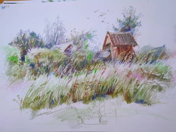 И получали настоящее удовольствие от выхода на пленэр. Анна Эгида умеет мотивировать и вдохновлять. Мотивация работает даже в невыносимую жару и духоту (сколько человек писали, что выходят рисовать финальную работу на улицу в 5 утра... ого!).