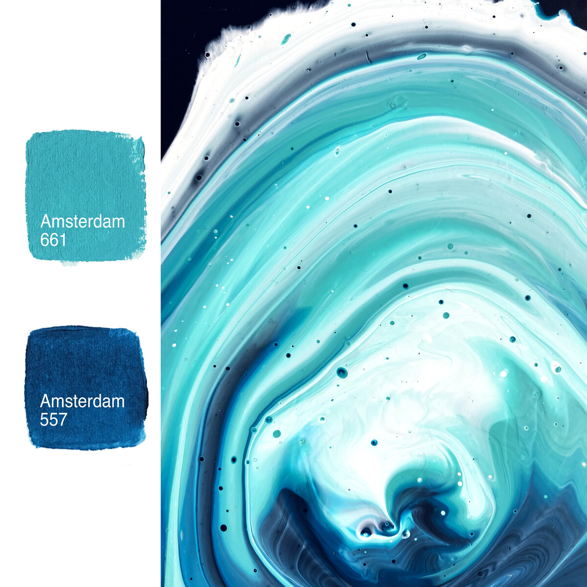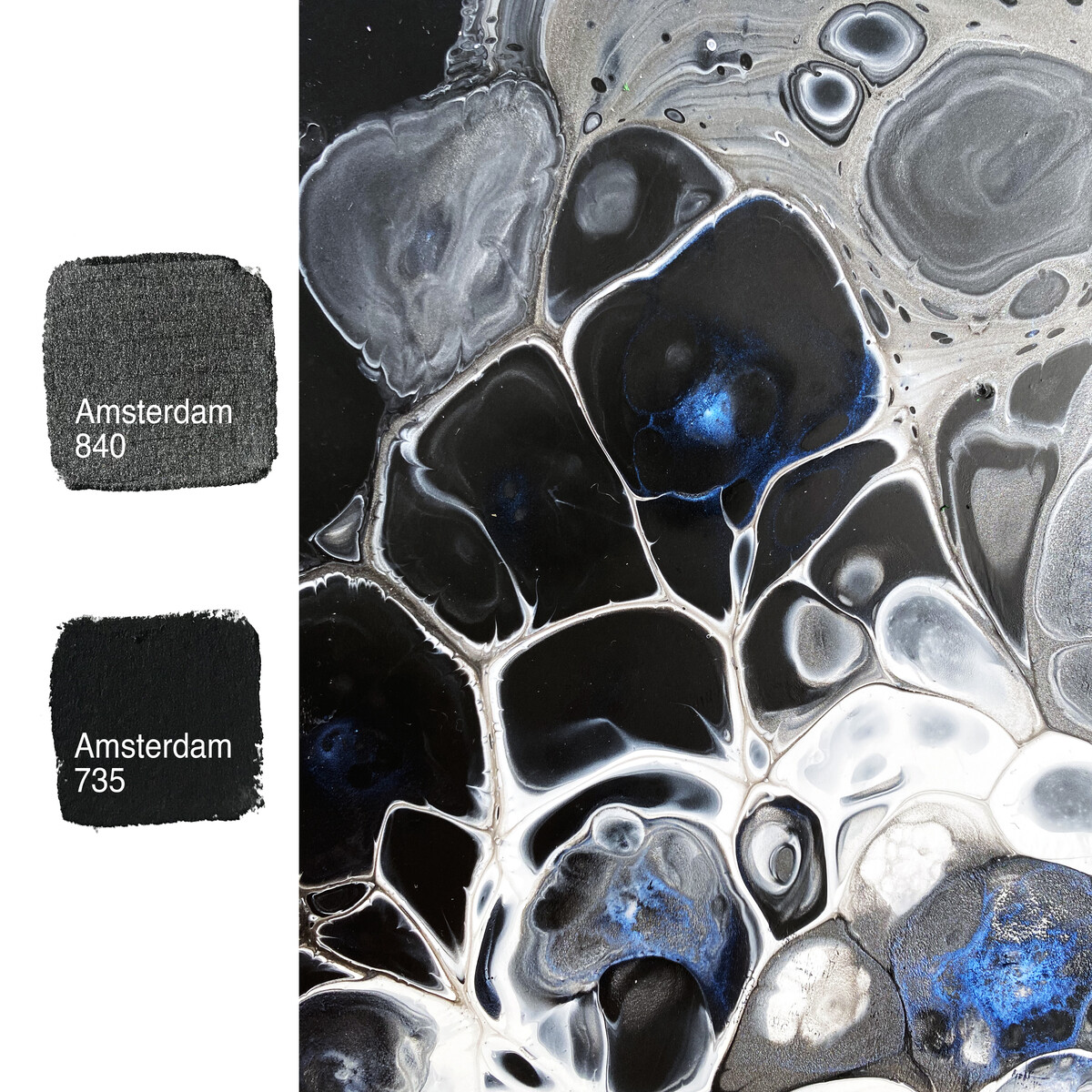 В последнем уроке мы будем работать с медиумом Amsterdam Pouring Medium 014 и акриловыми чернилами Amsterdam Acrylic Ink Pearl Blue 820