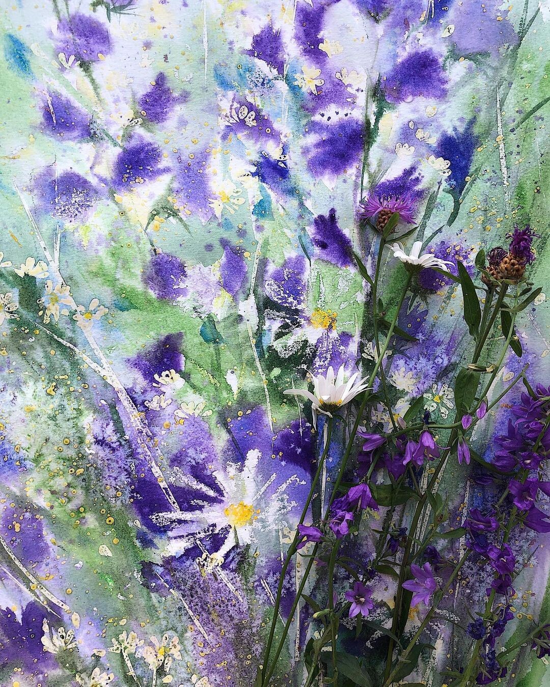 - Замиксуем классические приёмы ботанической иллюстрации с техникой а-ля прима и растеканием, чтобы рисовать цветы в увеличенном масштабе.
