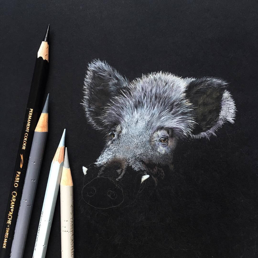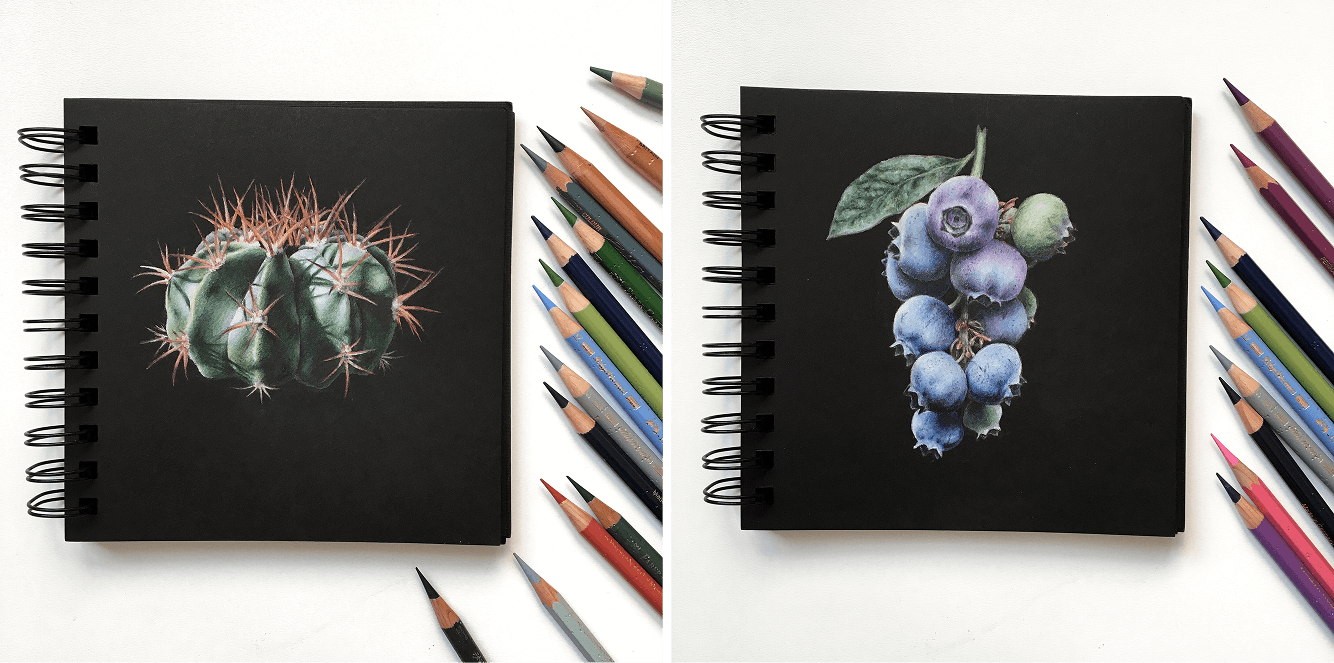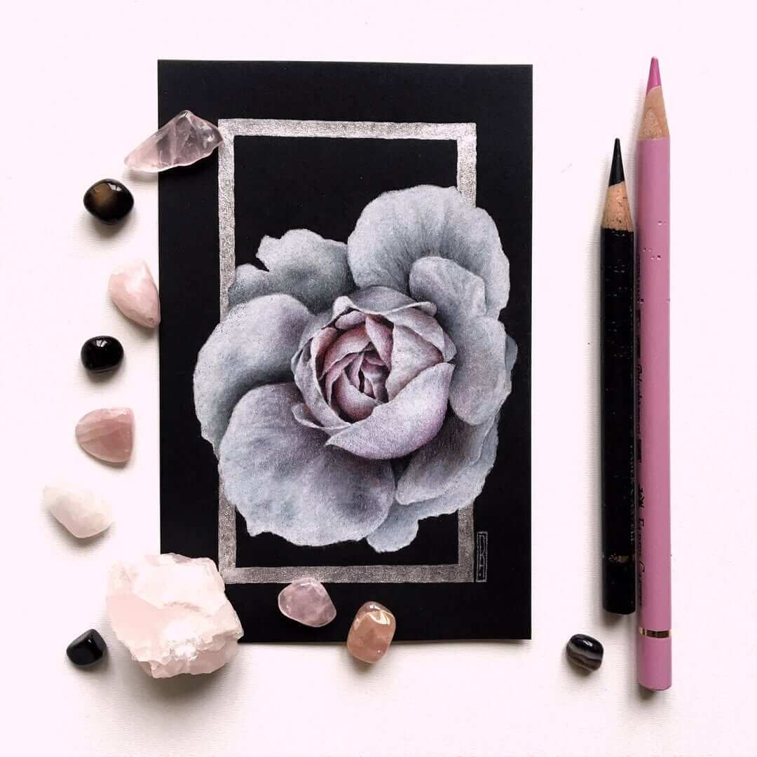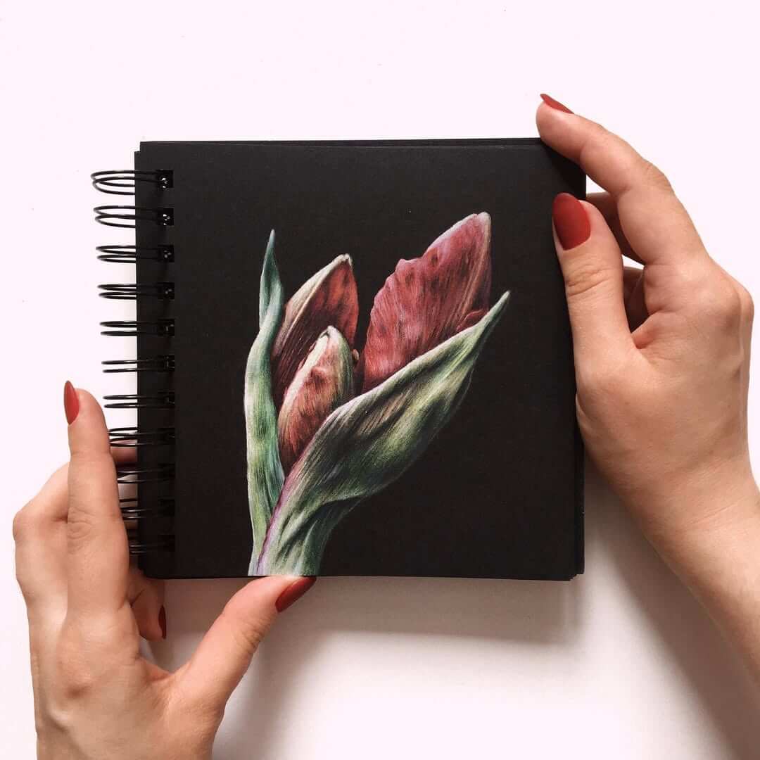 Я долго исследовала секреты яркости карандашей, искала нужные приёмы и особые эффекты. Методом проб и ошибок пришла к своей авторской технике — работе цветными карандашами на чёрной бумаге.
