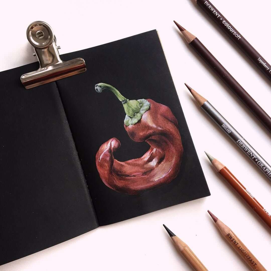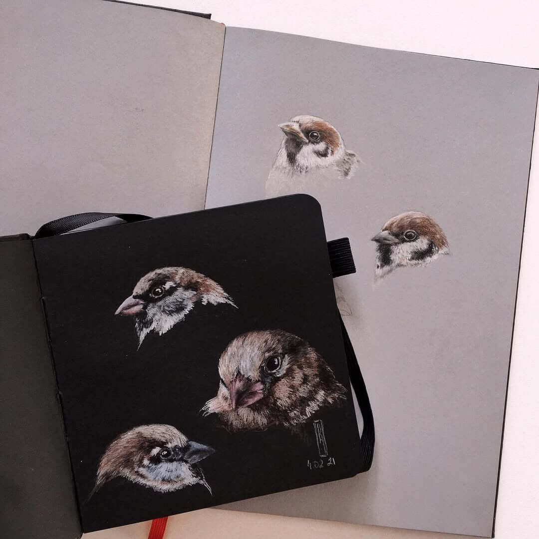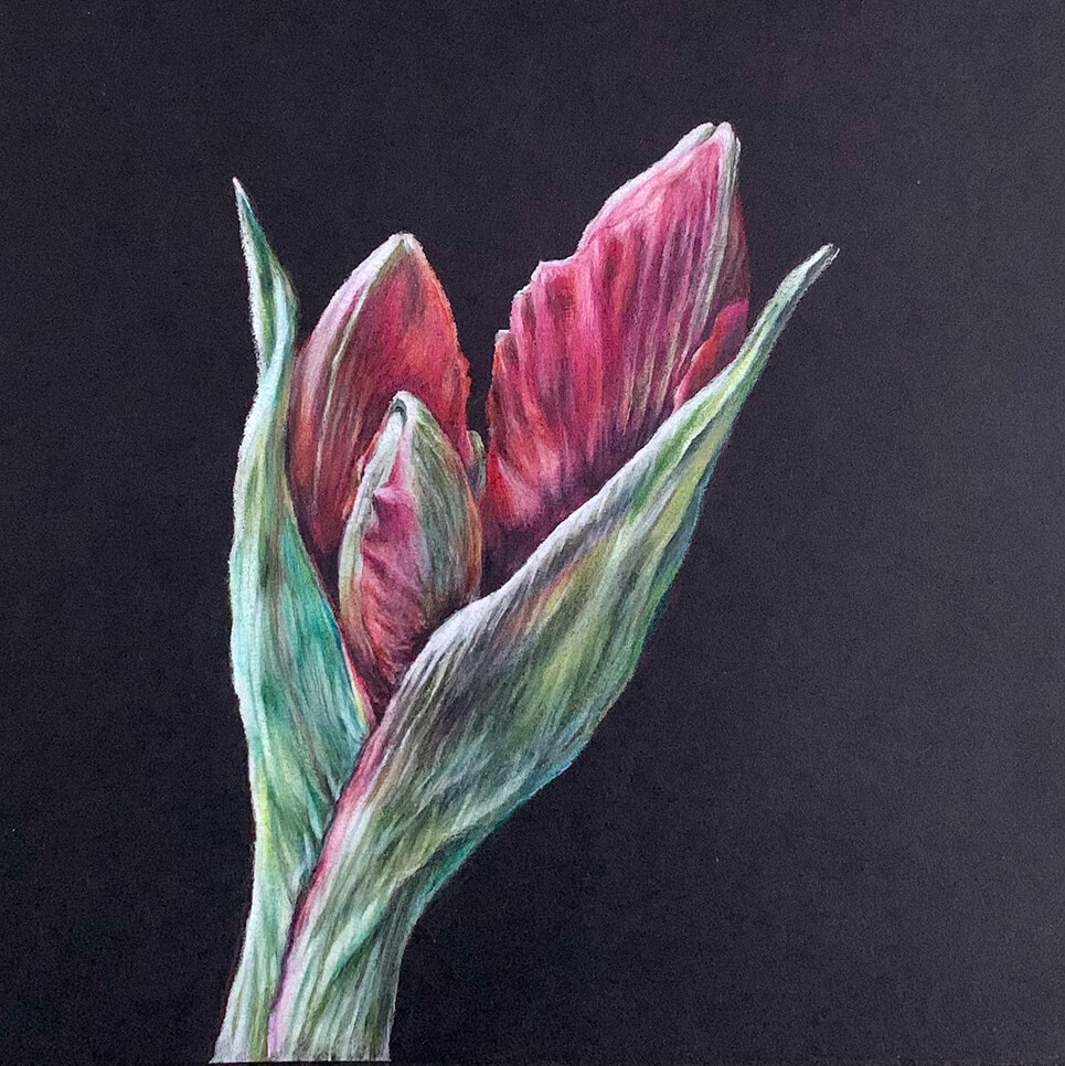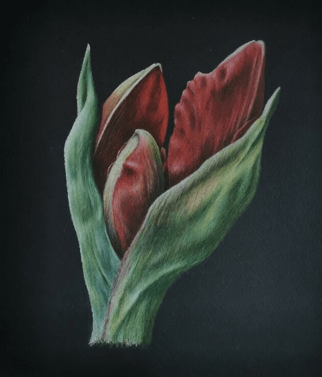 Я долго исследовала секреты яркости карандашей, искала нужные приёмы и особые эффекты. Методом проб и ошибок пришла к своей авторской технике — работе цветными карандашами на чёрной бумаге.