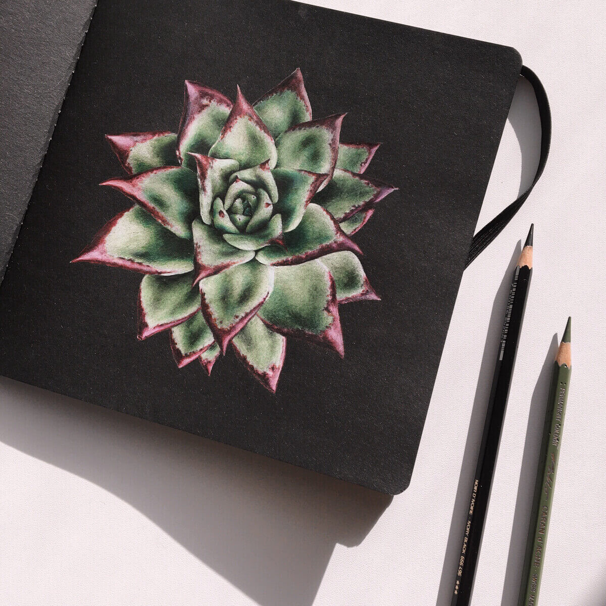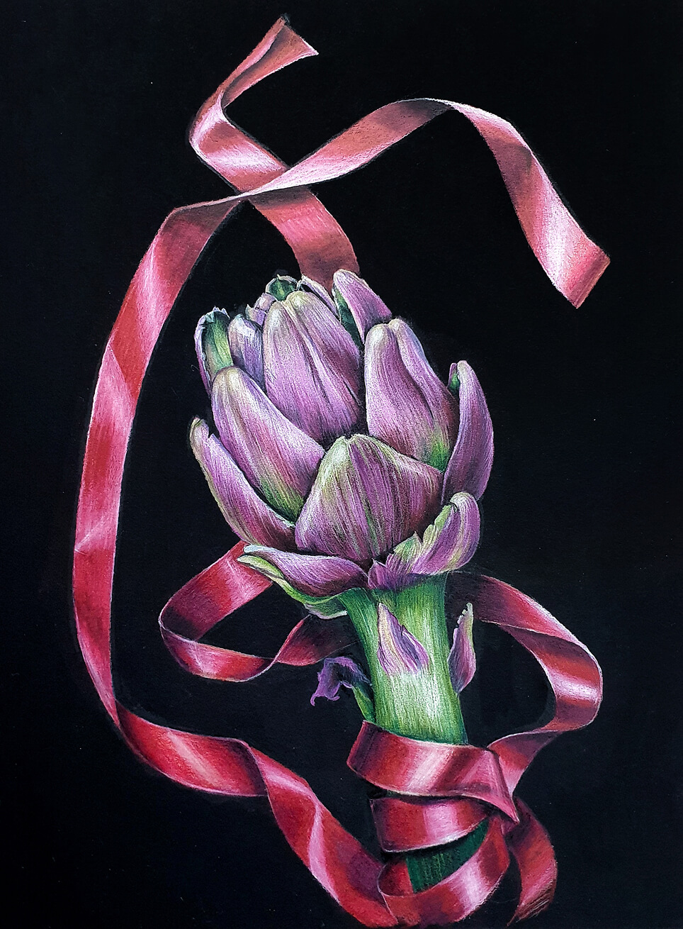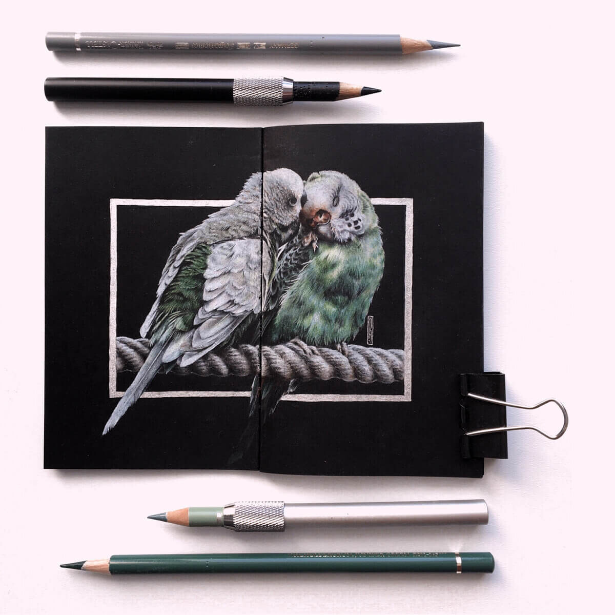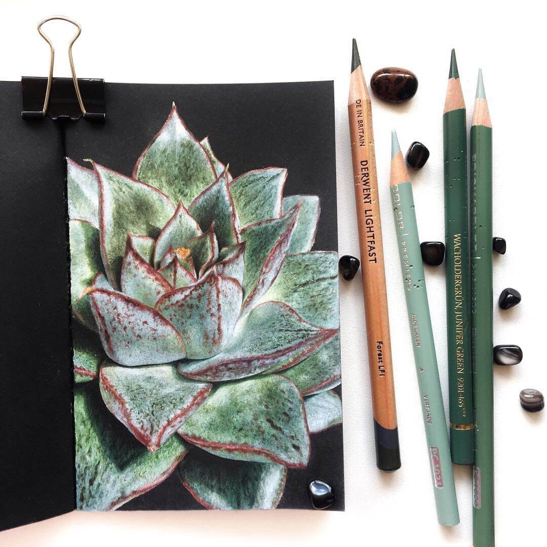 Я долго исследовала секреты яркости карандашей, искала нужные приёмы и особые эффекты. Методом проб и ошибок пришла к своей авторской технике — работе цветными карандашами на чёрной бумаге.