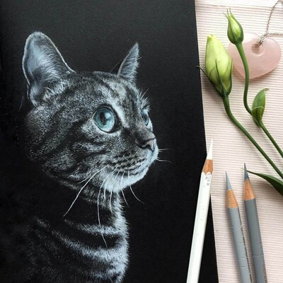 Познакомимся с материалами и разберёмся с основами композиции. Сделаем упражнения на штриховку, смешивание цветов и работу с нажимом, чтобы подготовить руку и глаз к реалистичной работе на чёрной бумаге.
