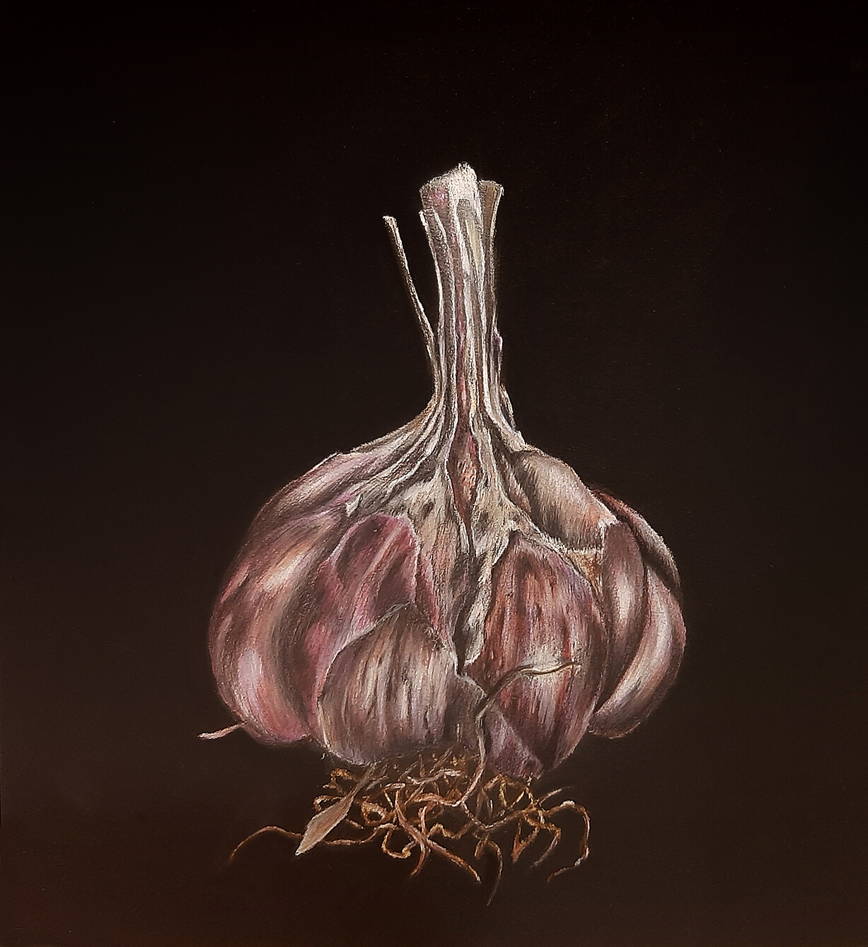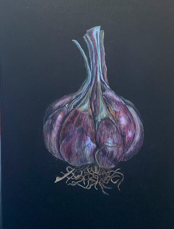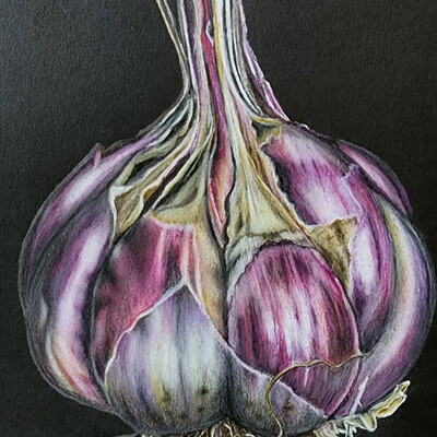 Отработаем на ветке сакуры и чесноке мелкие и крупные элементы, проработку долек, лепестков, шелухи и финальные акценты для фактурных объектов.